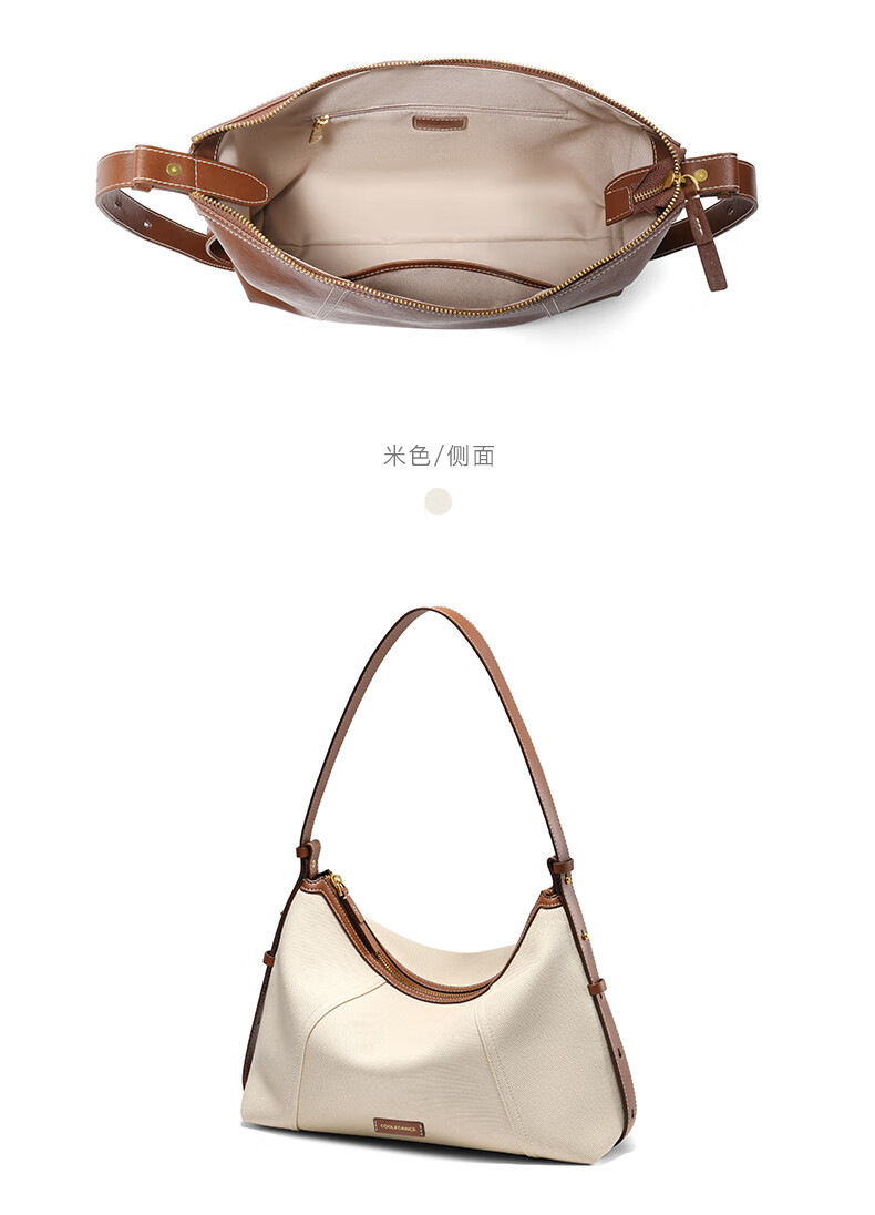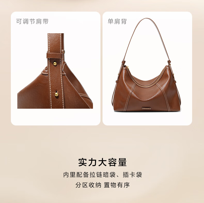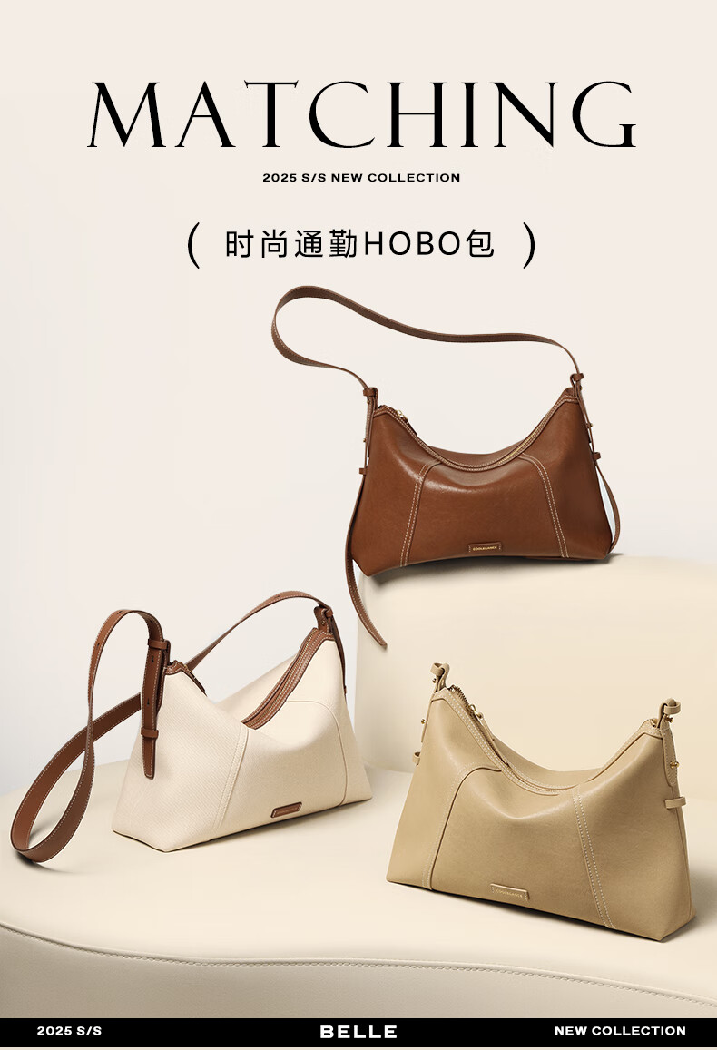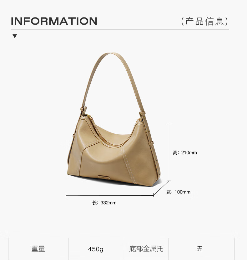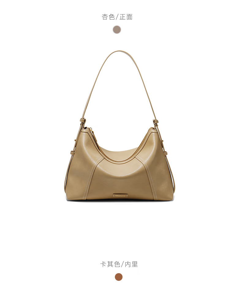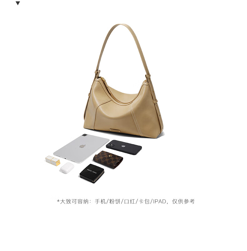 百丽女包2025年发财包轻奢通勤hobo单肩斜挎包托特包8517ABX5 卡其色