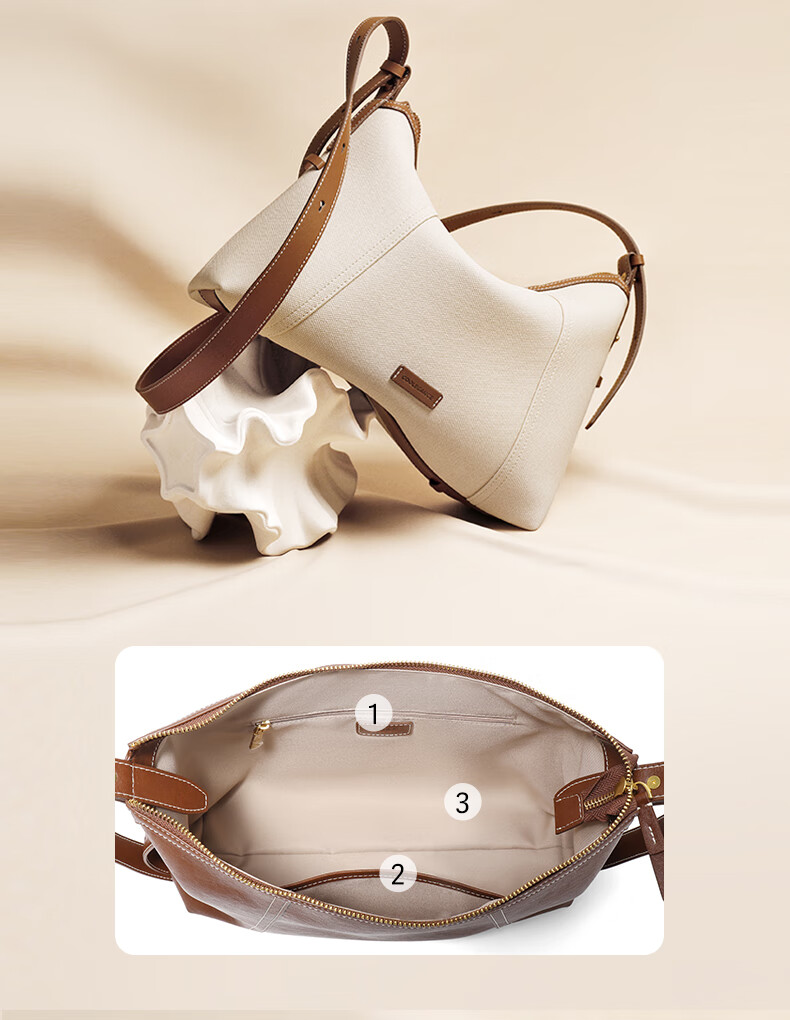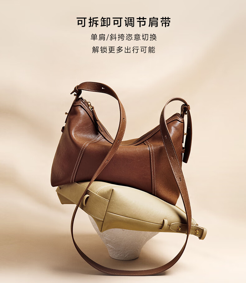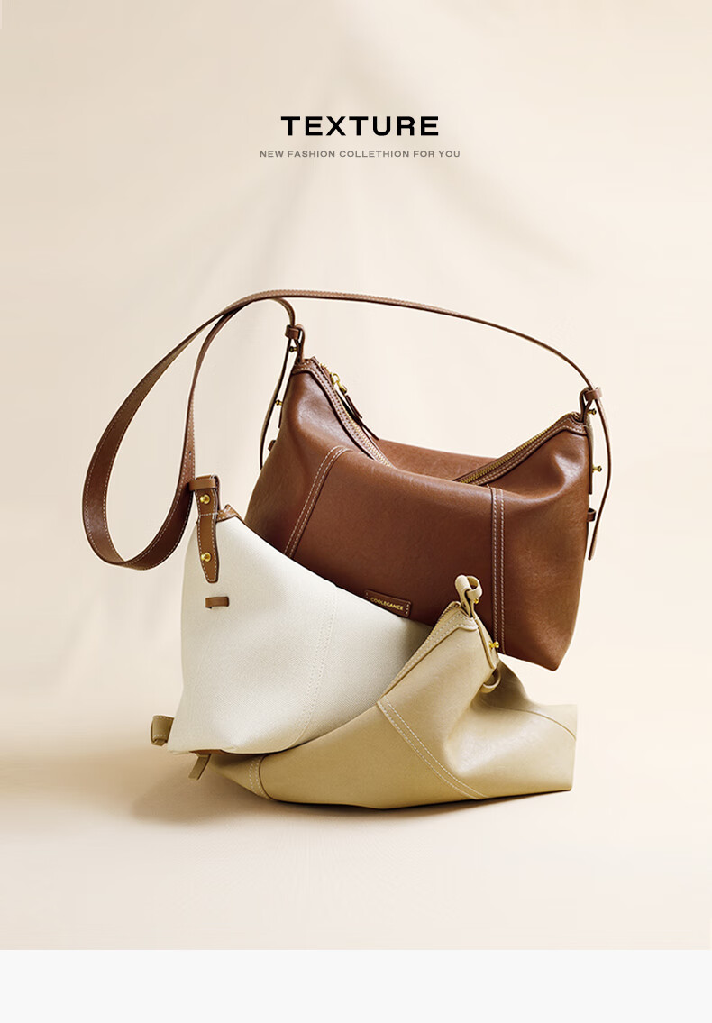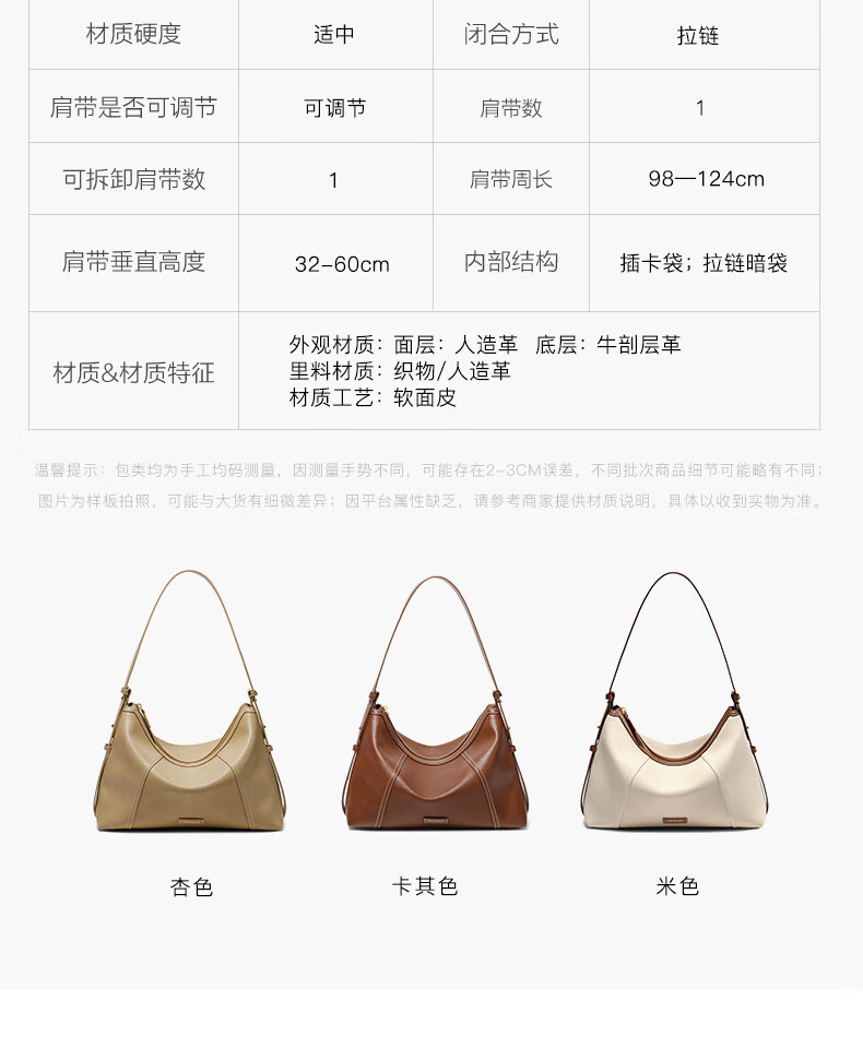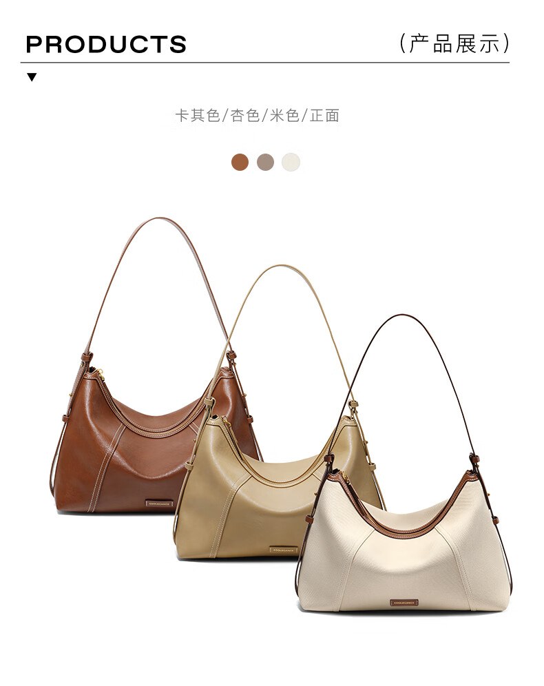 百丽女包2025年发财包轻奢通勤hobo单肩斜挎包托特包8517ABX5 卡其色