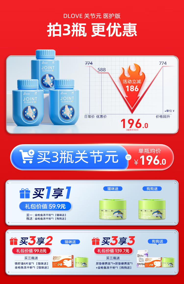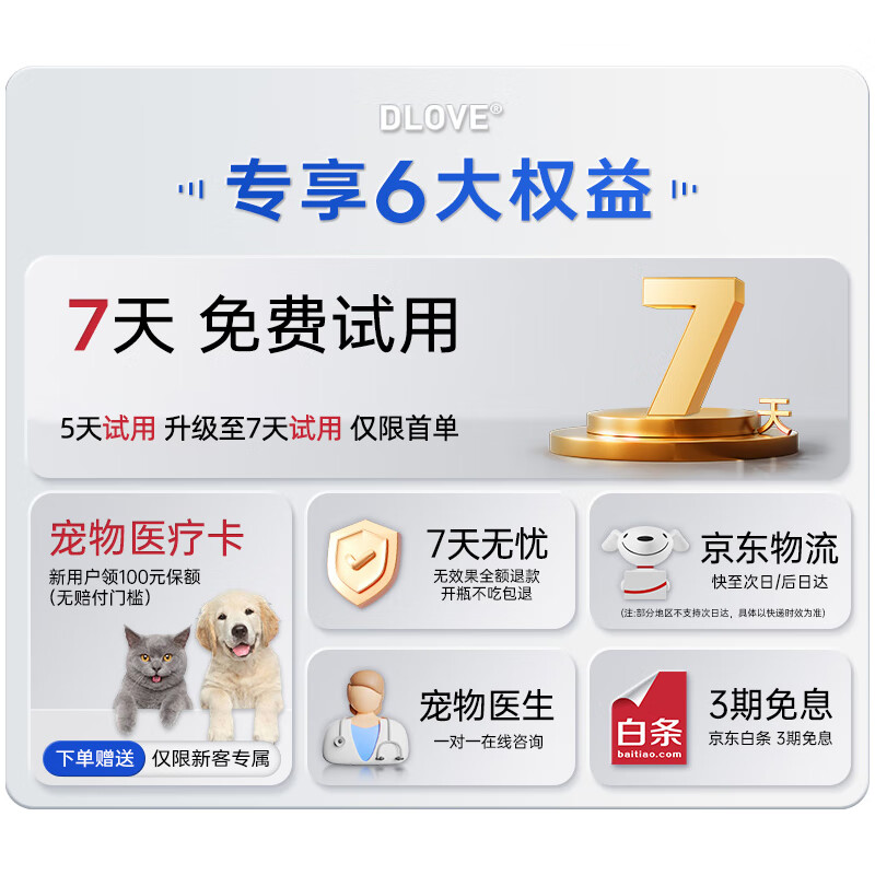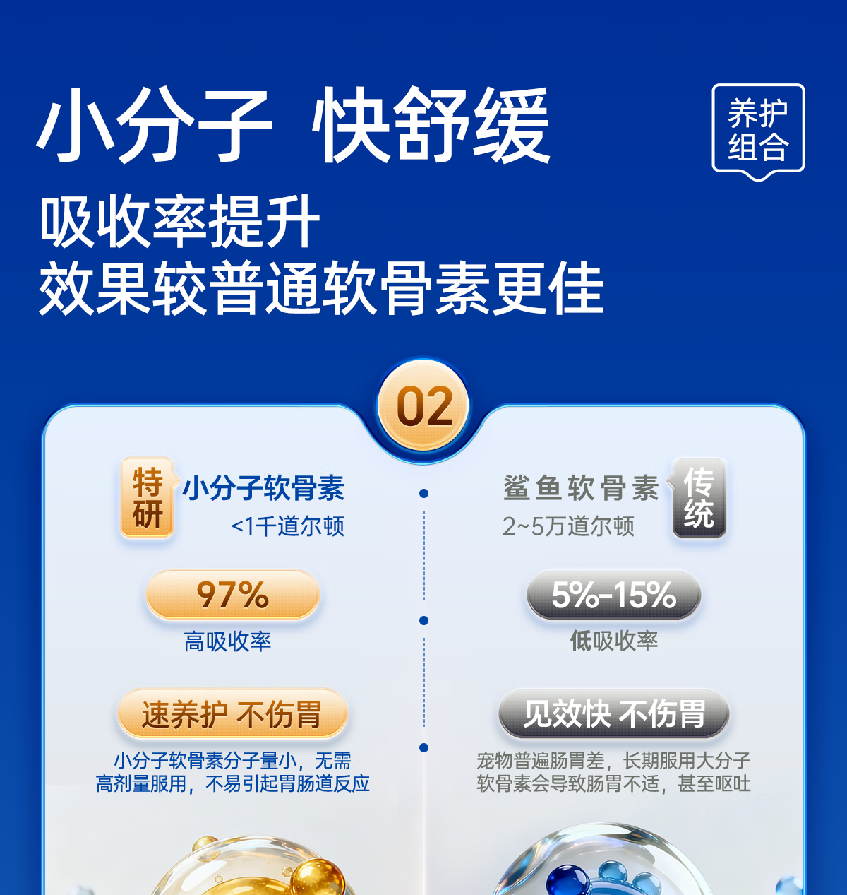 萌护卫【9仓发货】美国DLOVE鲨鱼软骨素狗猫全年龄阶段关节修护健骨补钙 1瓶【犬用】医护版60粒/瓶 7天试用