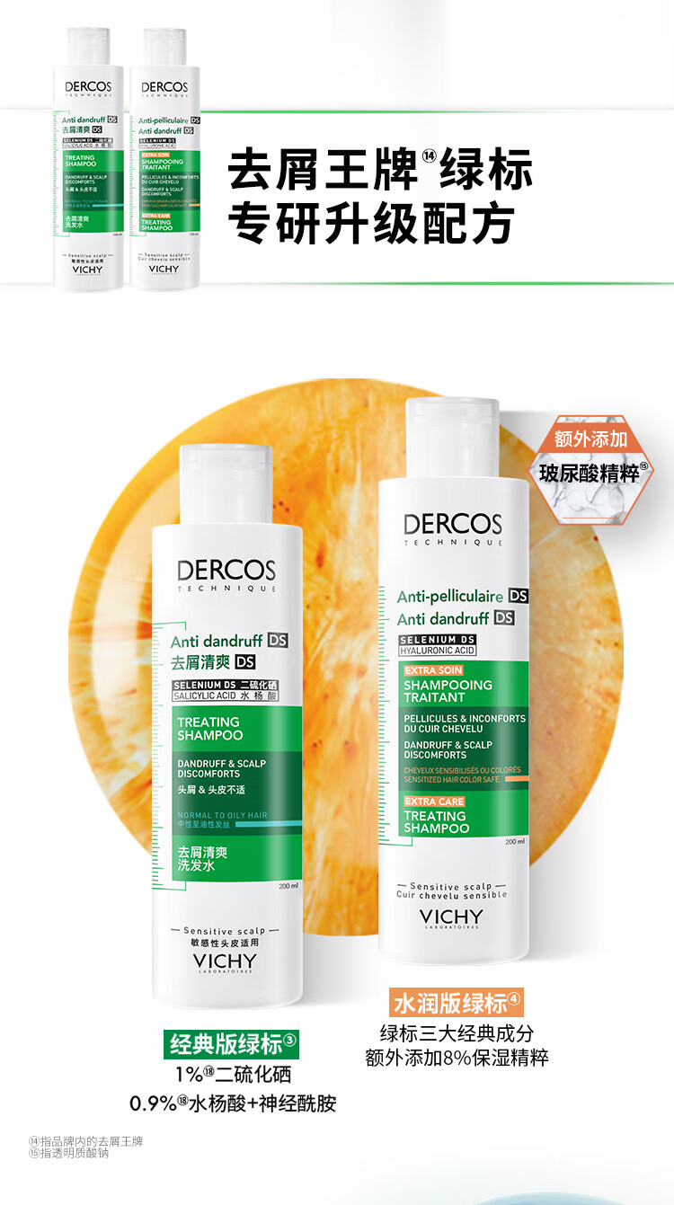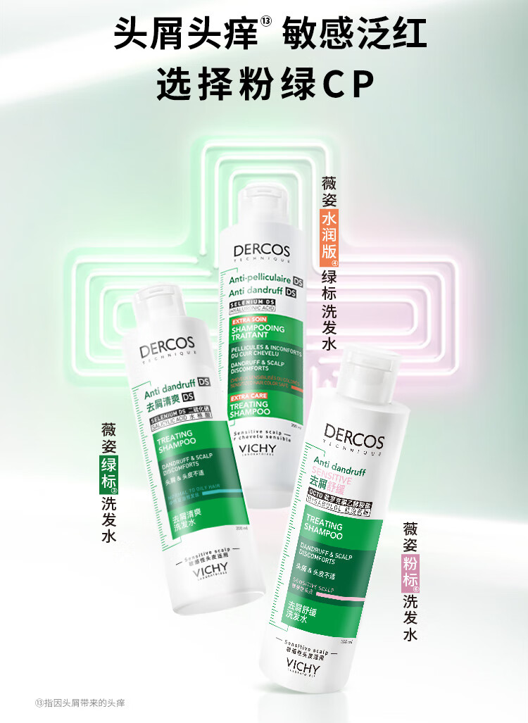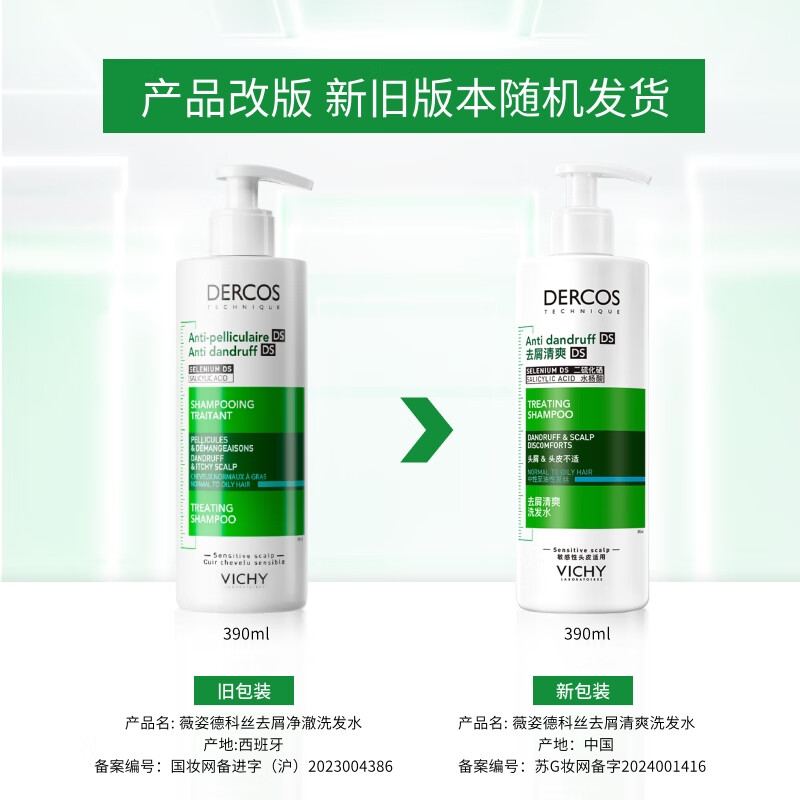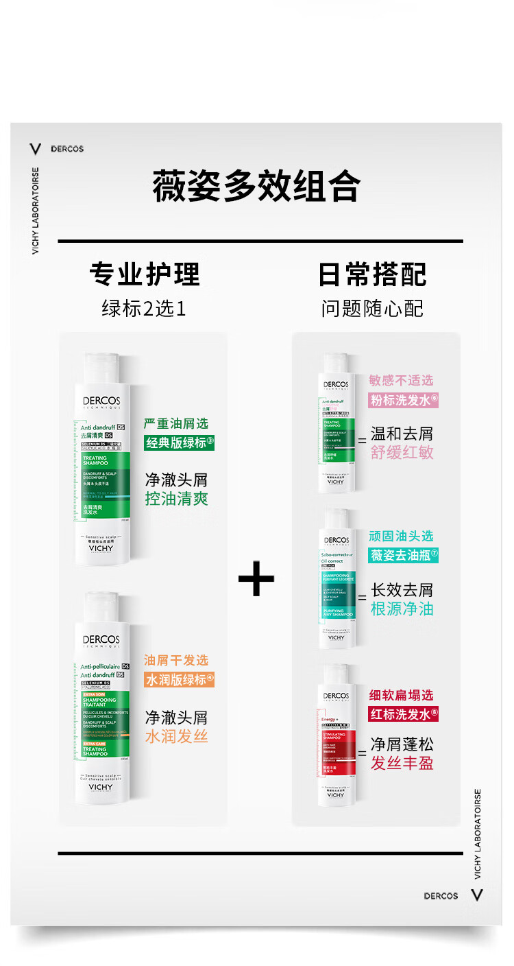 薇姿(VICHY)洗发水套装控油去屑舒缓头皮绿标390ml+粉标200ml 洗发水男士女士