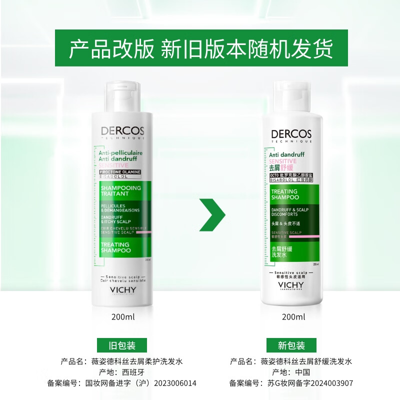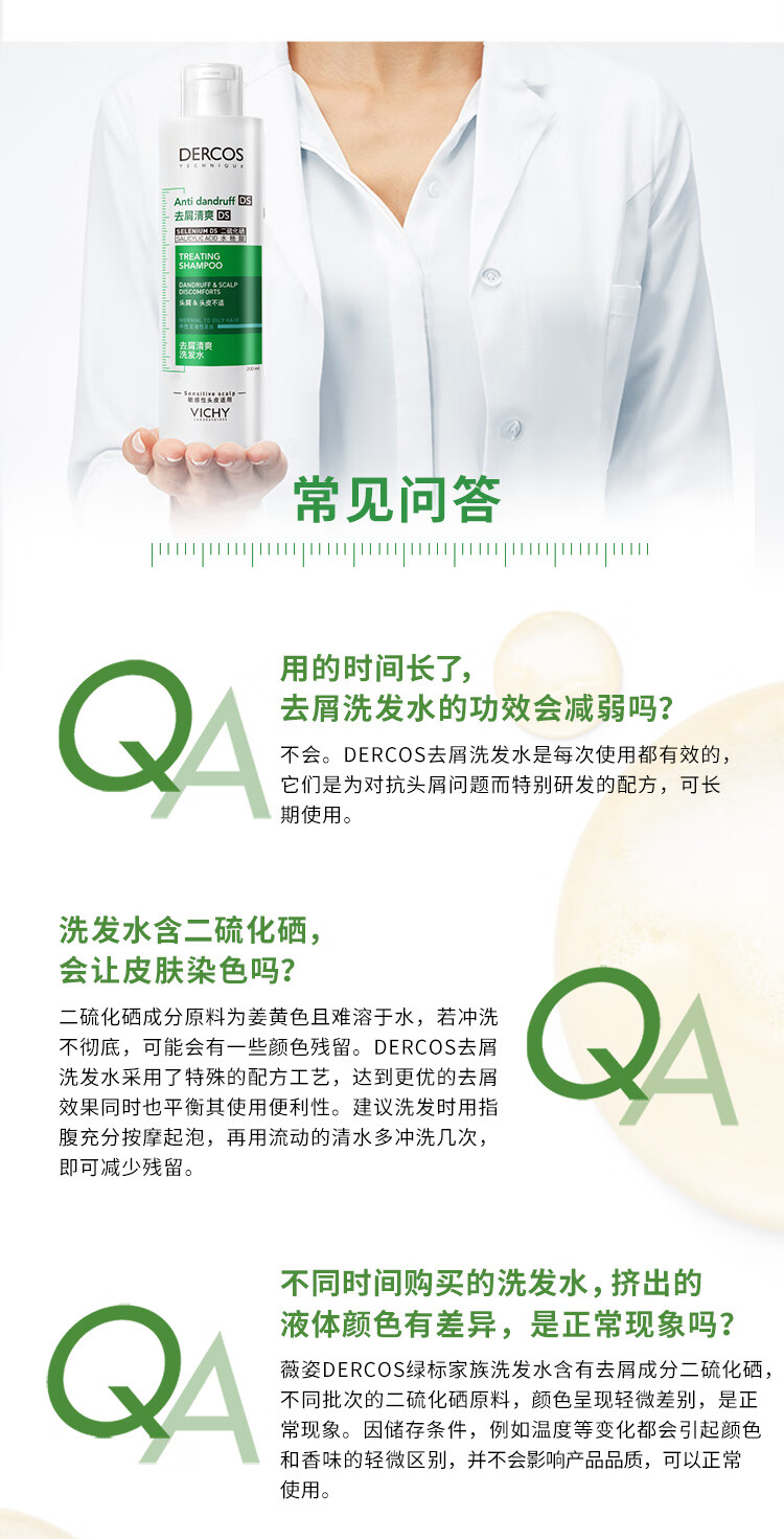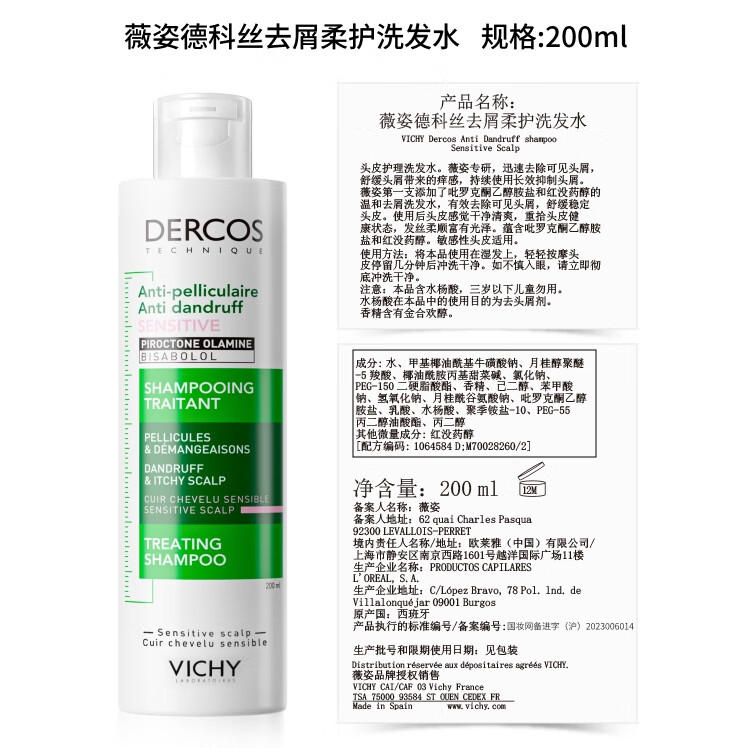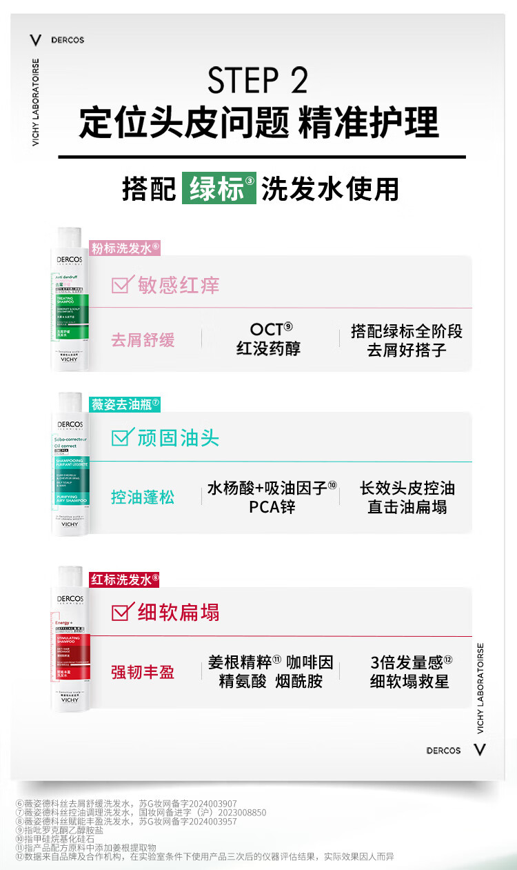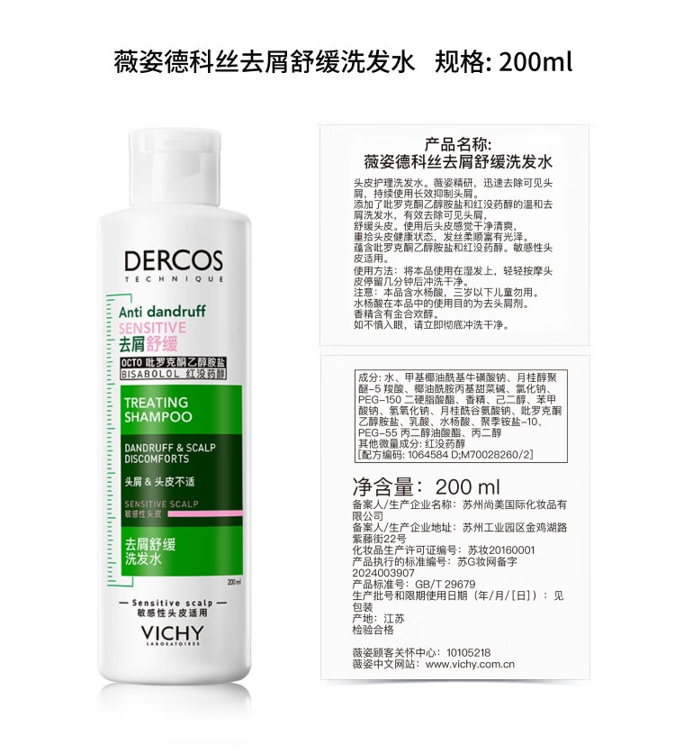 薇姿(VICHY)洗发水套装控油去屑舒缓头皮绿标390ml+粉标200ml 洗发水男士女士