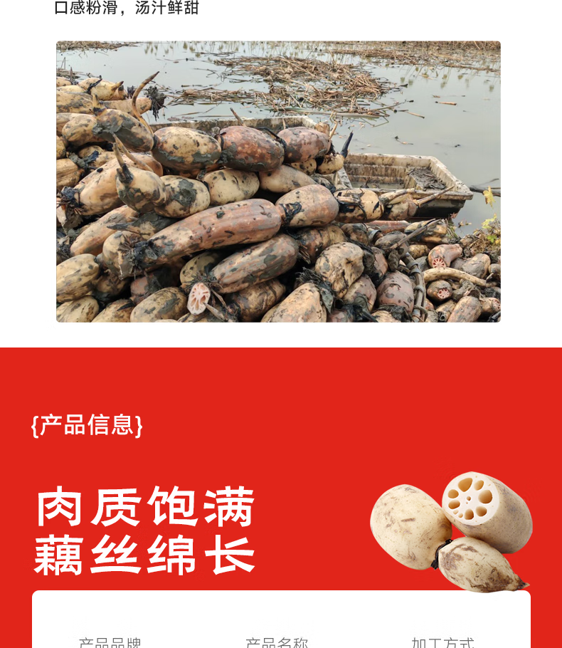 京鲜生 湖北洪湖新鲜莲藕粉藕净重3斤(3-4节装)带泥锁鲜 蔬菜源头直发
