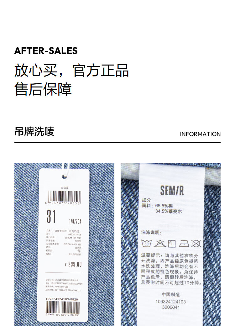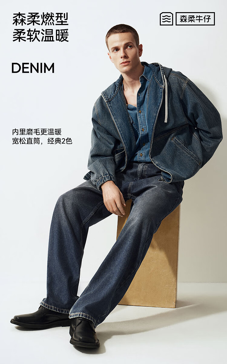 森马(Semir)森柔牛仔丨牛仔裤男四季款宽松直筒男裤潮流裤子109324124103