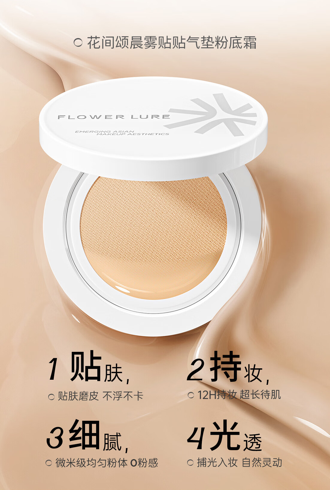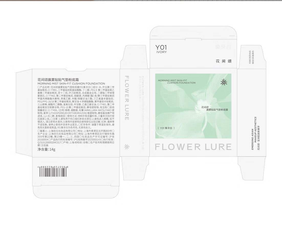 Flowerlure花间颂气垫BB霜遮瑕持久保湿提亮不脱妆粉底液膏化妆品官方旗舰店双十一 Y01象牙白正装+替换装【白皮黄皮
