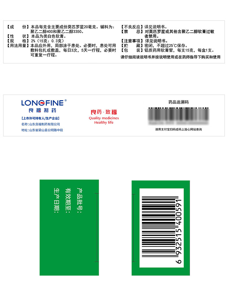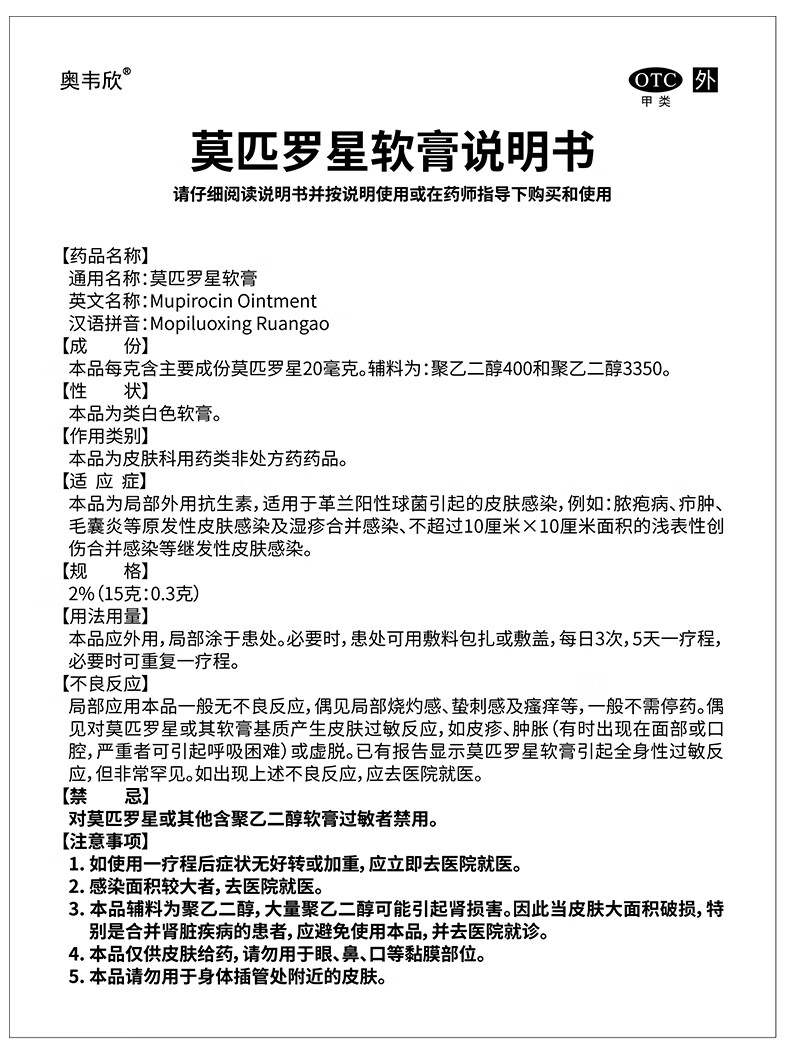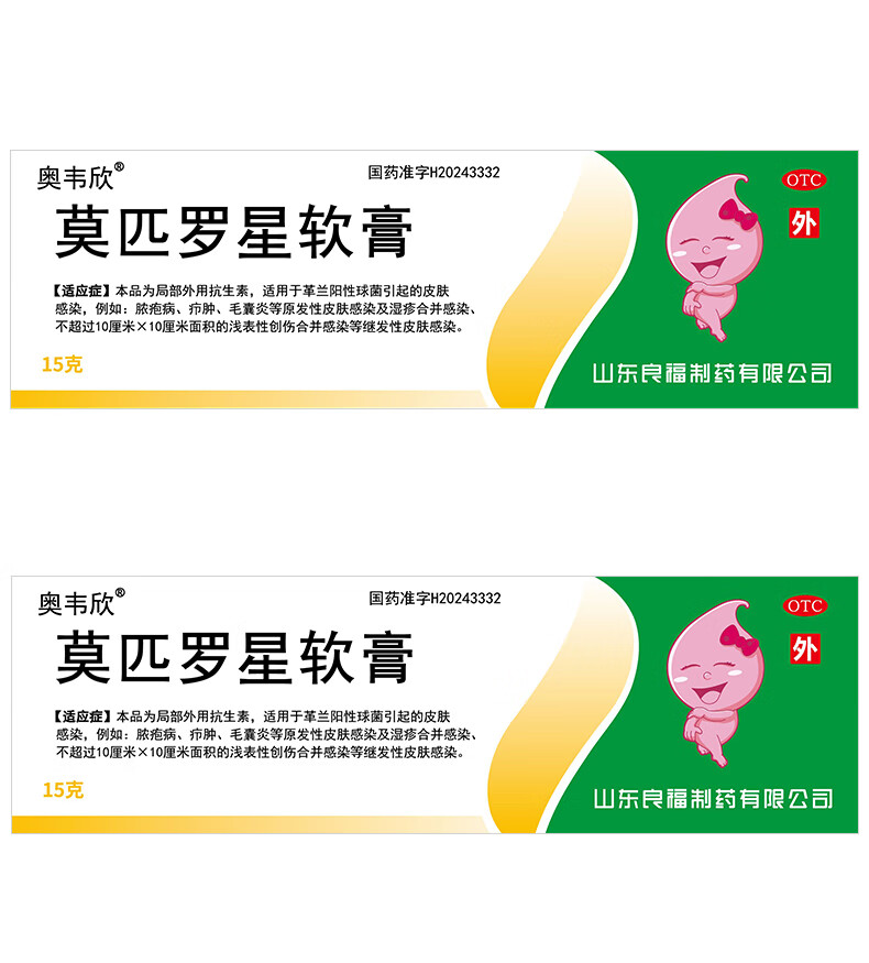 良福制药 奥韦欣 莫匹罗星软膏2%(15g:0.3g)*15g/支/盒 毛囊炎疖肿红肿甲沟炎脓疱痘婴儿湿疹脓疱病化脓浅表性创伤合并感染擦伤感染