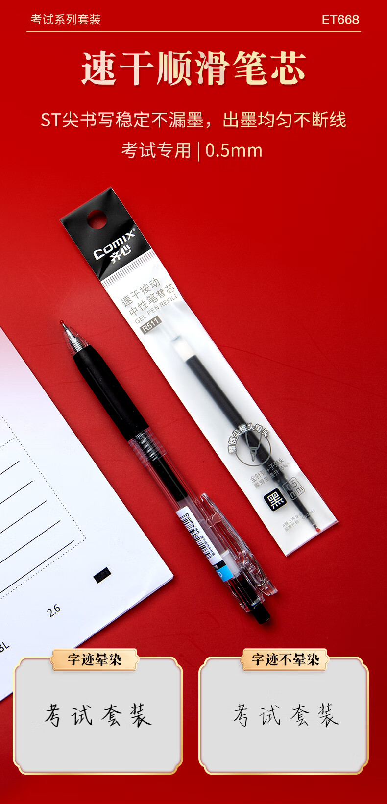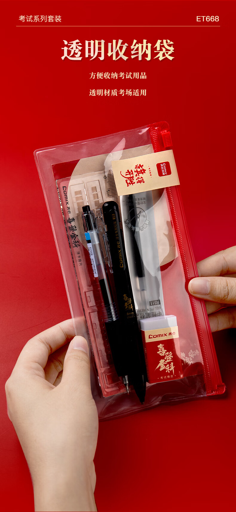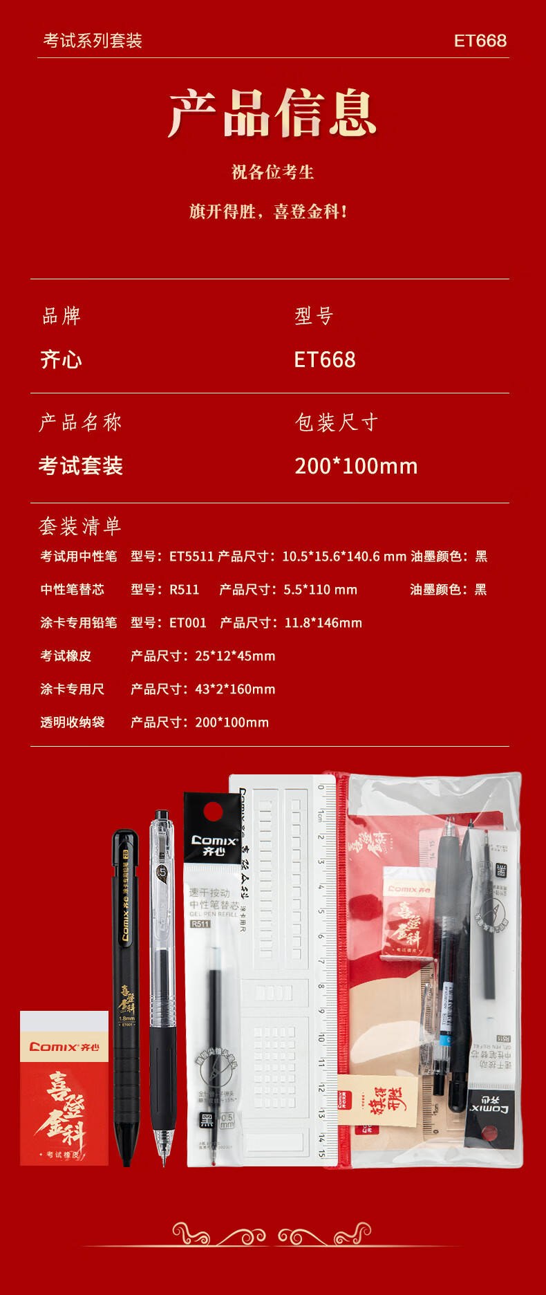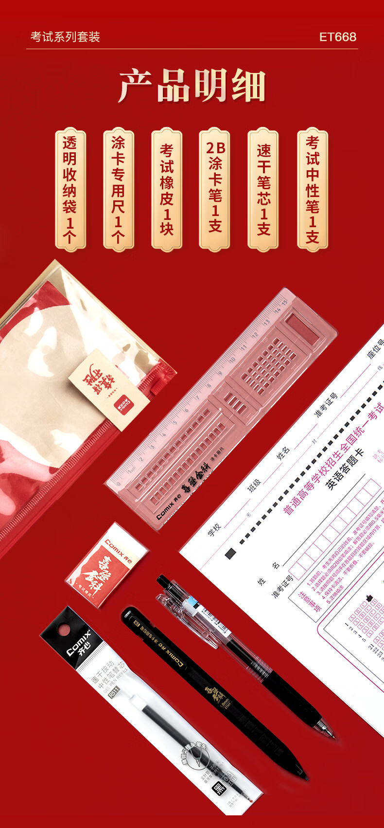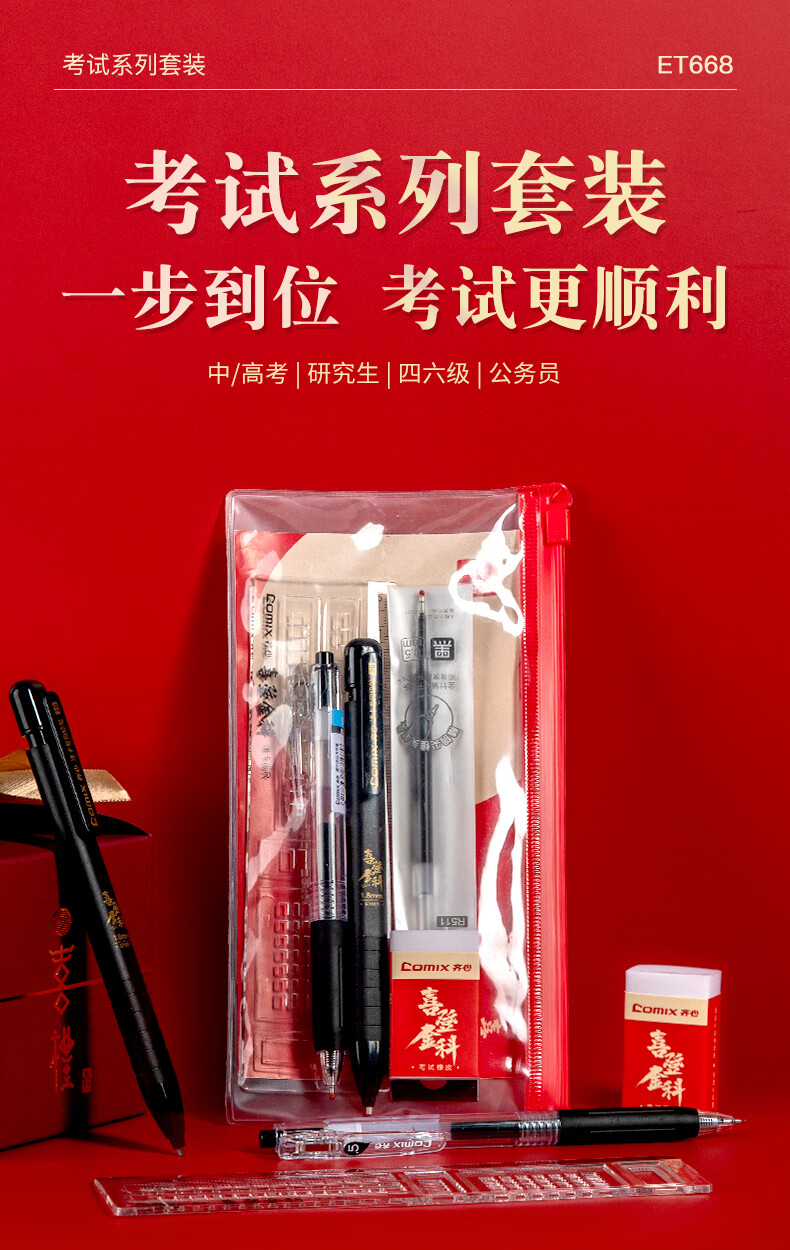齐心(Comix)考试套装【替芯+中性笔+涂卡2B自动铅笔+橡皮+直尺+收纳袋】中考文具套装 中高考专用ET668