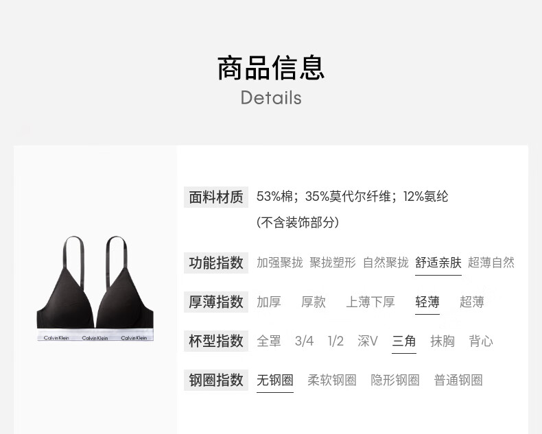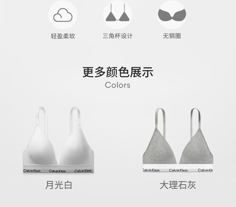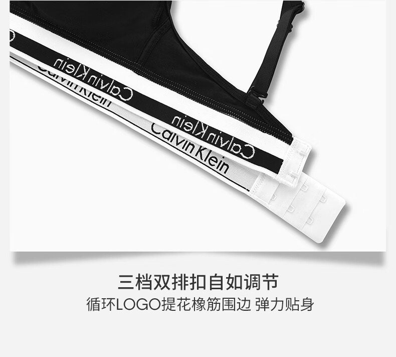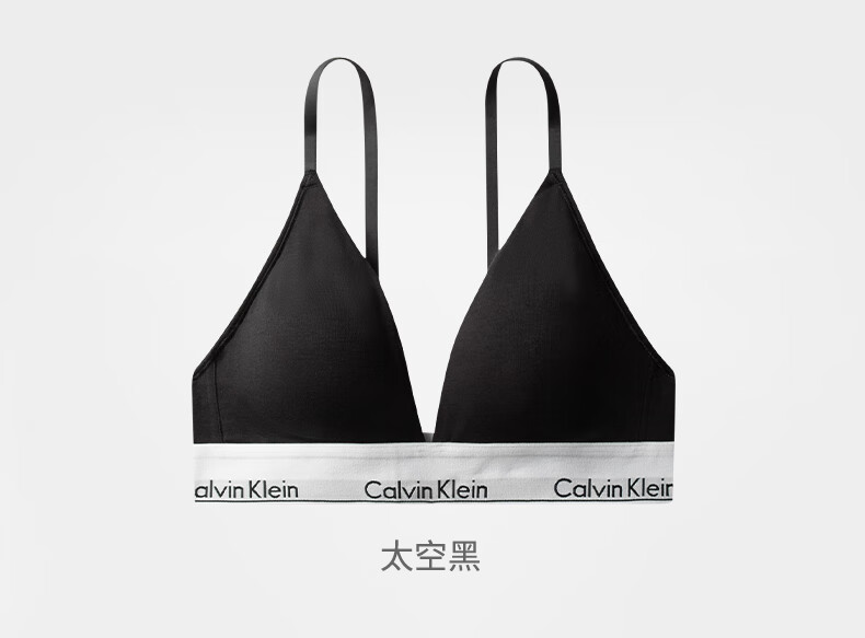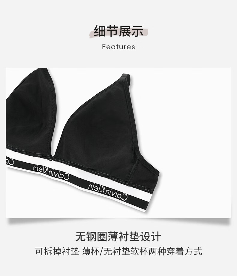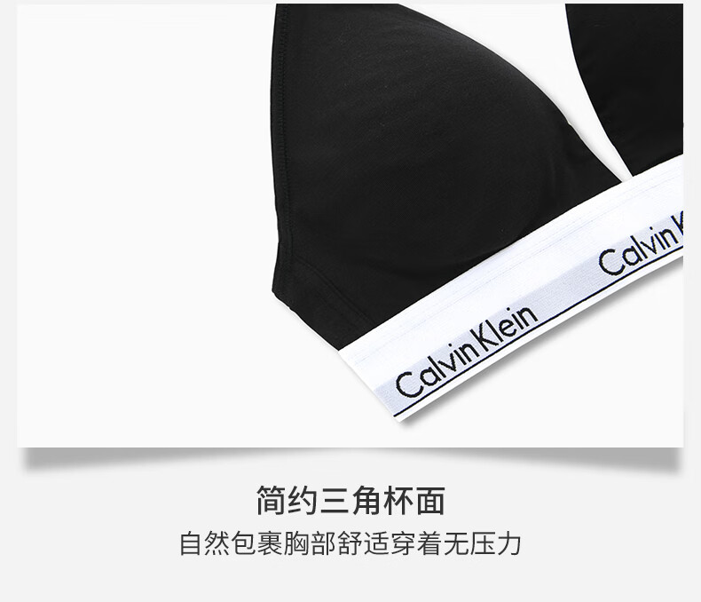 Calvin Klein内衣【明星同款摩登引力带】女士ck无钢圈软支撑可拆垫三角杯文胸 PCS-黑底字母 M
