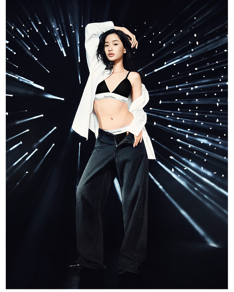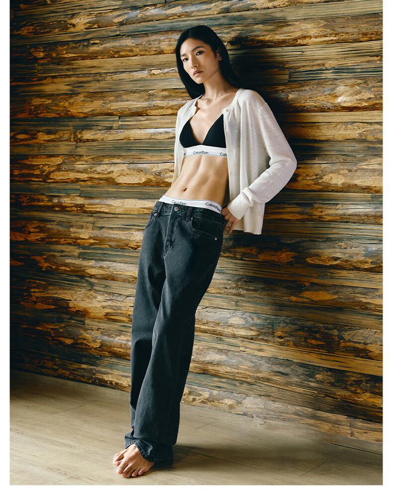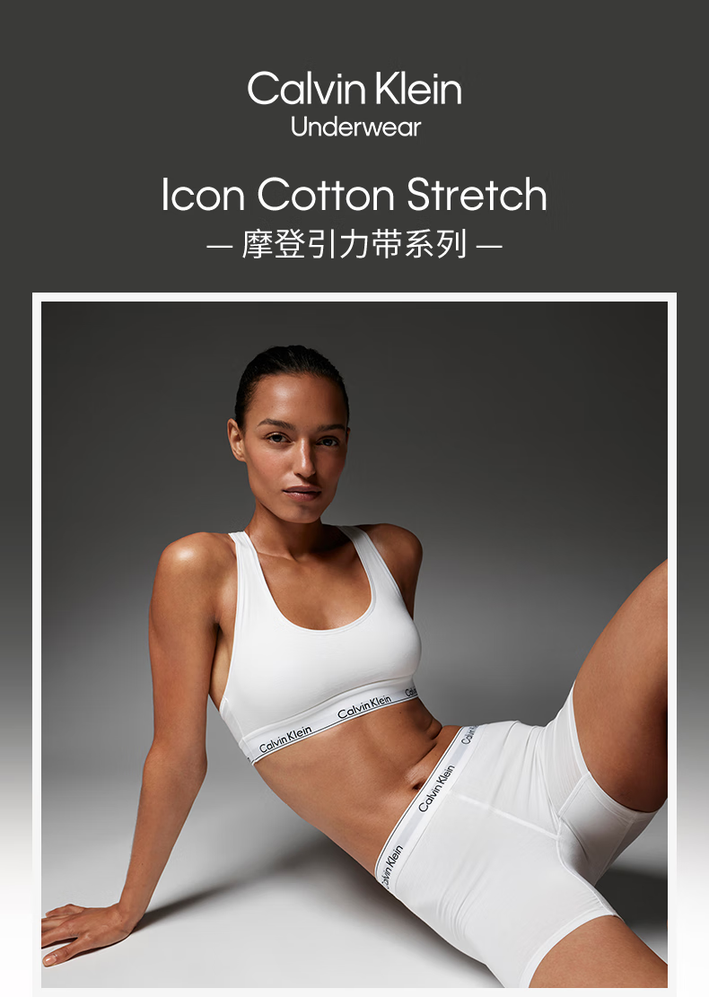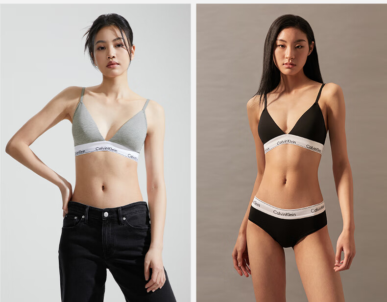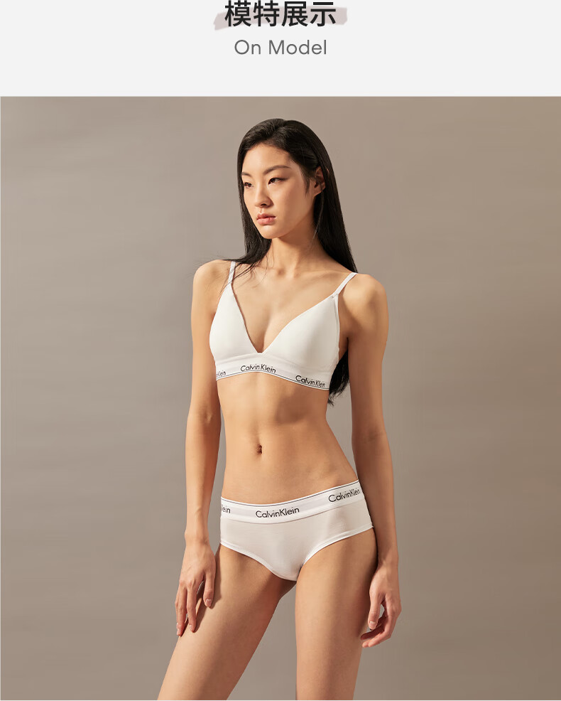 Calvin Klein内衣【明星同款摩登引力带】女士ck无钢圈软支撑可拆垫三角杯文胸 PCS-黑底字母 M