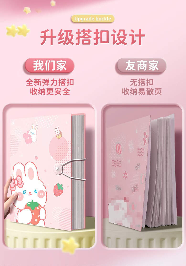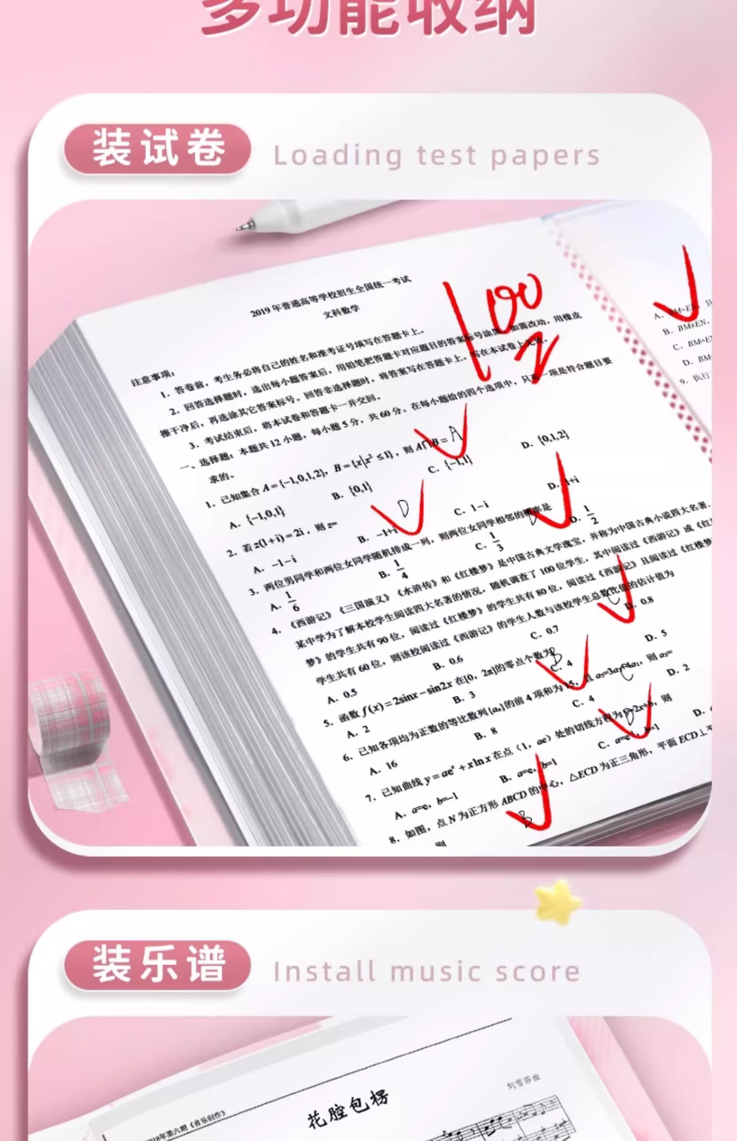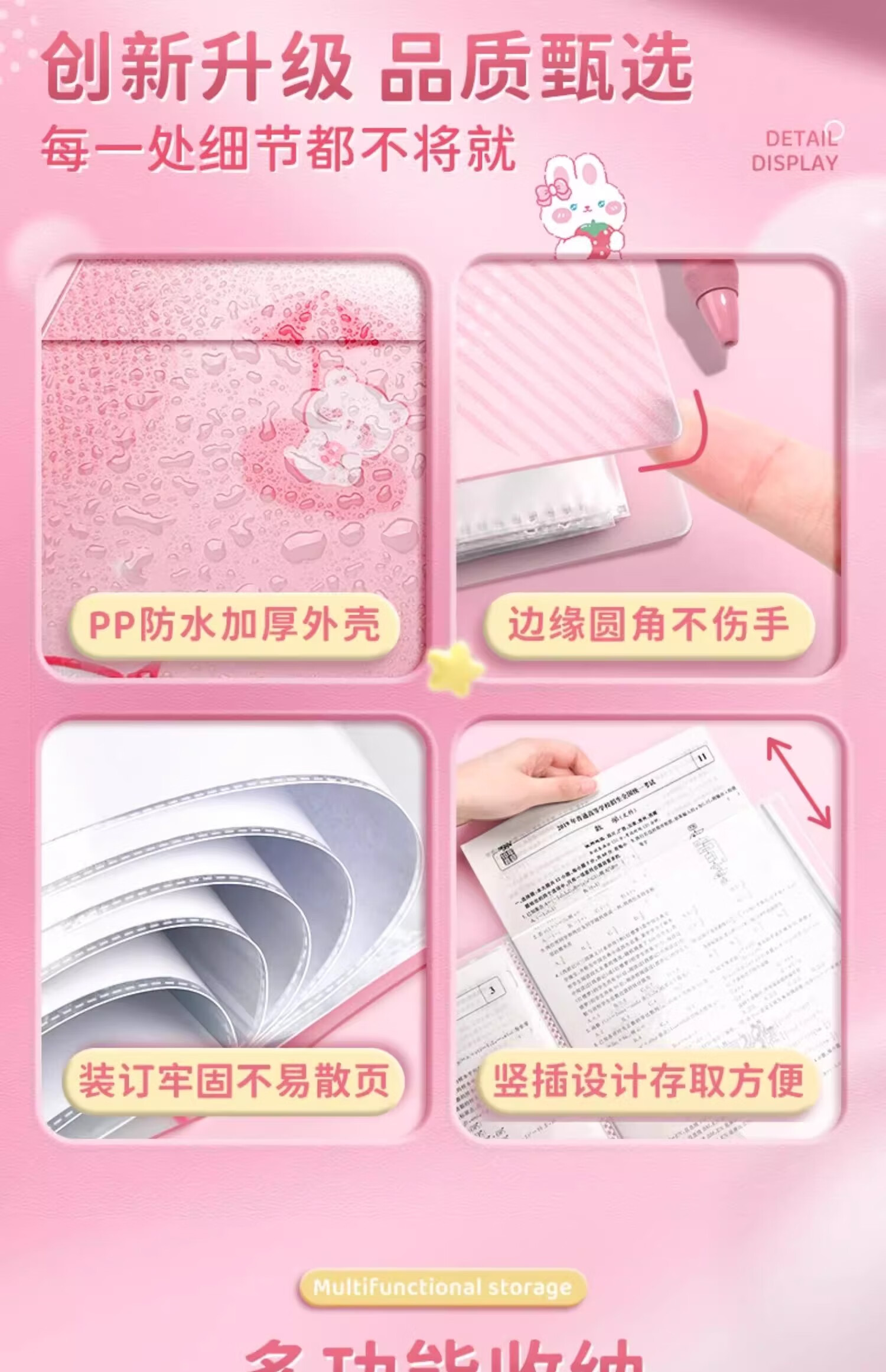 舒星A4粉色文件夹收纳册资料册60页 插页袋合同收纳册分页翻页档案夹活页夹病历夹乐谱夹奖状收集册