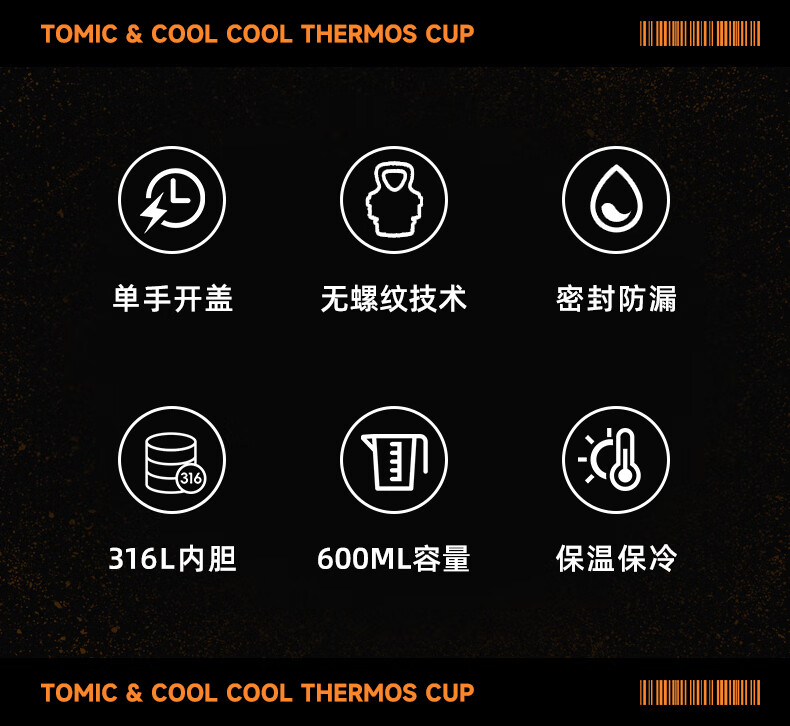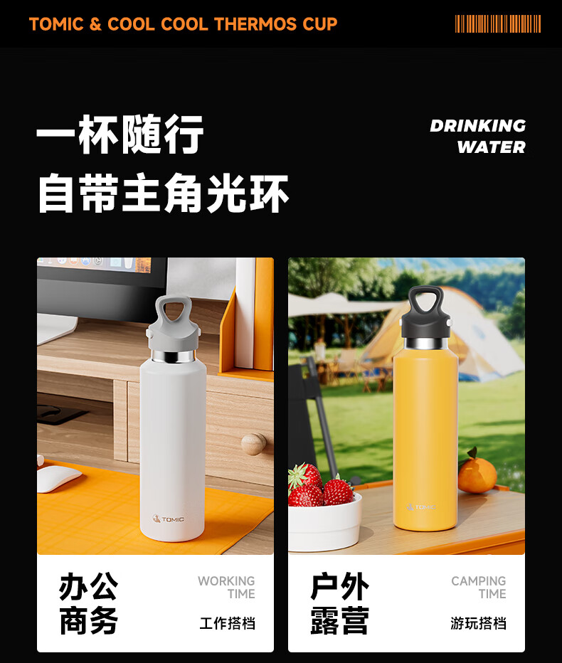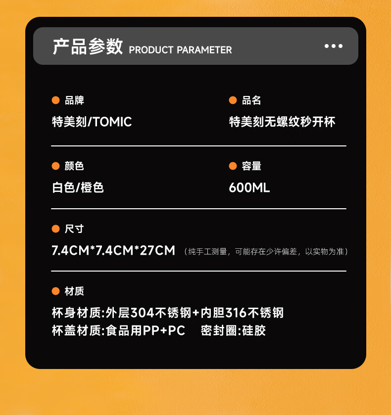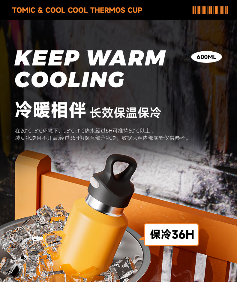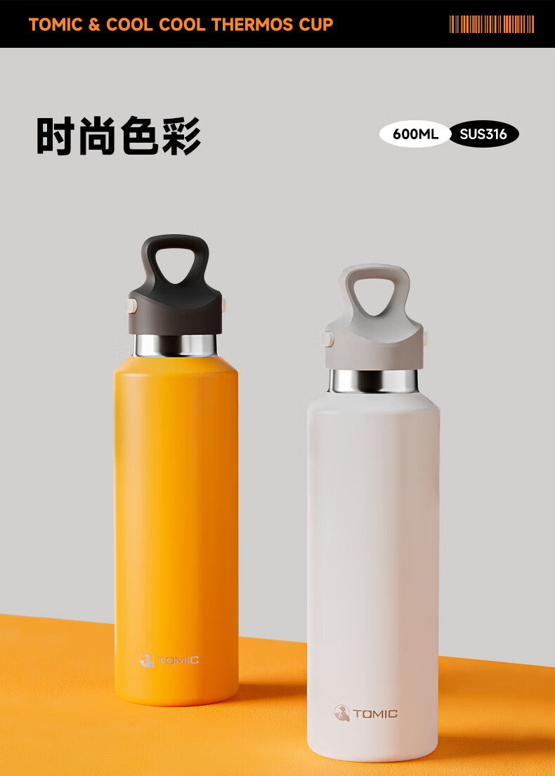 特美刻(TOMIC)保温杯大容无螺纹学生不锈钢水杯【新老批次随机发316/316L内胆】 白色600ml