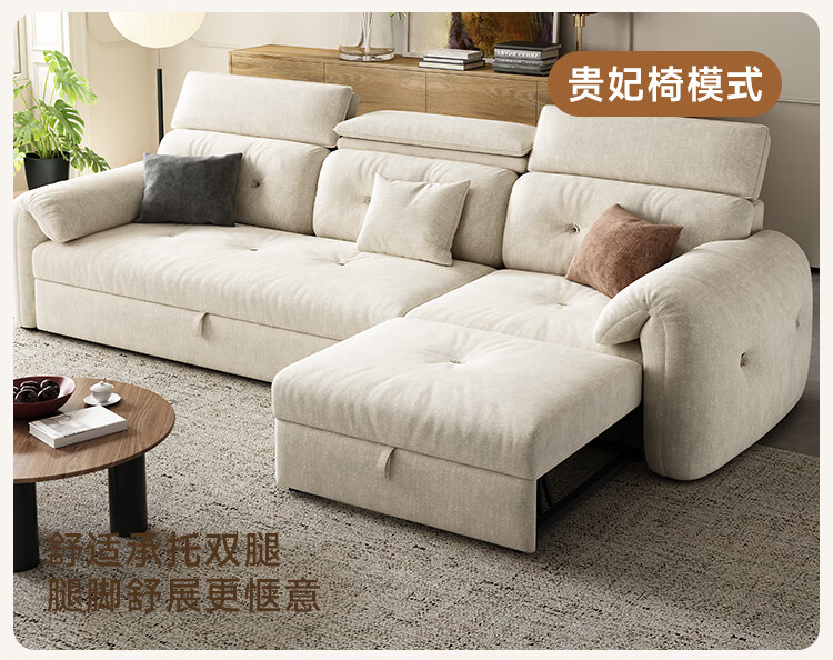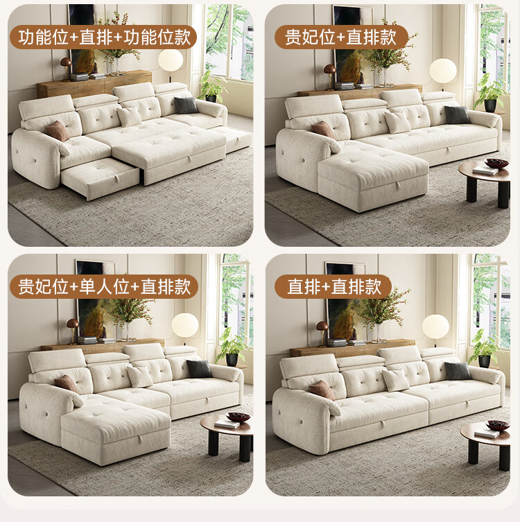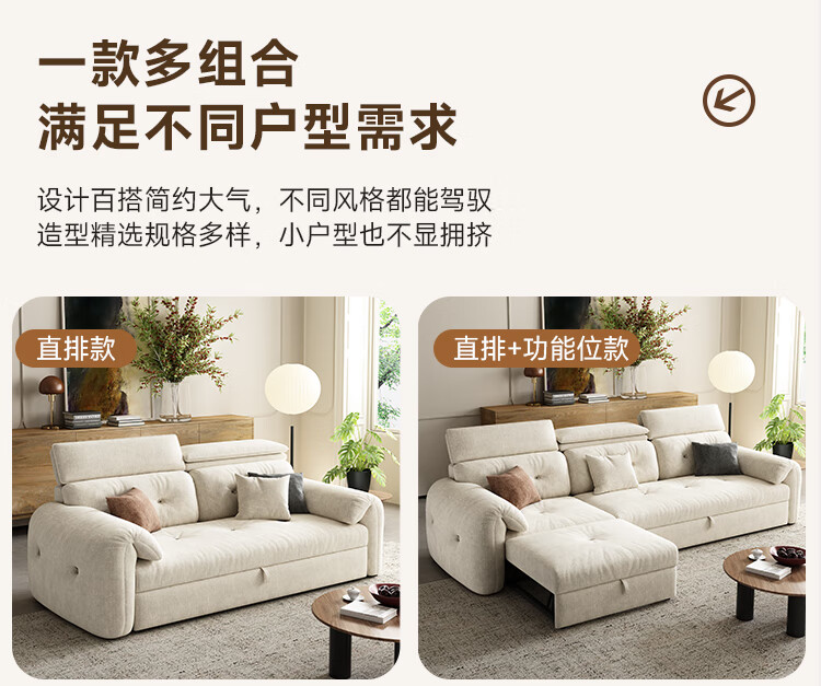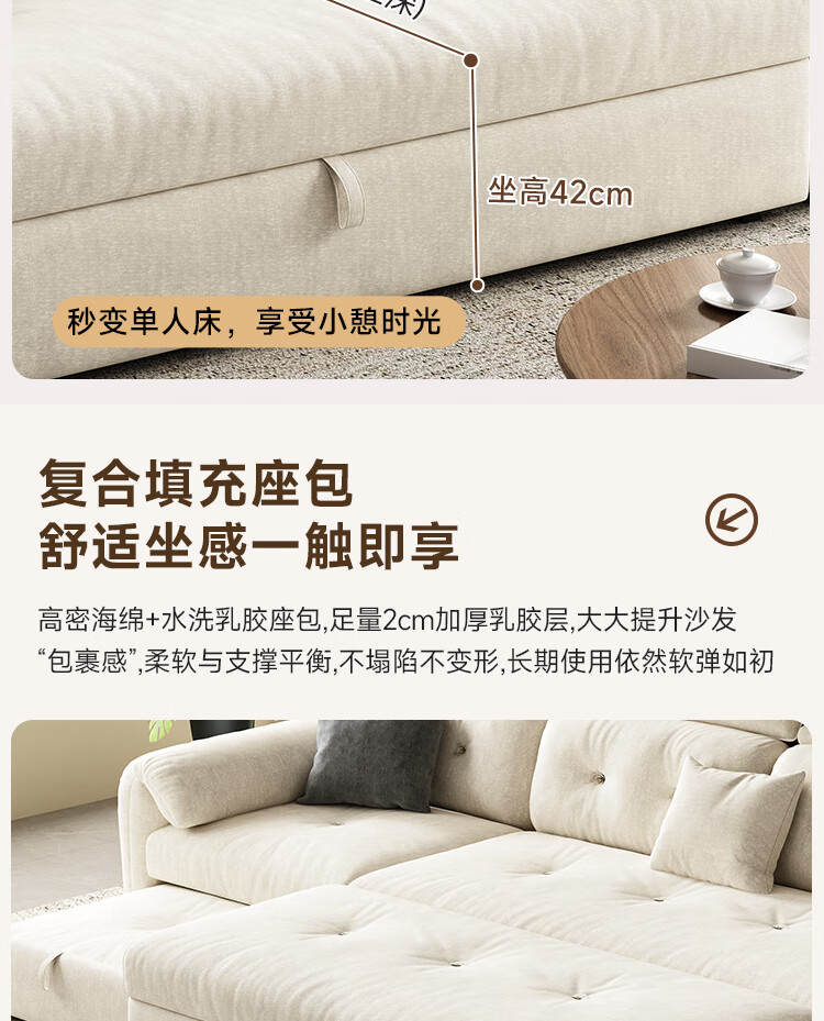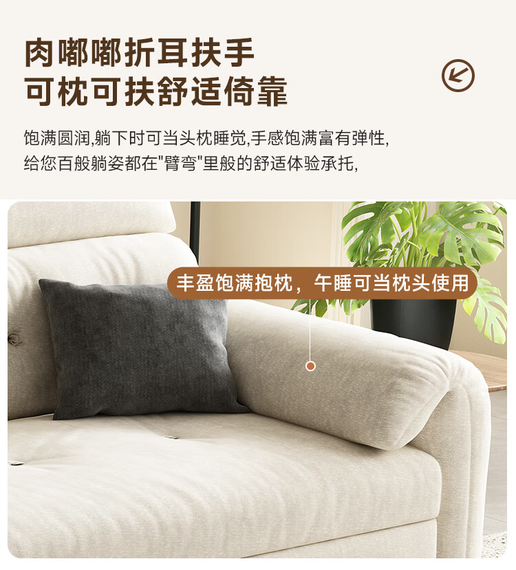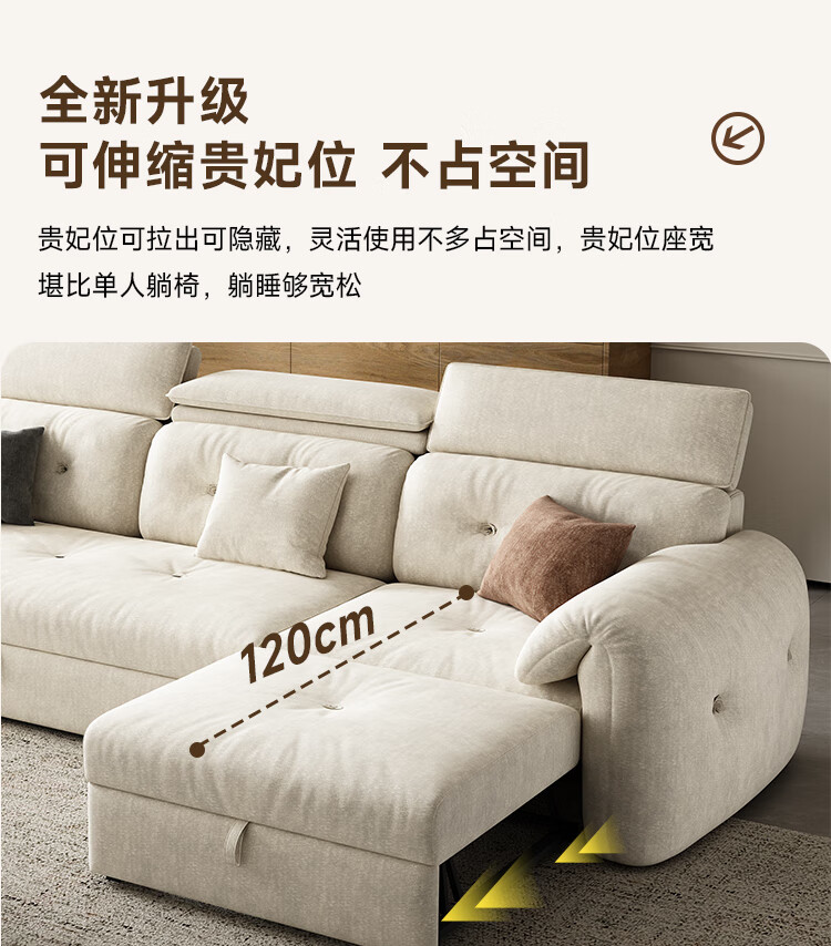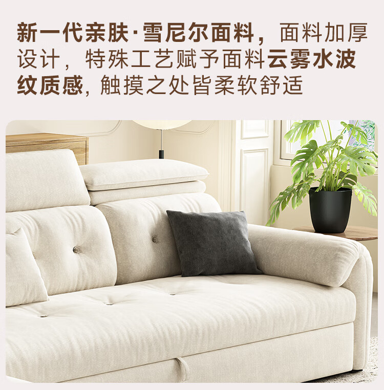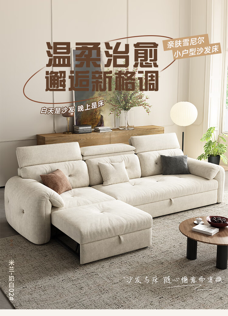 松南客厅奶油风雪尼尔贵妃沙发布艺新款家用大小户型可折叠直排沙发床 总长1.28m直排:大单位 高弹海绵款(加厚雪尼尔)