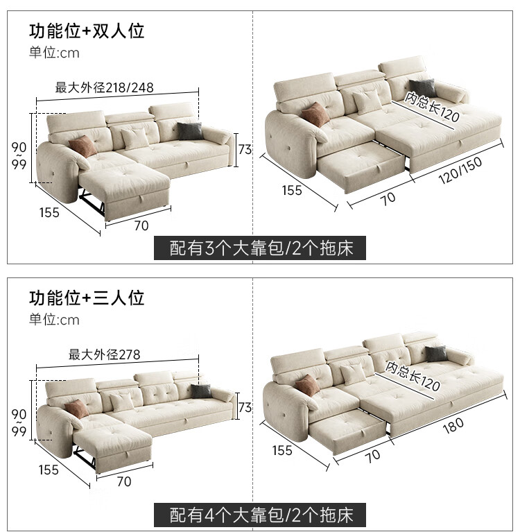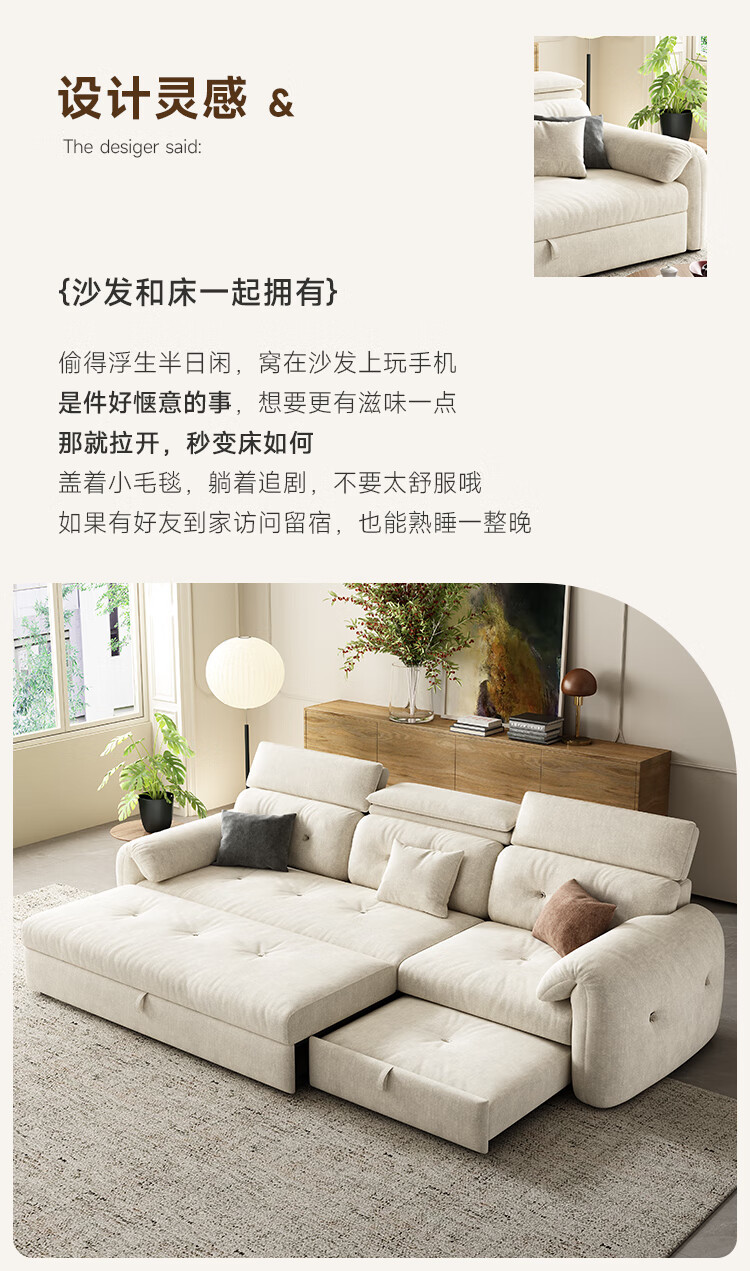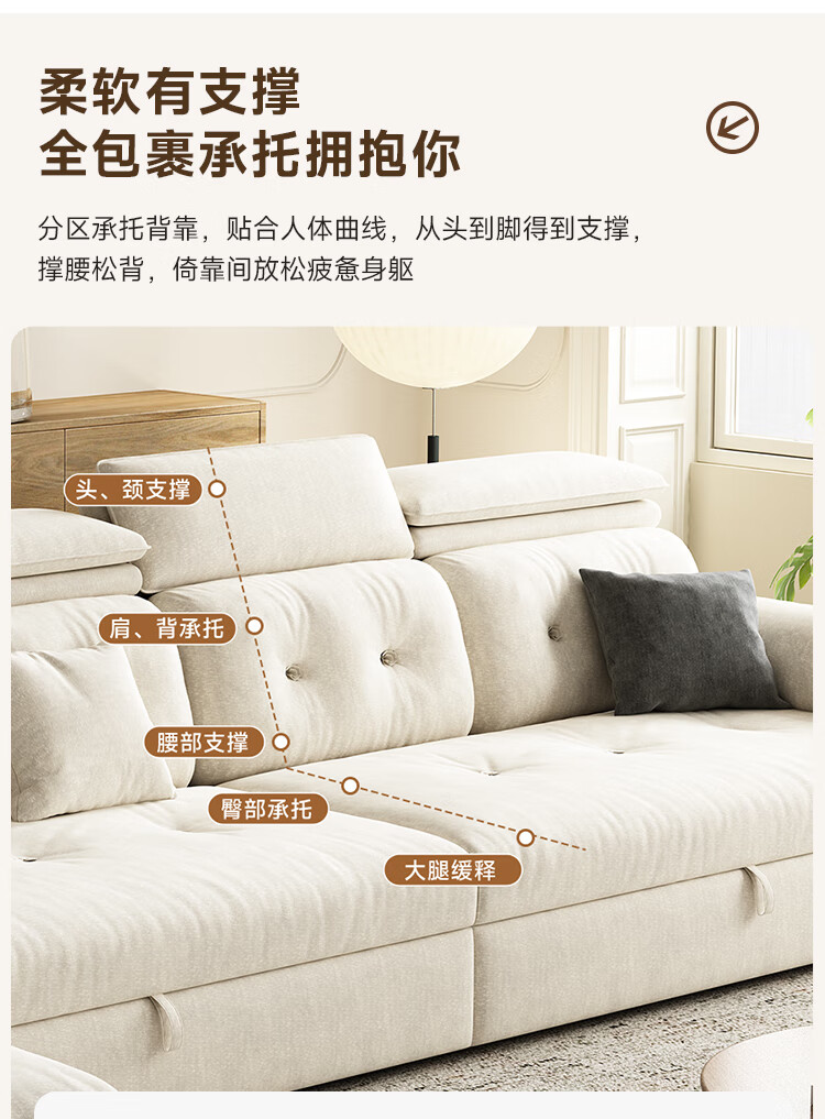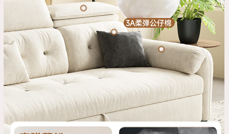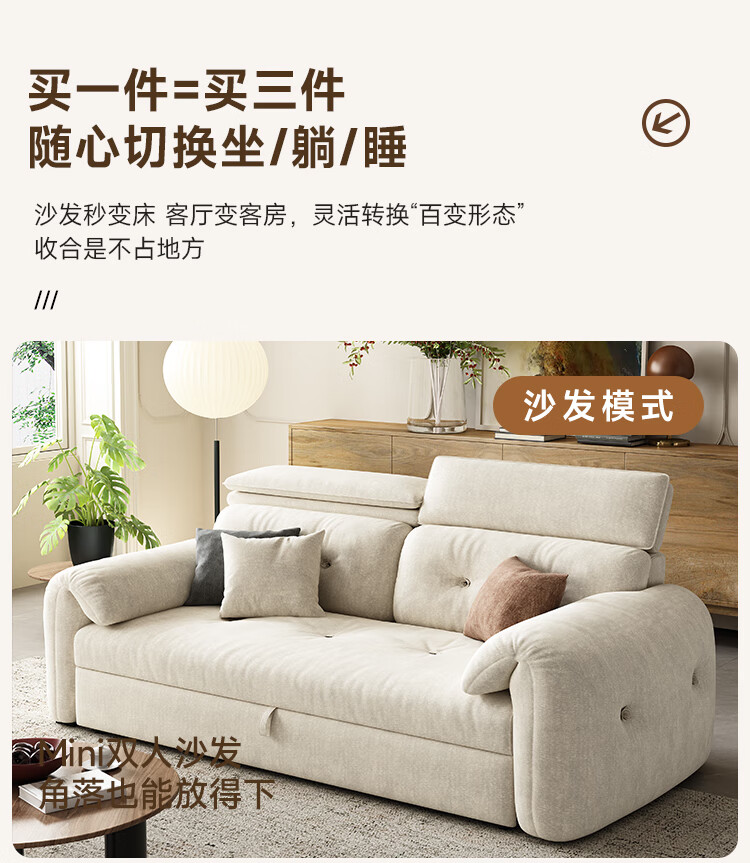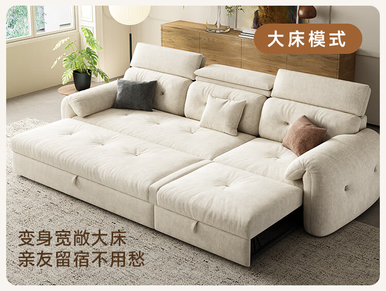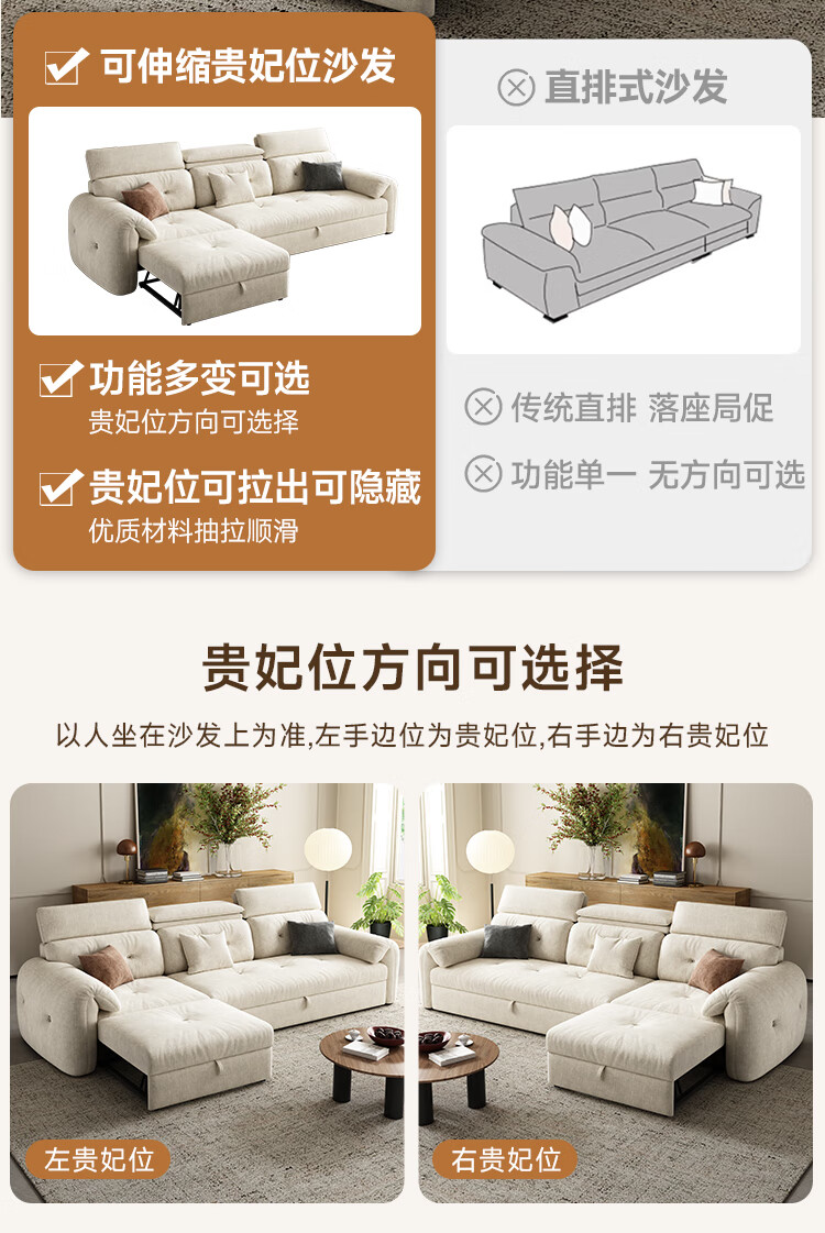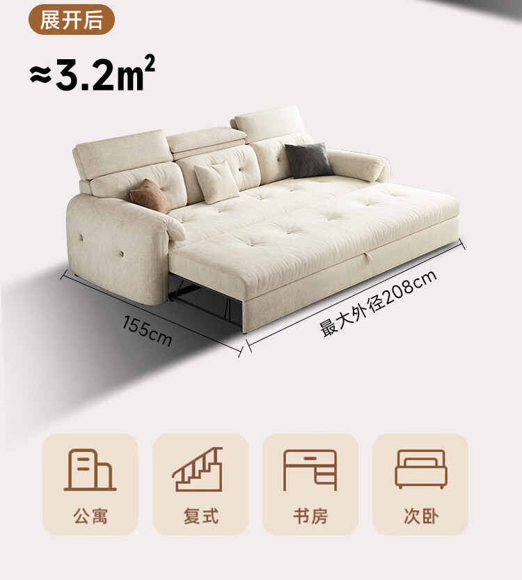 松南客厅奶油风雪尼尔贵妃沙发布艺新款家用大小户型可折叠直排沙发床 总长1.28m直排:大单位 高弹海绵款(加厚雪尼尔)