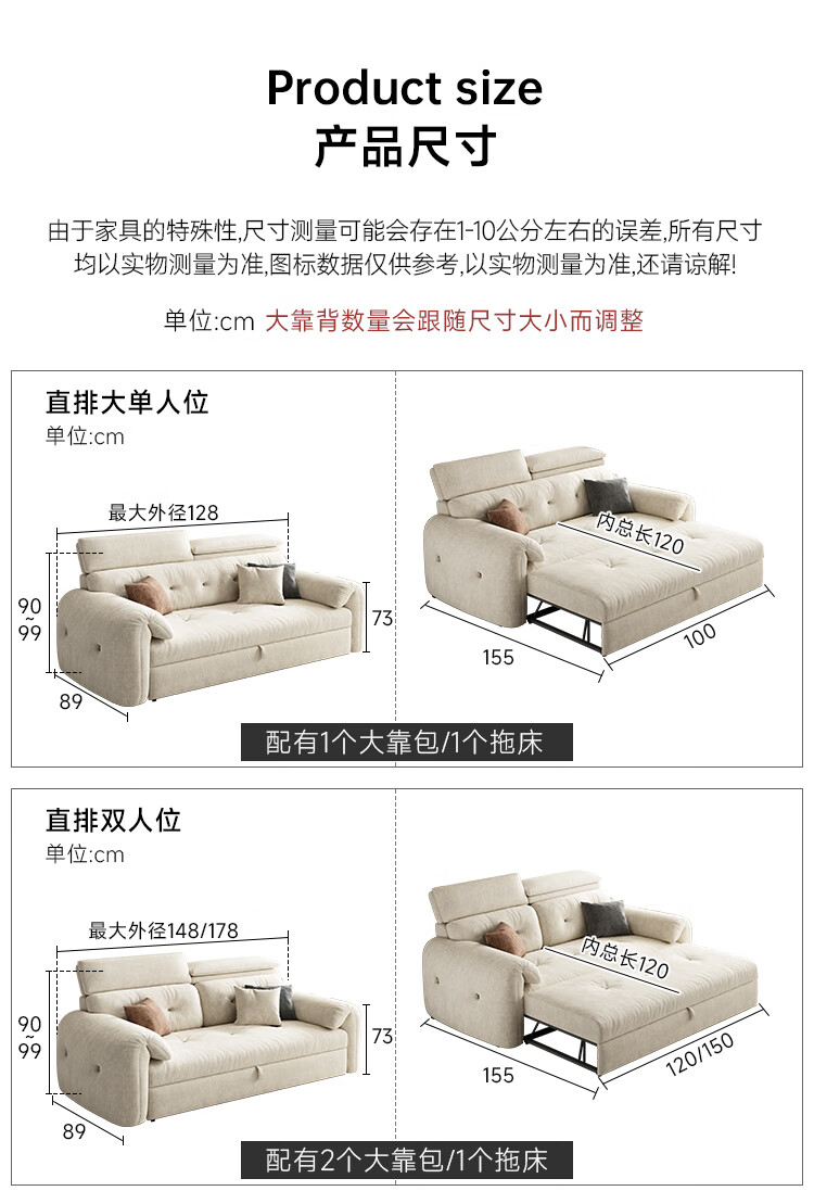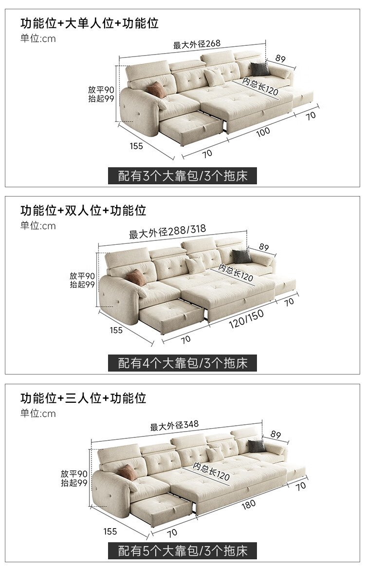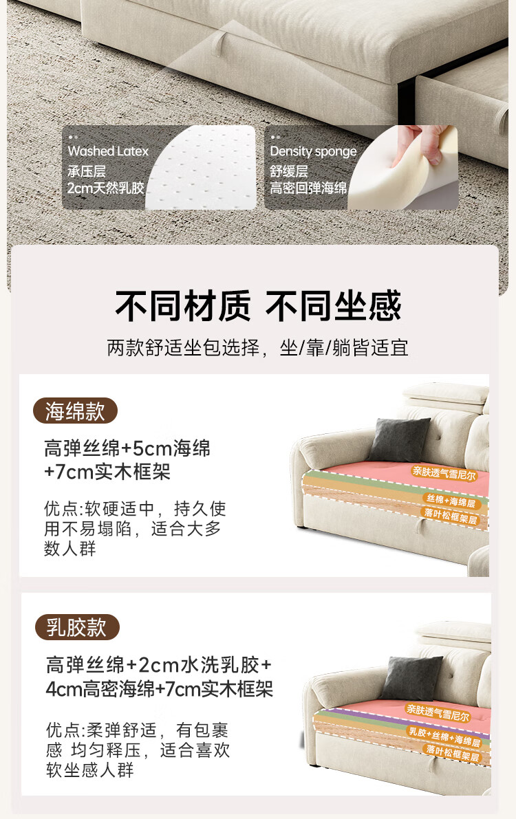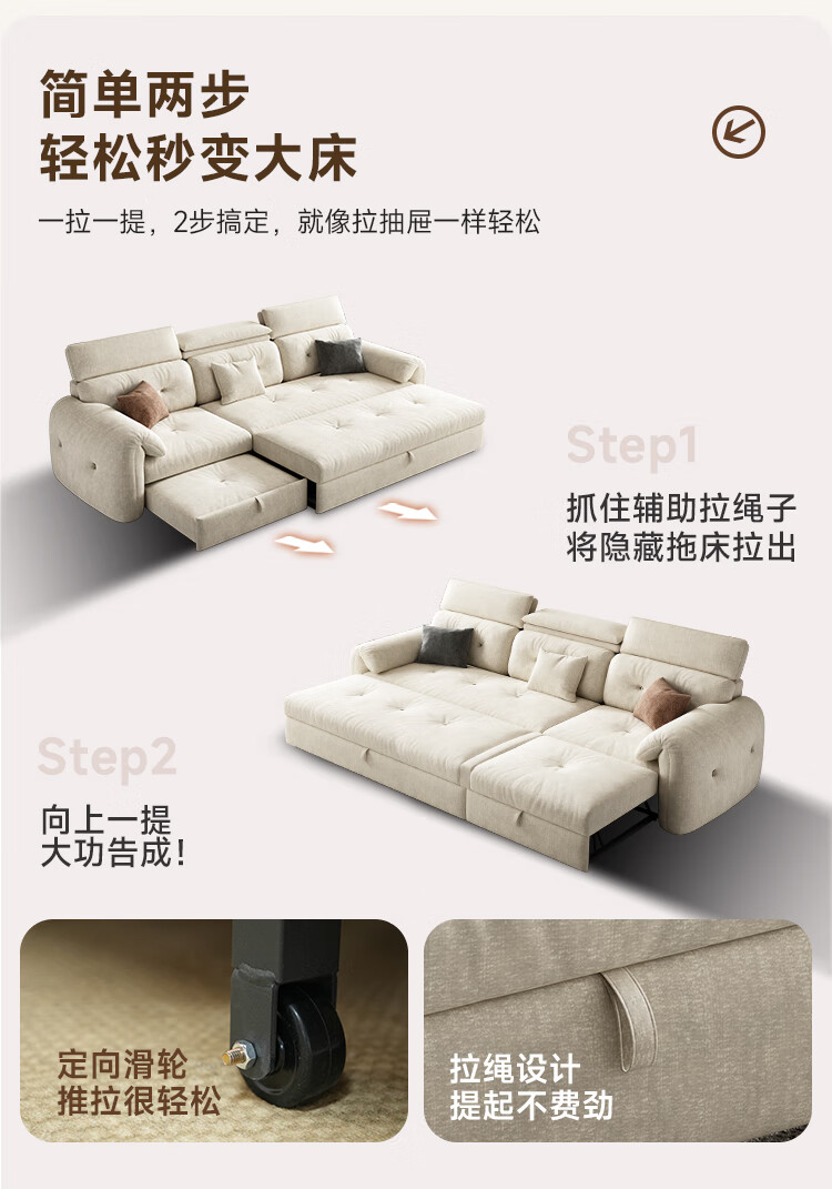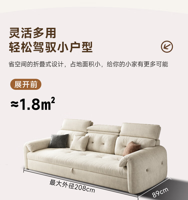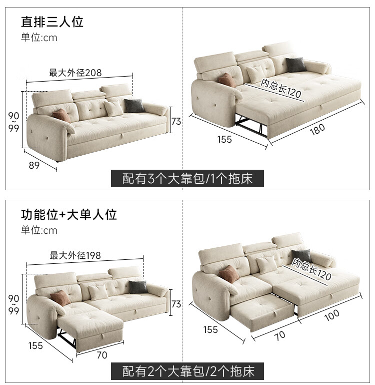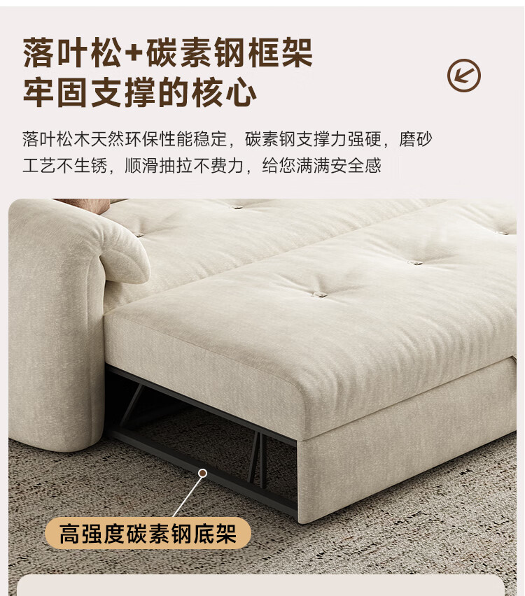 松南客厅奶油风雪尼尔贵妃沙发布艺新款家用大小户型可折叠直排沙发床 总长1.28m直排:大单位 高弹海绵款(加厚雪尼尔)