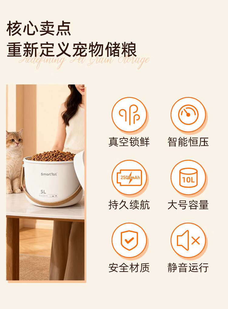 SMARTTAIL猫粮狗粮桶猫咪真空储粮桶密封防虫防潮宠物粮桶