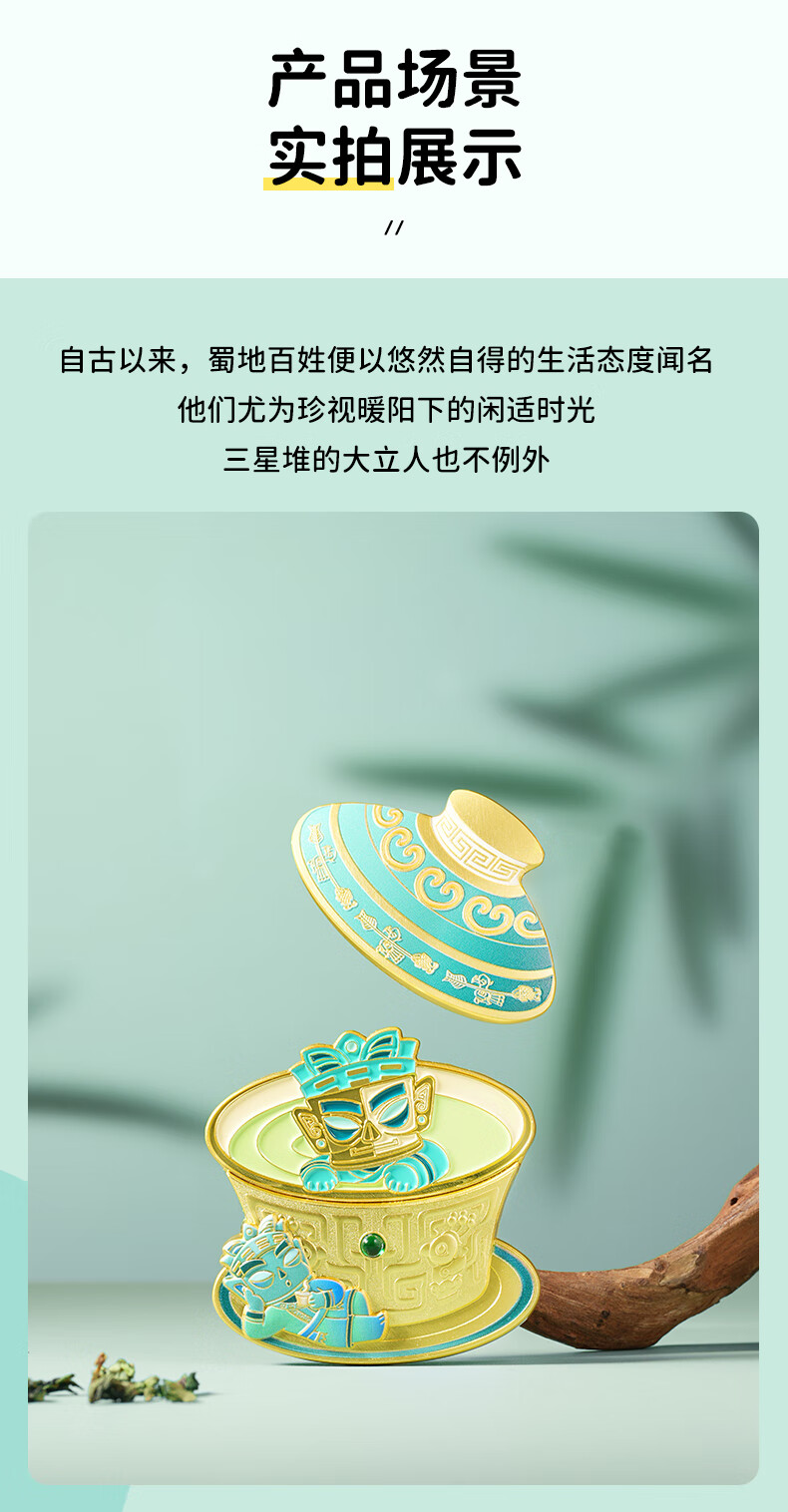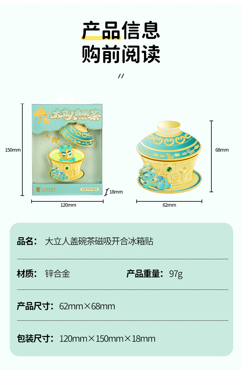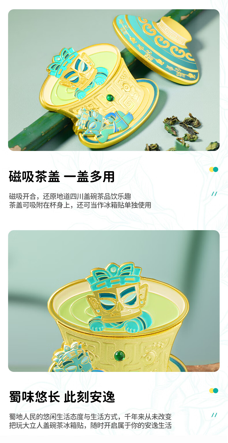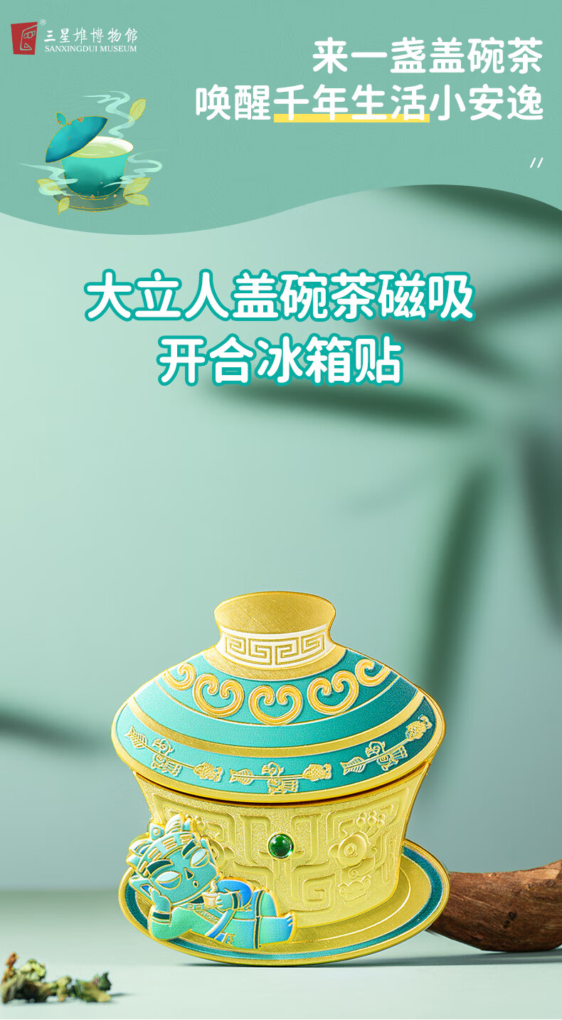 三星堆博物馆文创周边大立人盖碗茶开合冰箱贴金属磁吸旅四川旅游博物馆纪念品 大立人盖碗茶磁吸开合冰箱贴