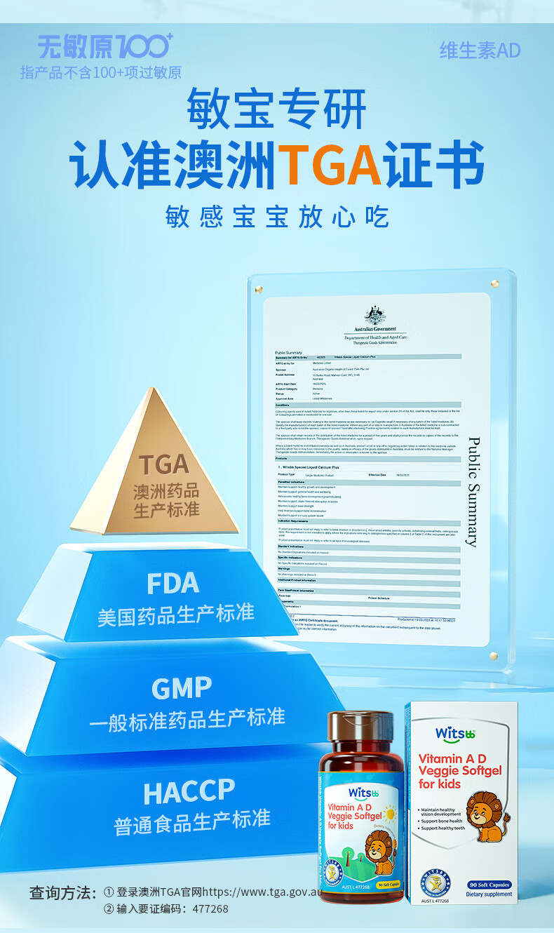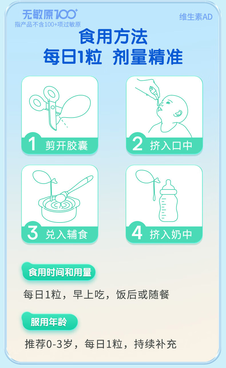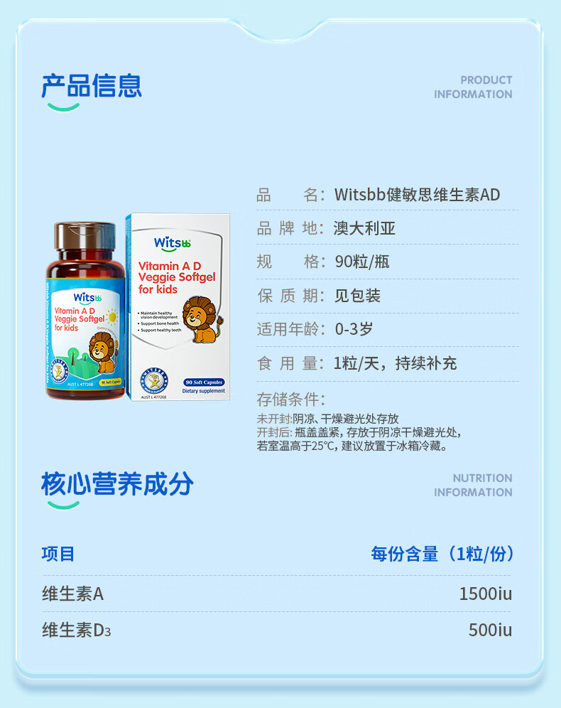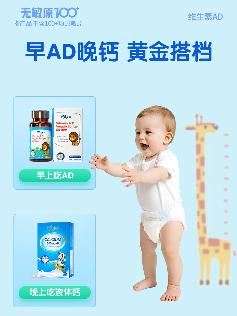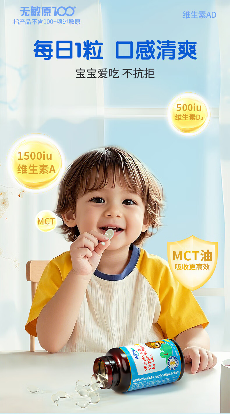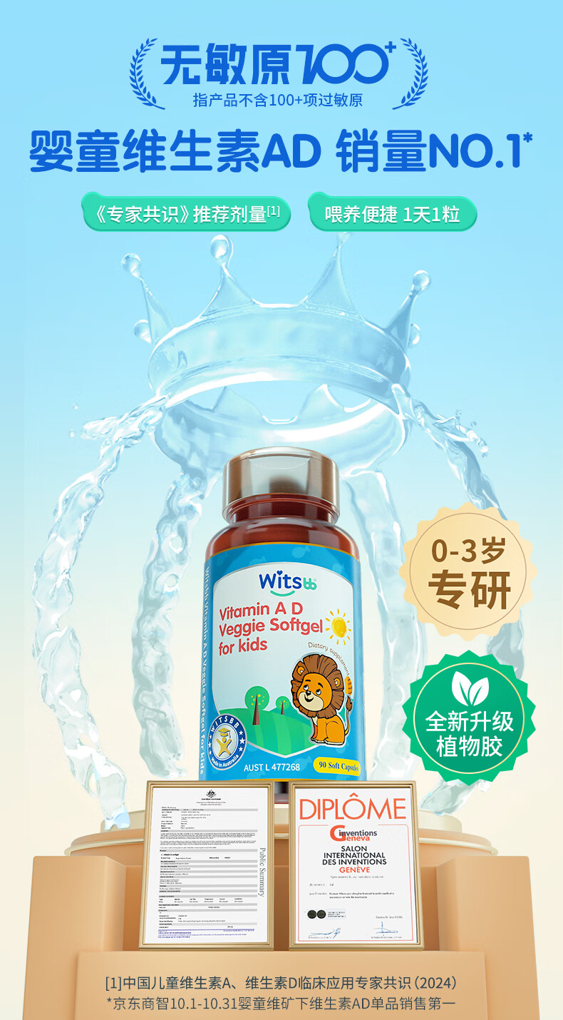 witsbb【吴敏霞力荐】健敏思婴幼儿维生素AD100+项无敏原 0-3岁D3澳版
