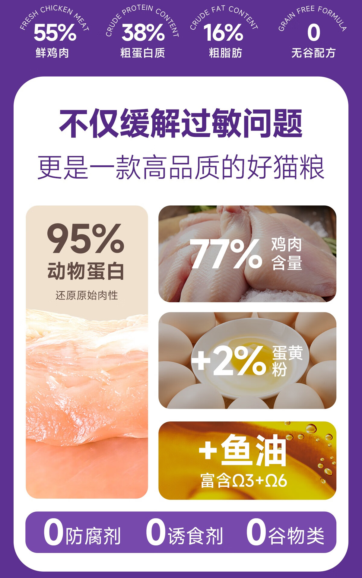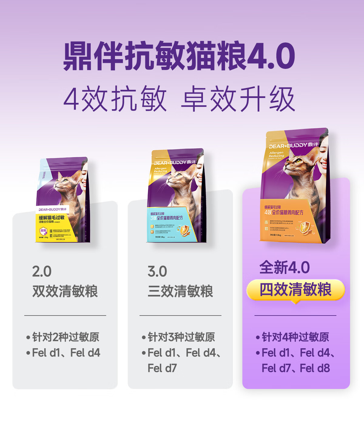 鼎伴抗过敏猫粮减少过敏原低敏脱敏全价幼猫成猫粮3效清敏主粮1.5kg