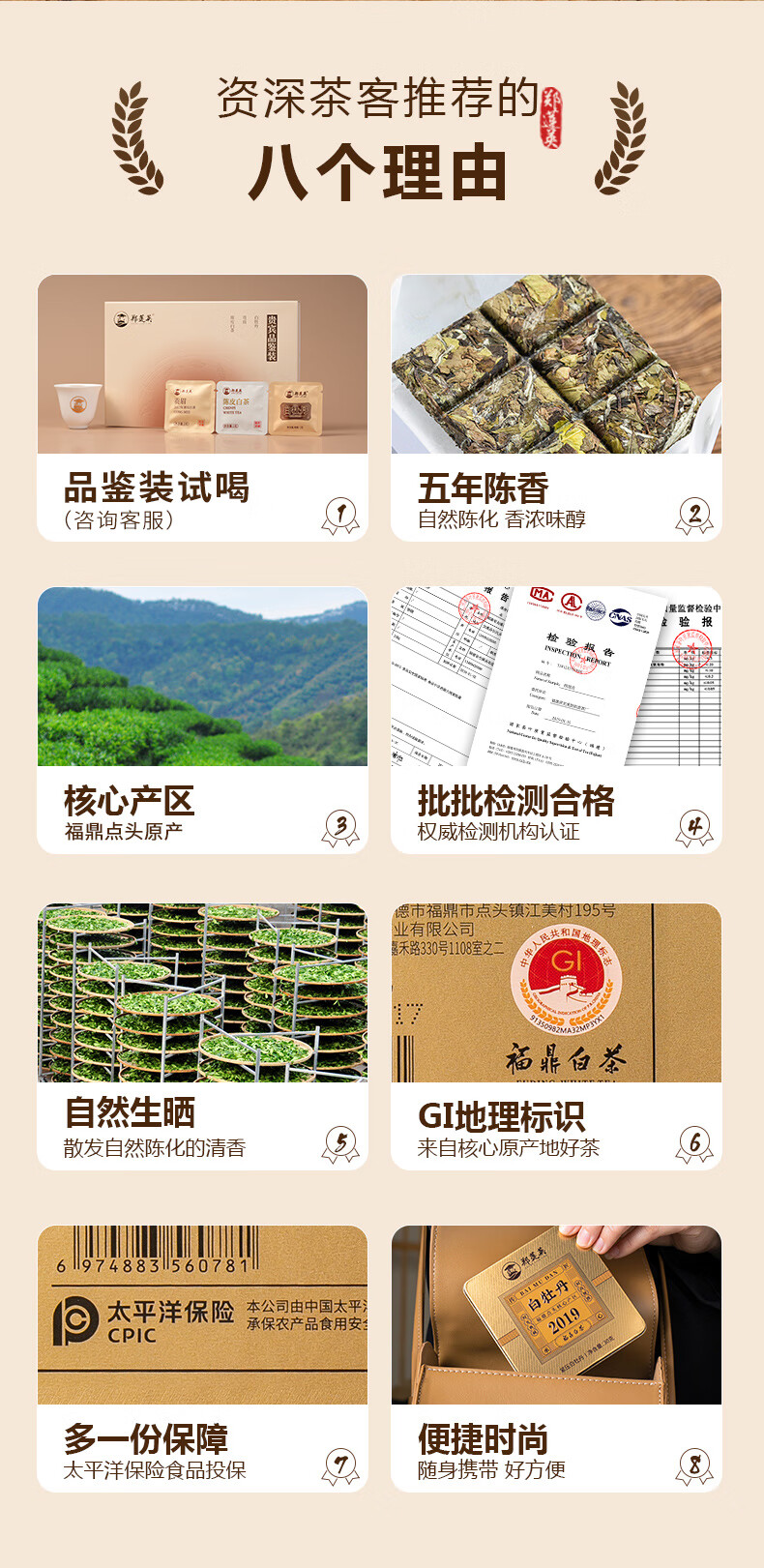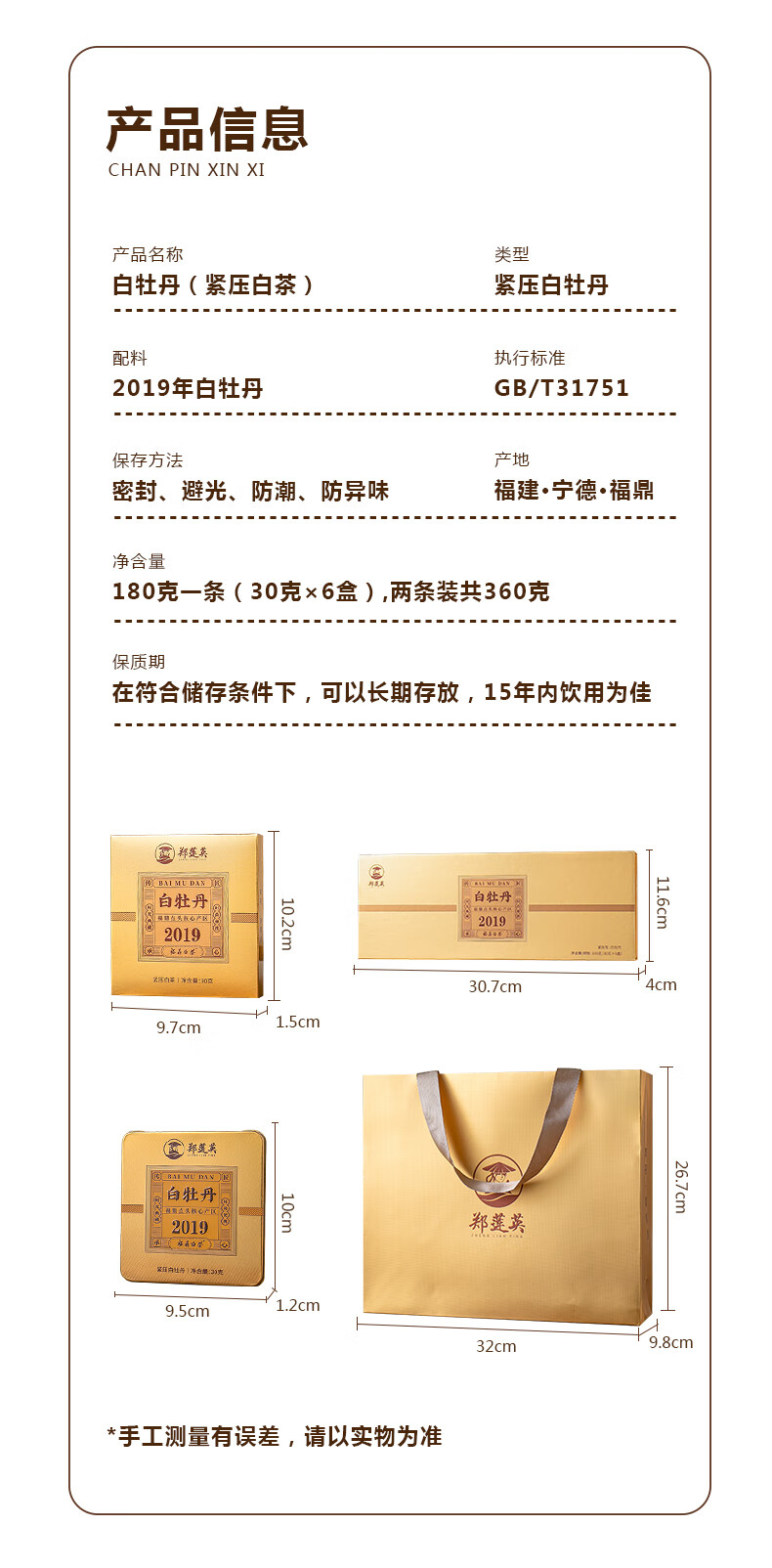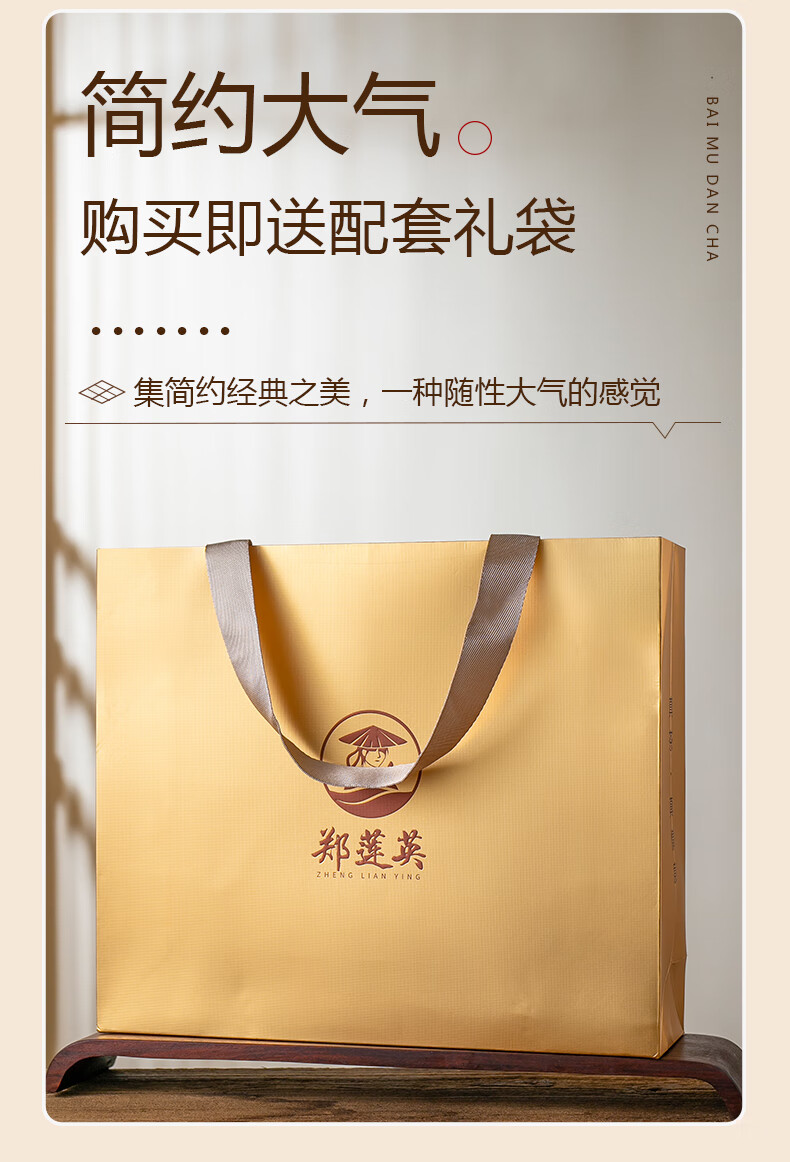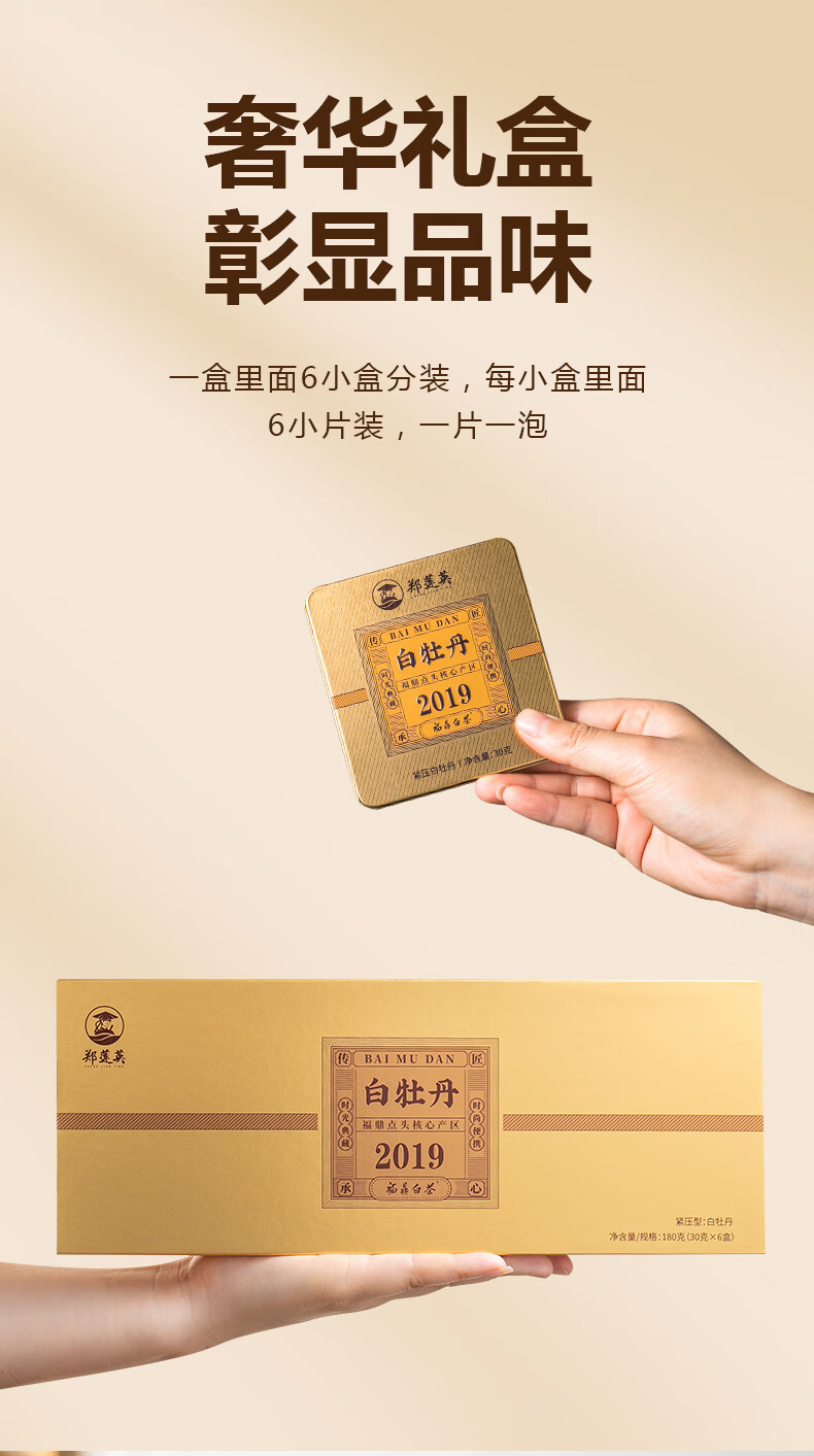 郑莲英(ZHENGLIANYING)茶叶2019年白牡丹白茶福鼎白茶老白茶小方片节日送礼礼盒装360g