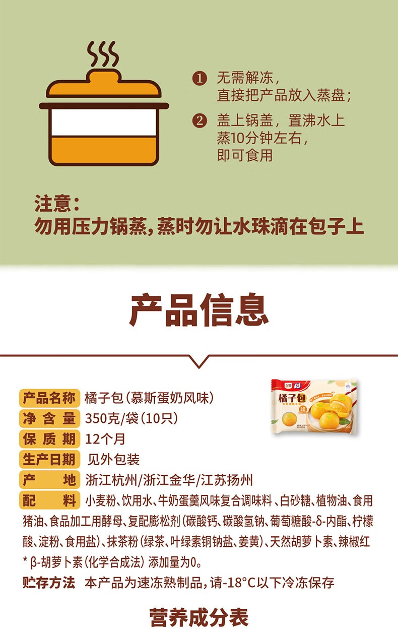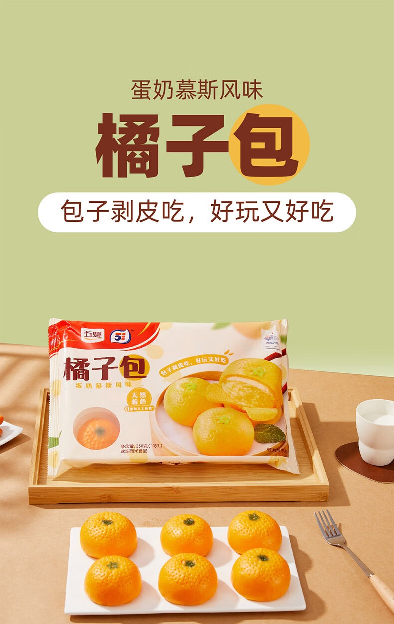 五丰 慕斯橘子包350g*2 20只早餐儿童面食甜包子馒头桔子速冻面点