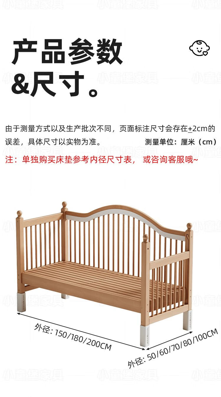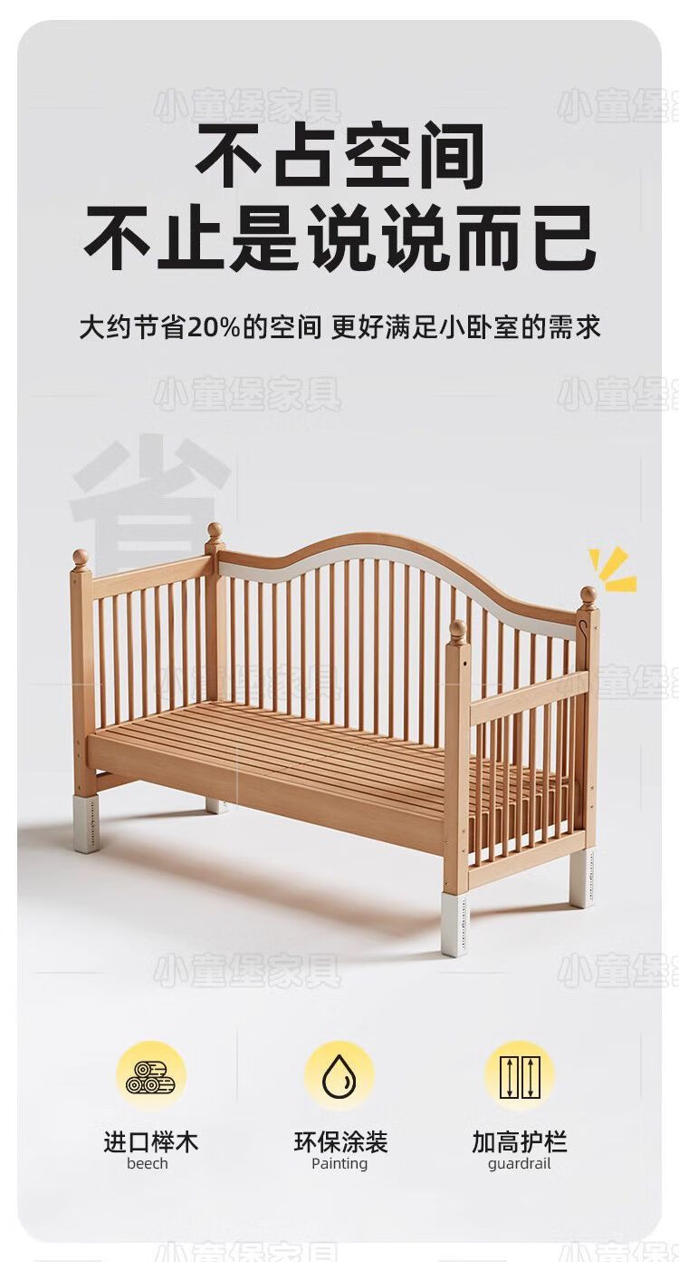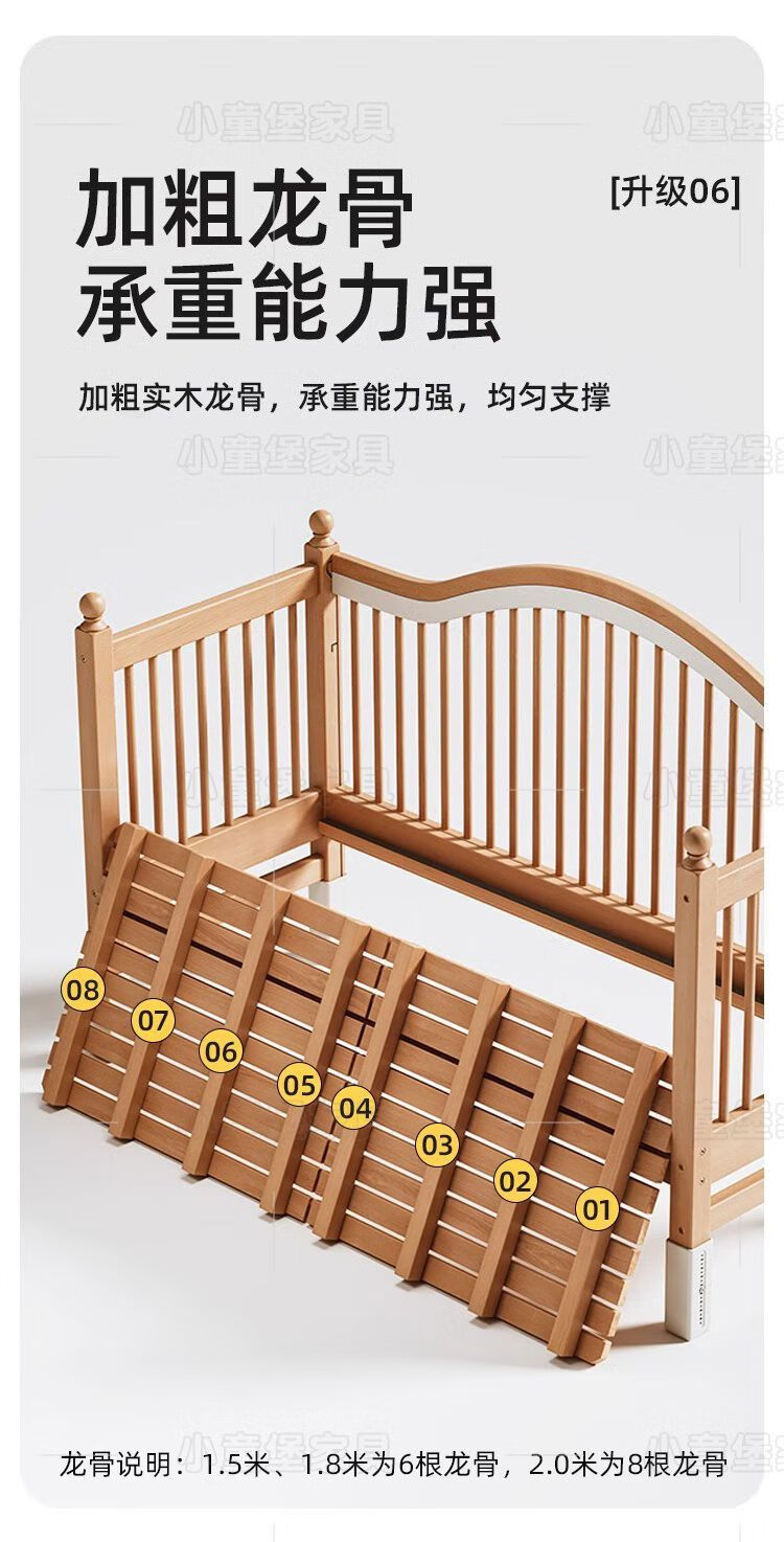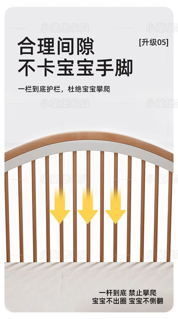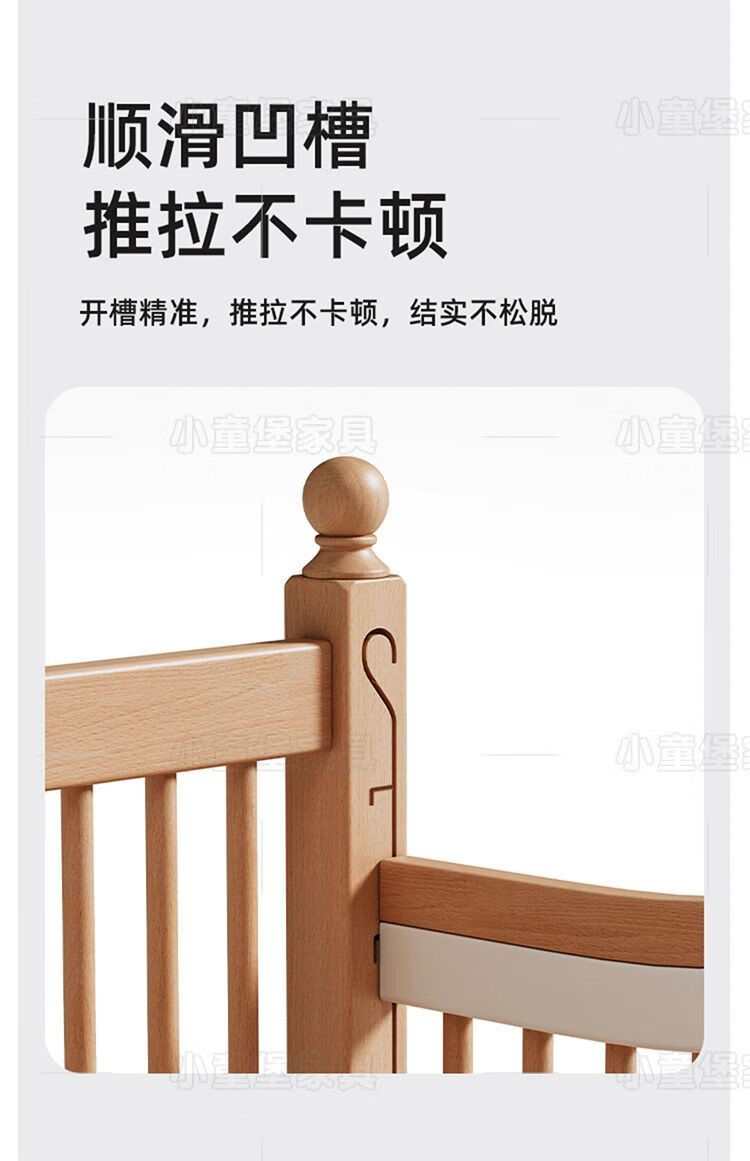 海诗圣堡榉木儿童拼接床实木婴儿床拼接大床升降护栏加宽床边床宝宝单人床 床高可调节(15档可调节) 全床榉木丨三面护栏丨150*60侧升降