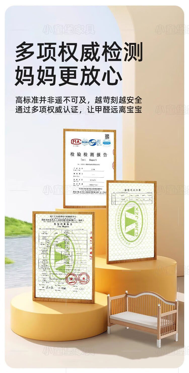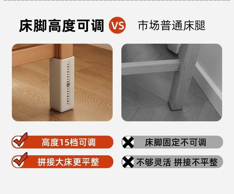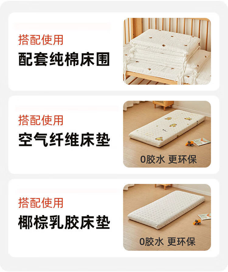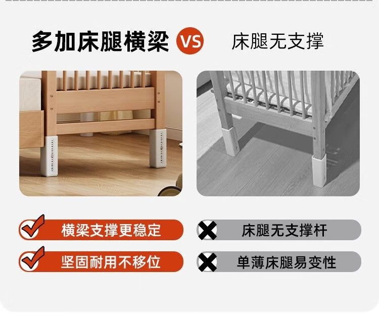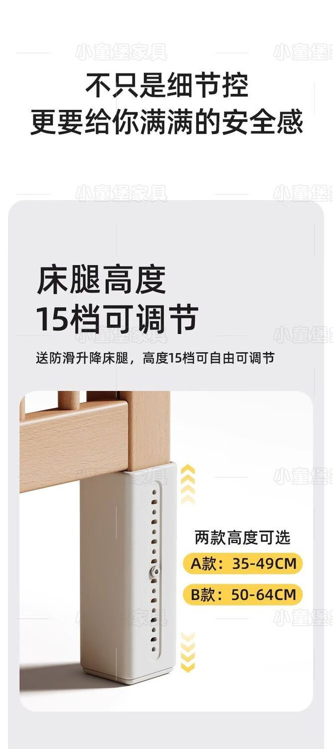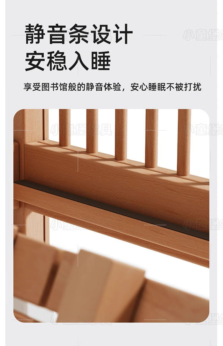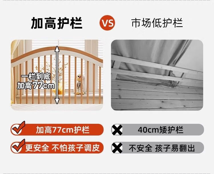 海诗圣堡榉木儿童拼接床实木婴儿床拼接大床升降护栏加宽床边床宝宝单人床 床高可调节(15档可调节) 全床榉木丨三面护栏丨150*60侧升降