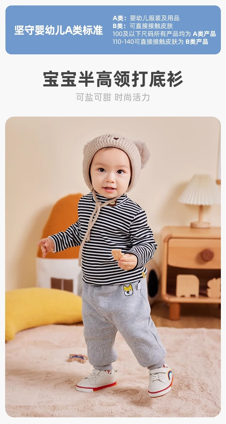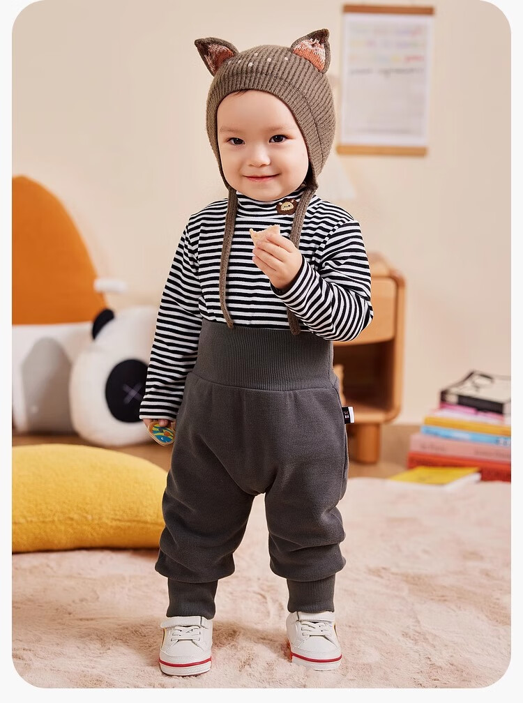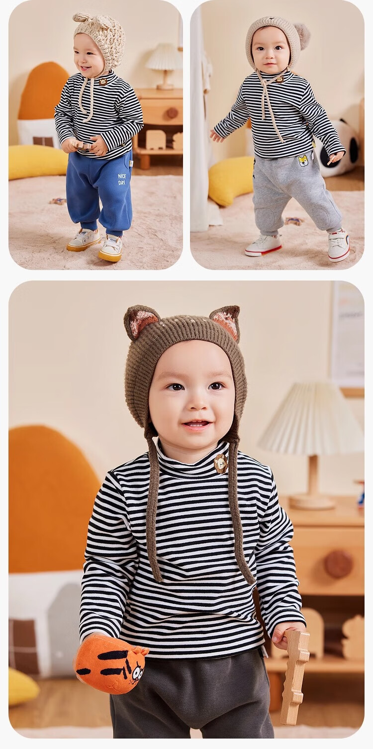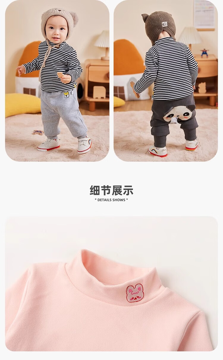 嘟嘟家男童打底衫冬款保暖儿童长袖T恤保暖男童上衣冬装女童洋气 米白色