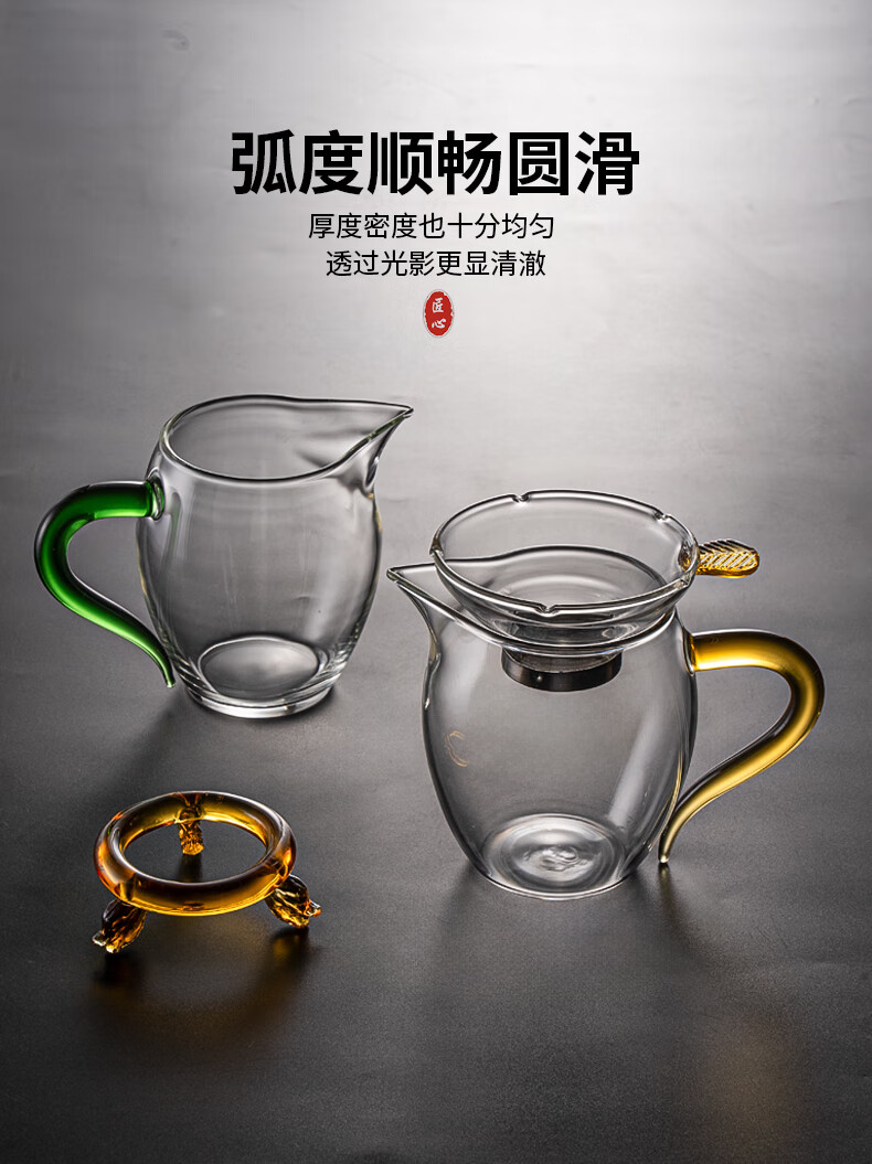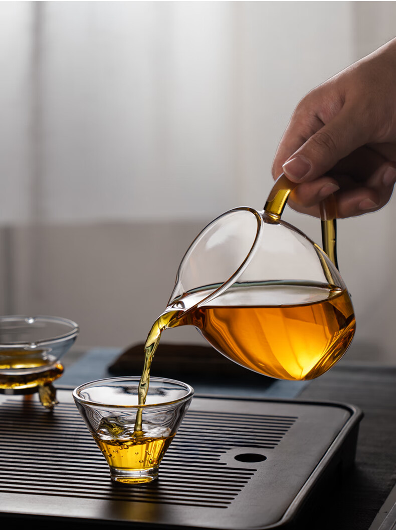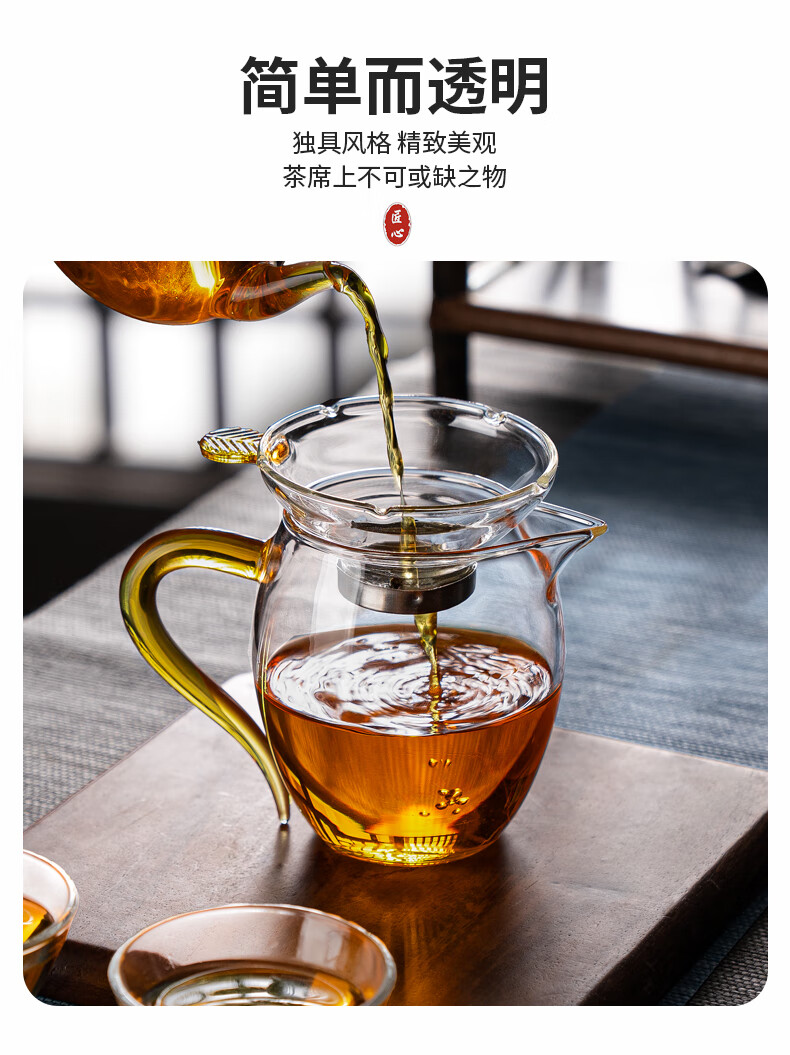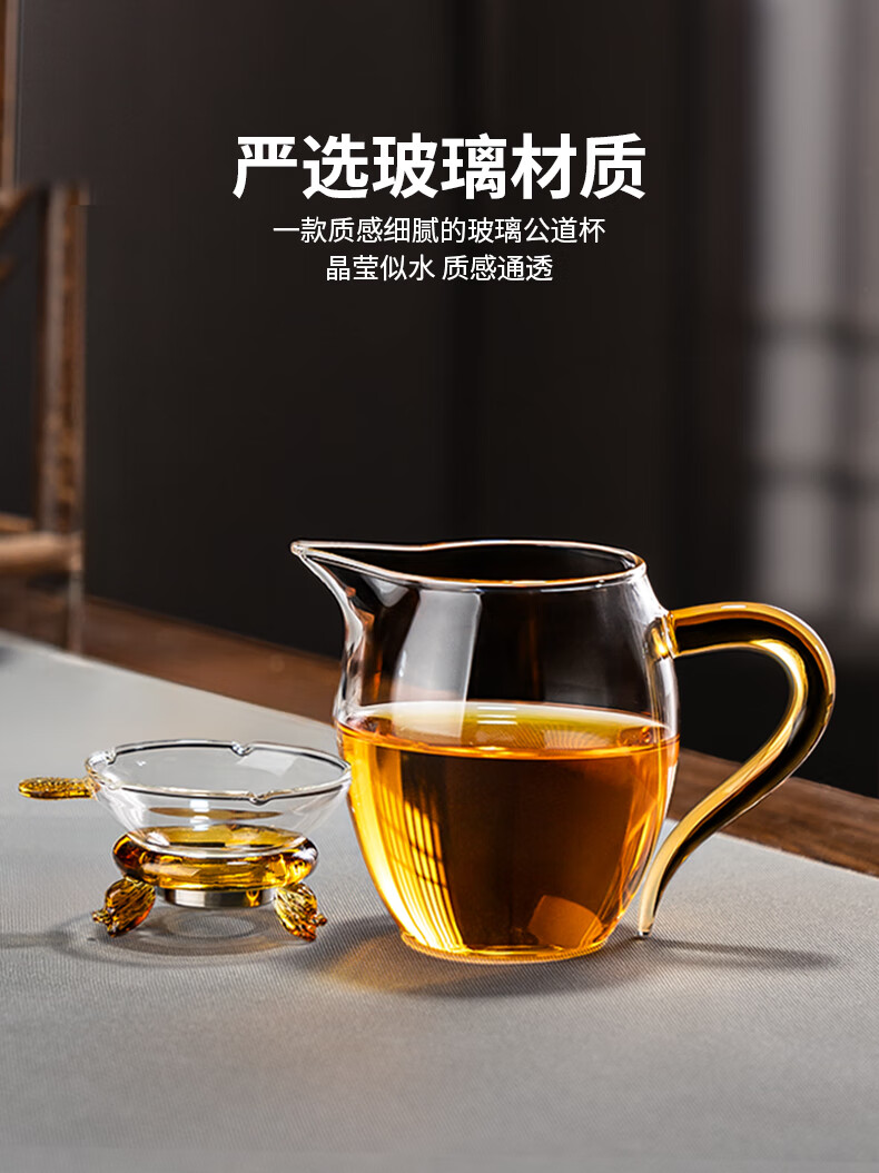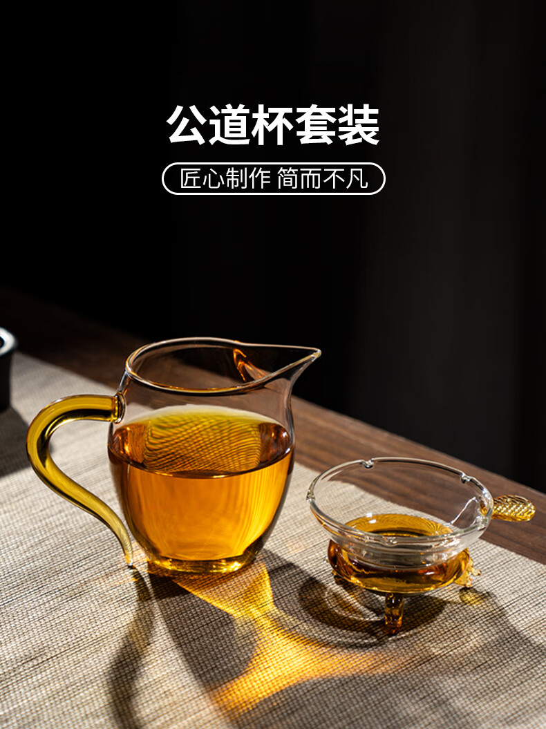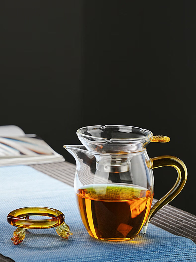 高茗日式公道杯玻璃茶具分茶器带茶漏一体泡茶杯高端公杯茶海茶漏套装 金色把公杯+茶漏400ml