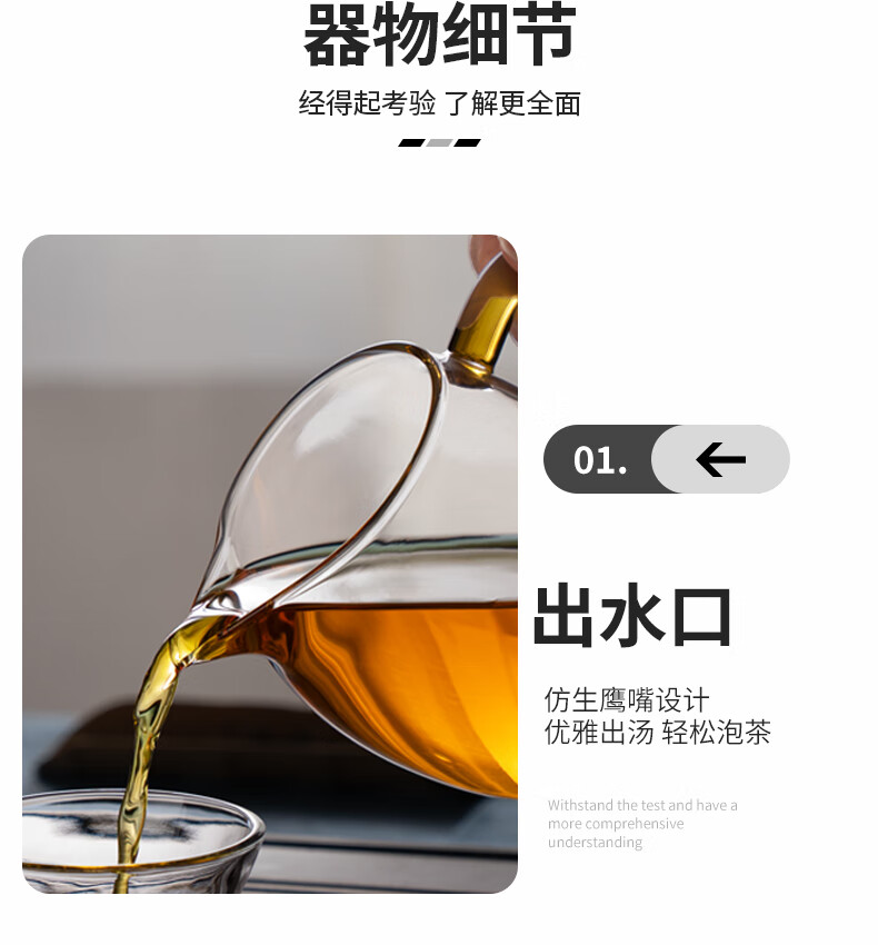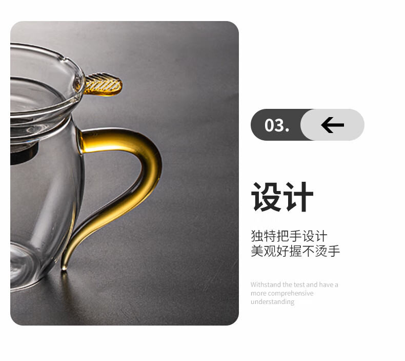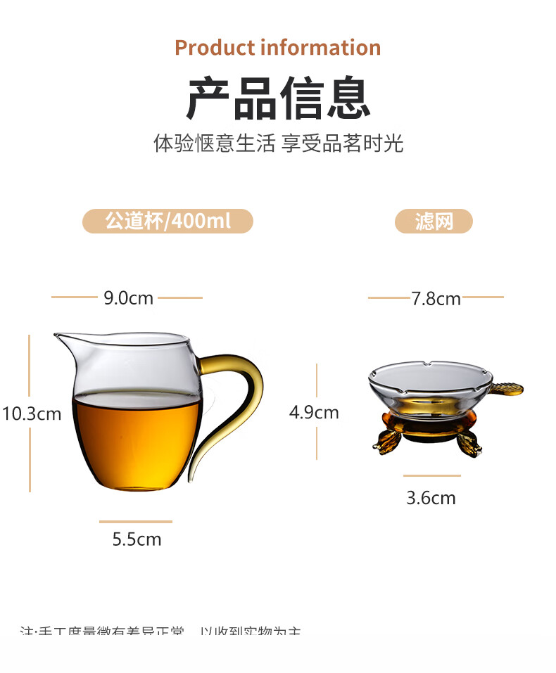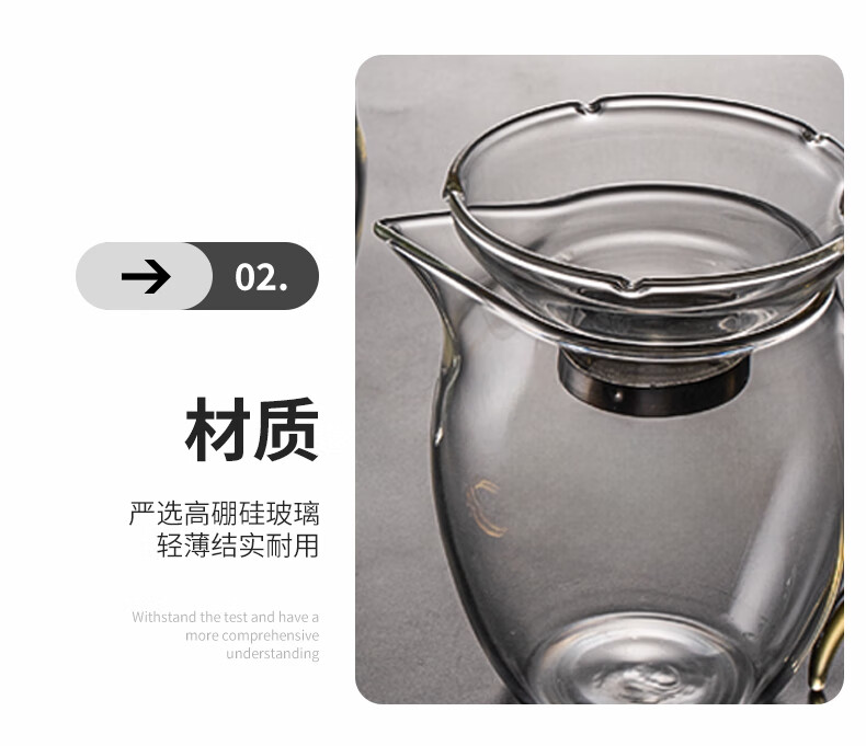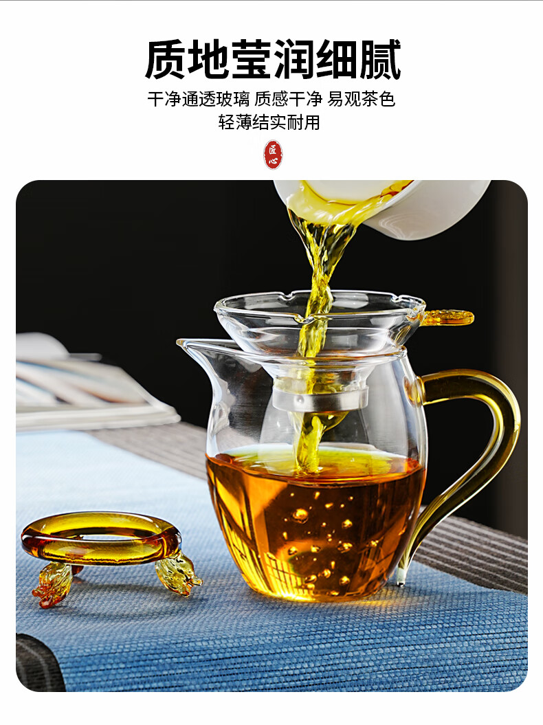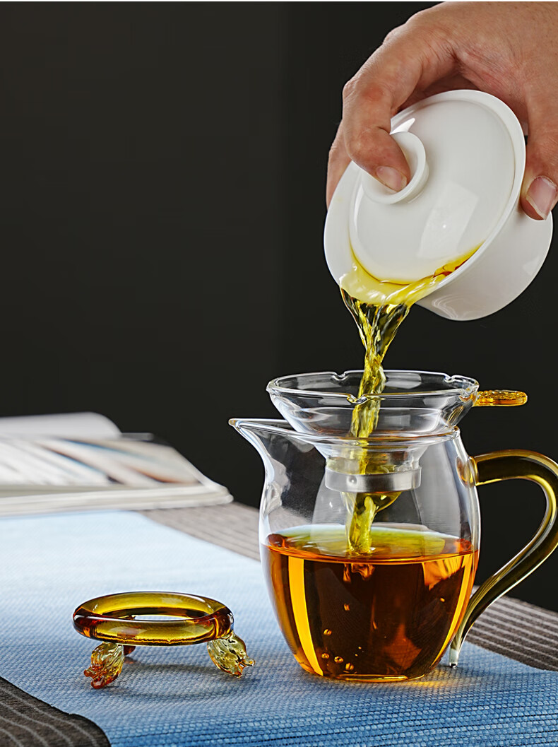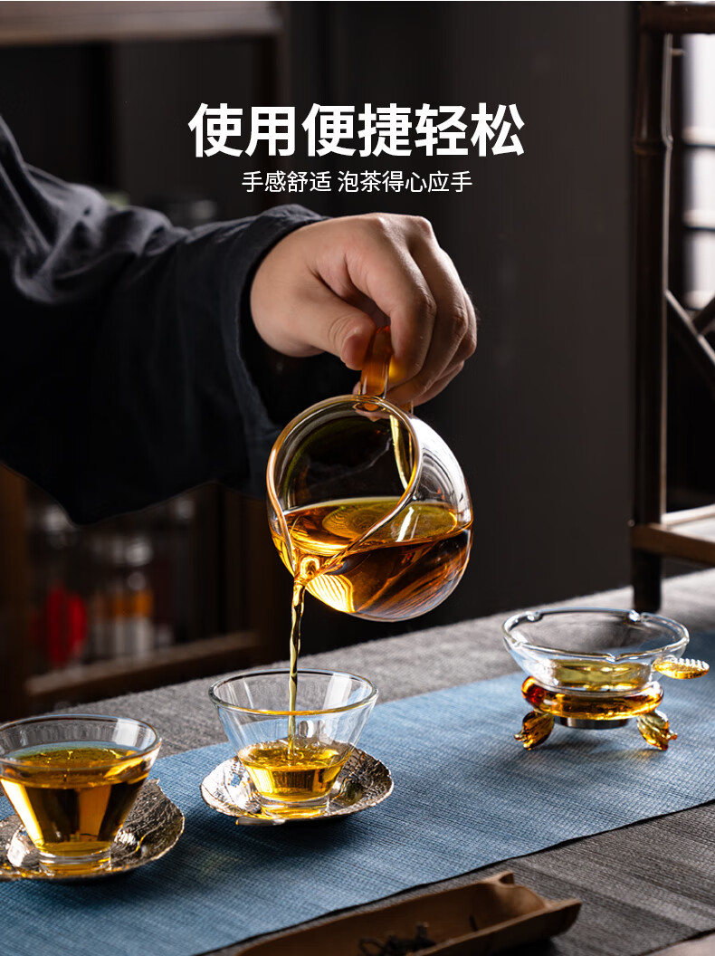 高茗日式公道杯玻璃茶具分茶器带茶漏一体泡茶杯高端公杯茶海茶漏套装 金色把公杯+茶漏400ml