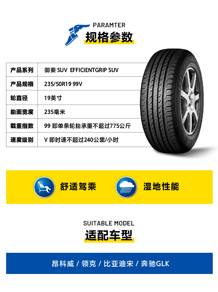 固特异(Goodyear)汽车轮胎235/50R19 99V EGP SUV 御乘SUV 原配星越L/奥迪Q3/探岳X