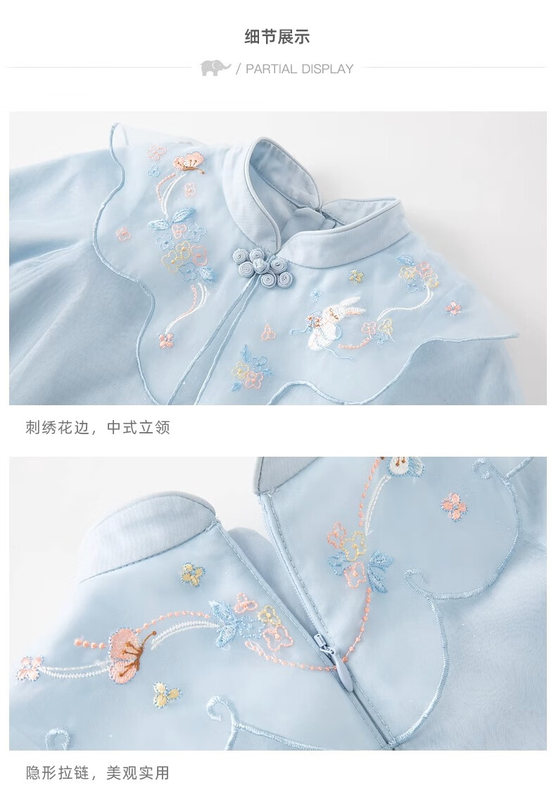 戴维贝拉(DAVE&BELLA)儿童裙子春秋装女童国风汉服连衣裙宝宝网纱公主裙