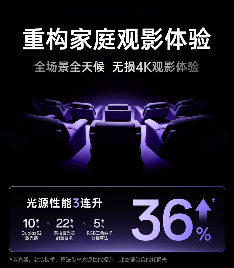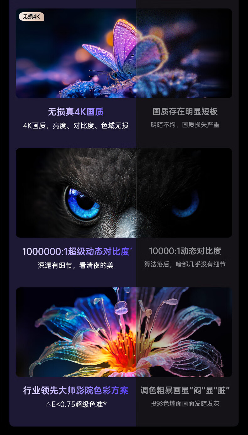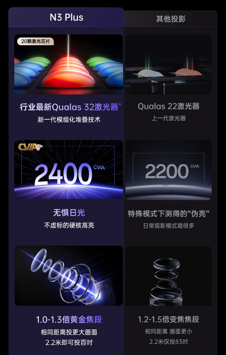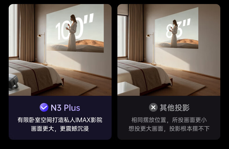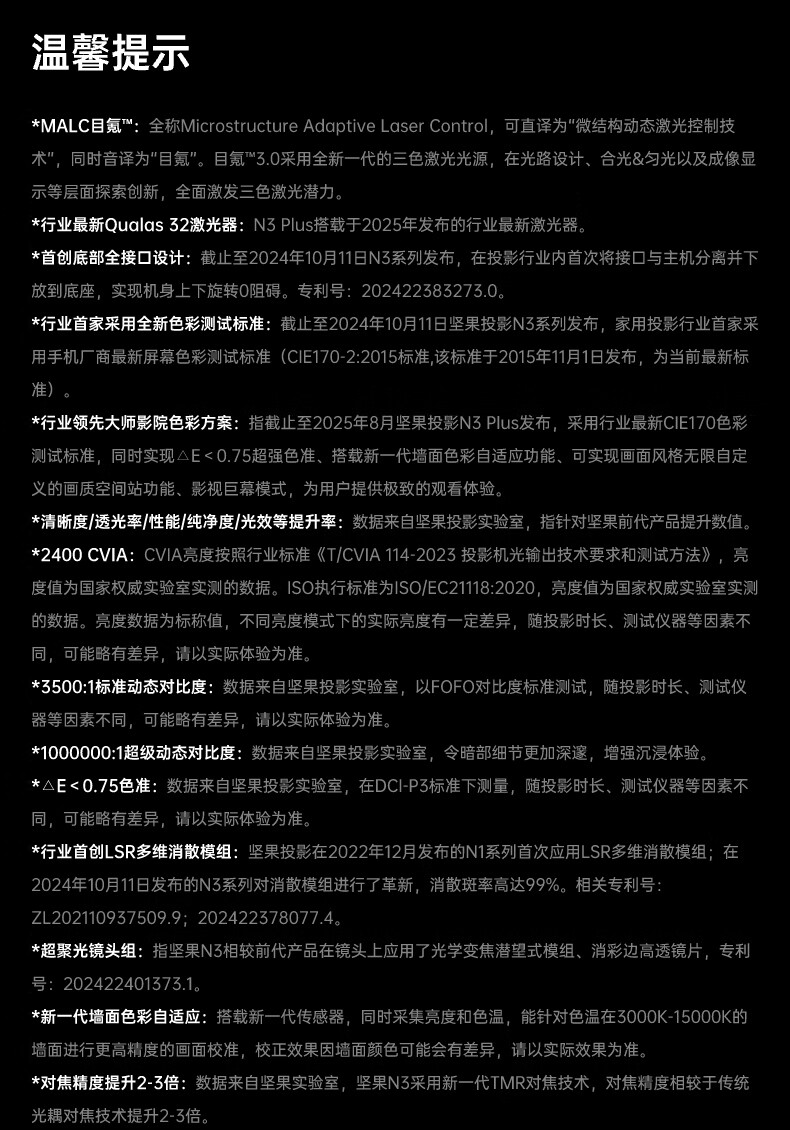坚果投影(JMGO)N3 Plus纯三色激光变焦投影仪家用 4K无损超高清云台投影机 智能家庭影院 N3 Pro平替 国家补贴20%