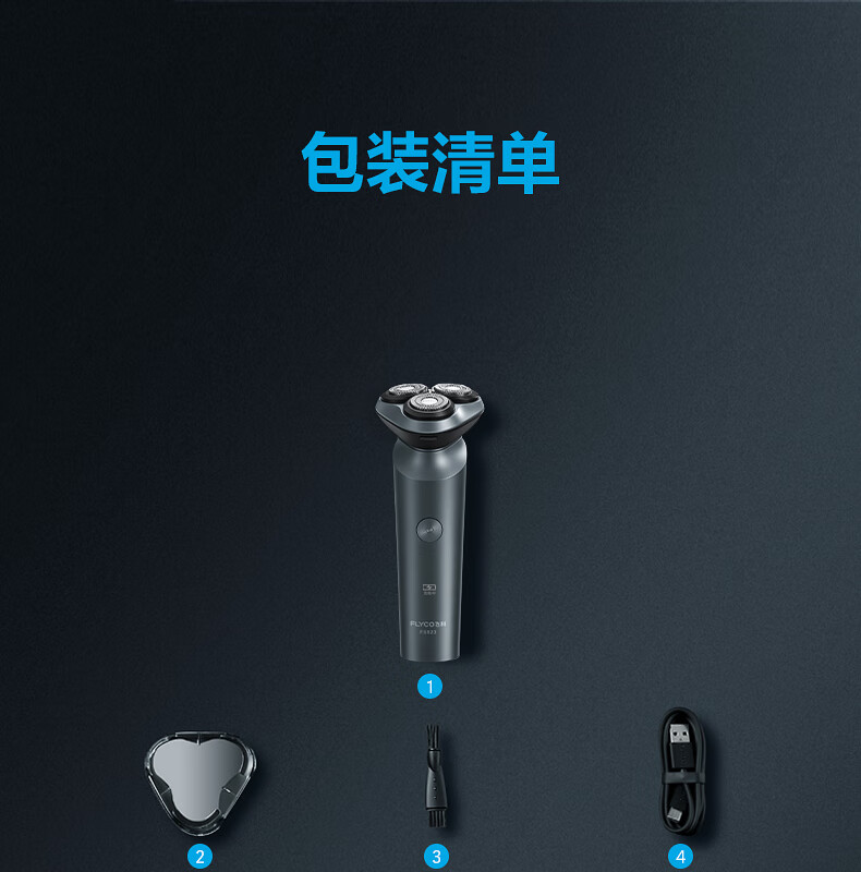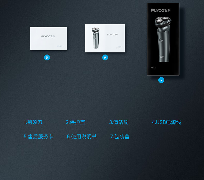 飞科(FLYCO)男士智能剃须刀旋转式电动刮胡刀剃胡须刀便携款全身水洗三刀头生日礼物送男友送父亲FS923