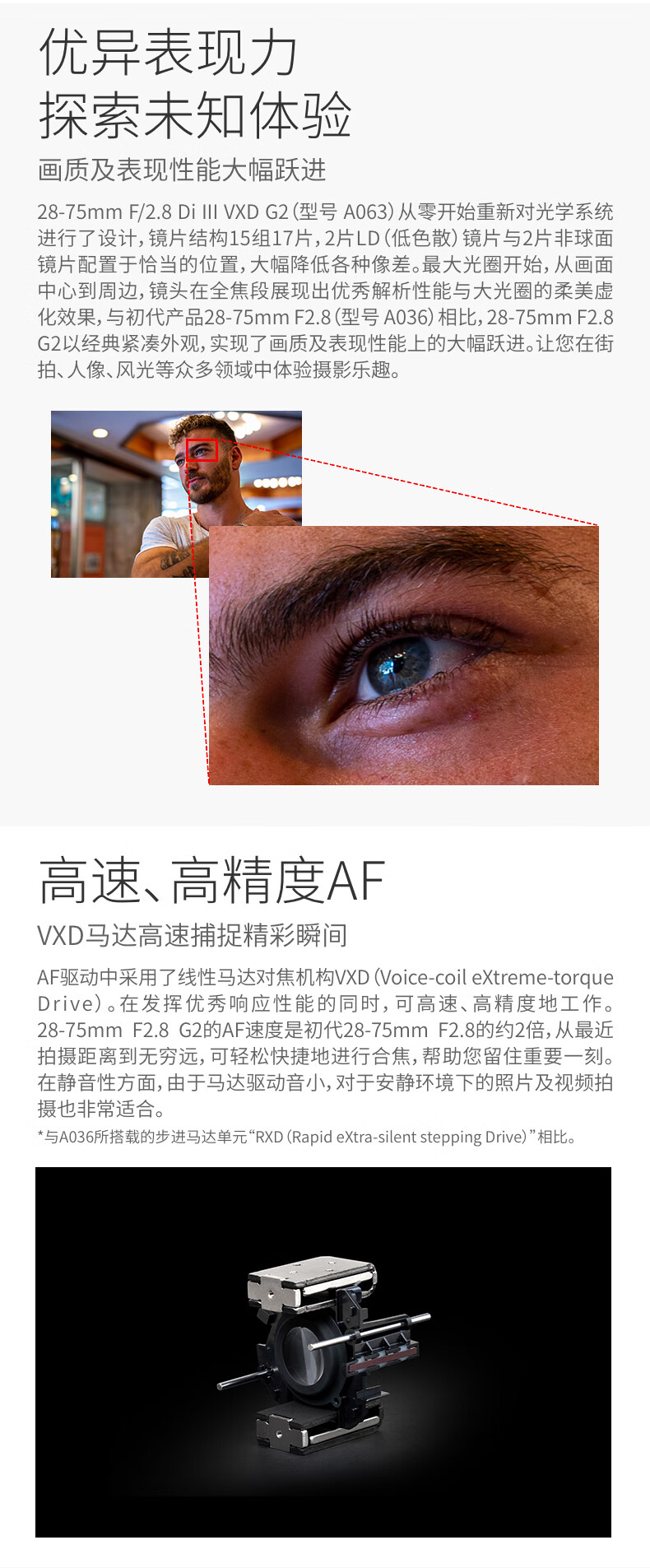 腾龙(Tamron)A063 28-75mm F/2.8 Di III VXD G2 28-75二代视频直播微单镜头风光人像2875 索尼FE卡口 官方标配【送腾龙UV滤镜+64G存储卡+清洁套装】