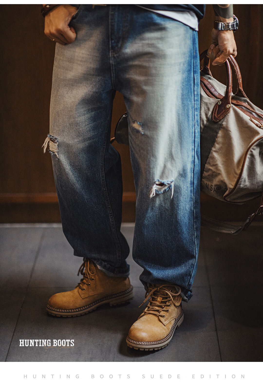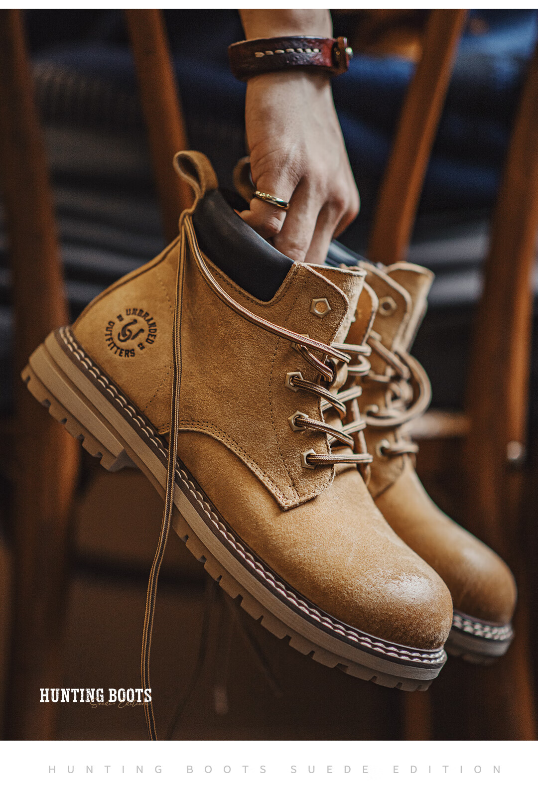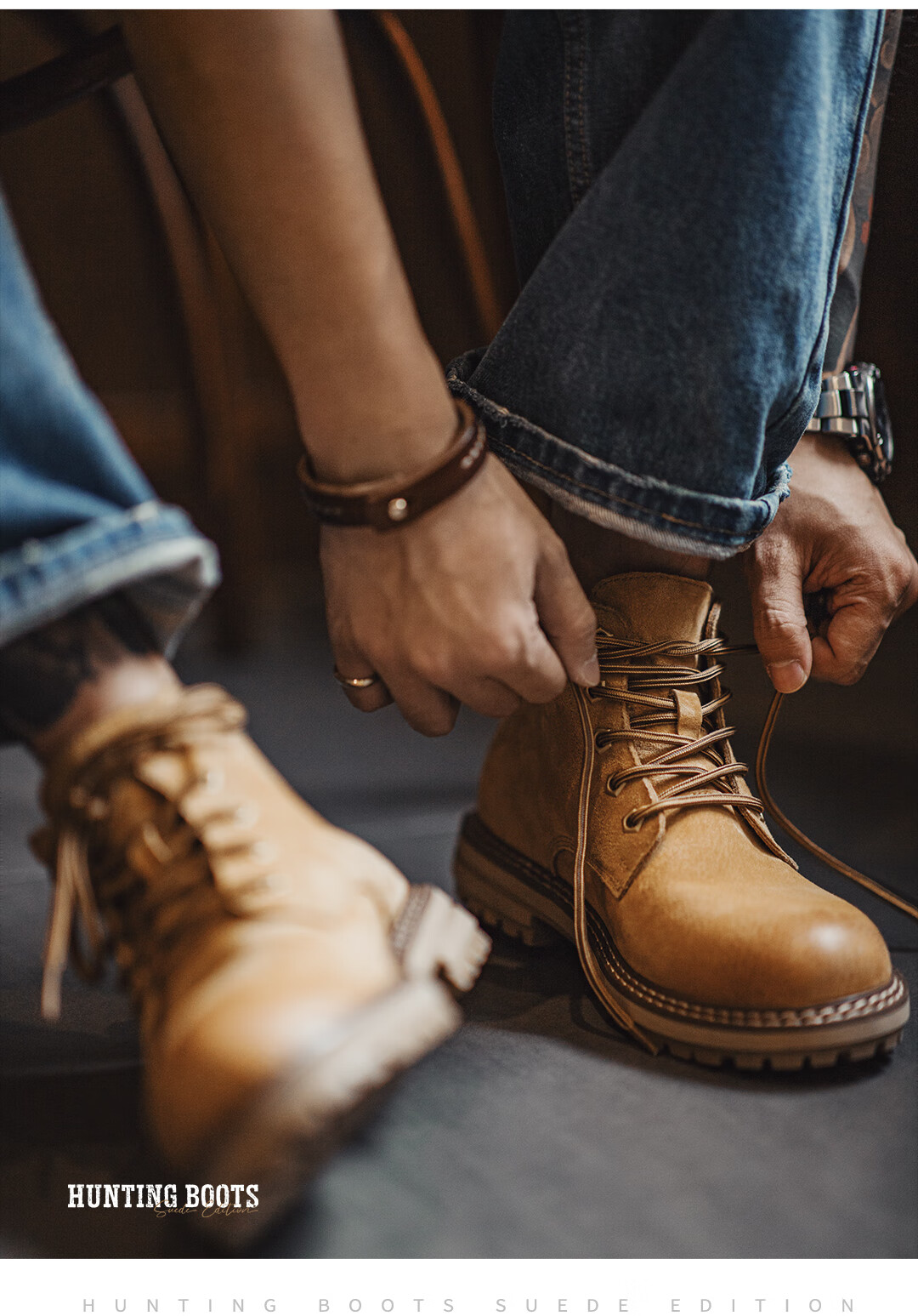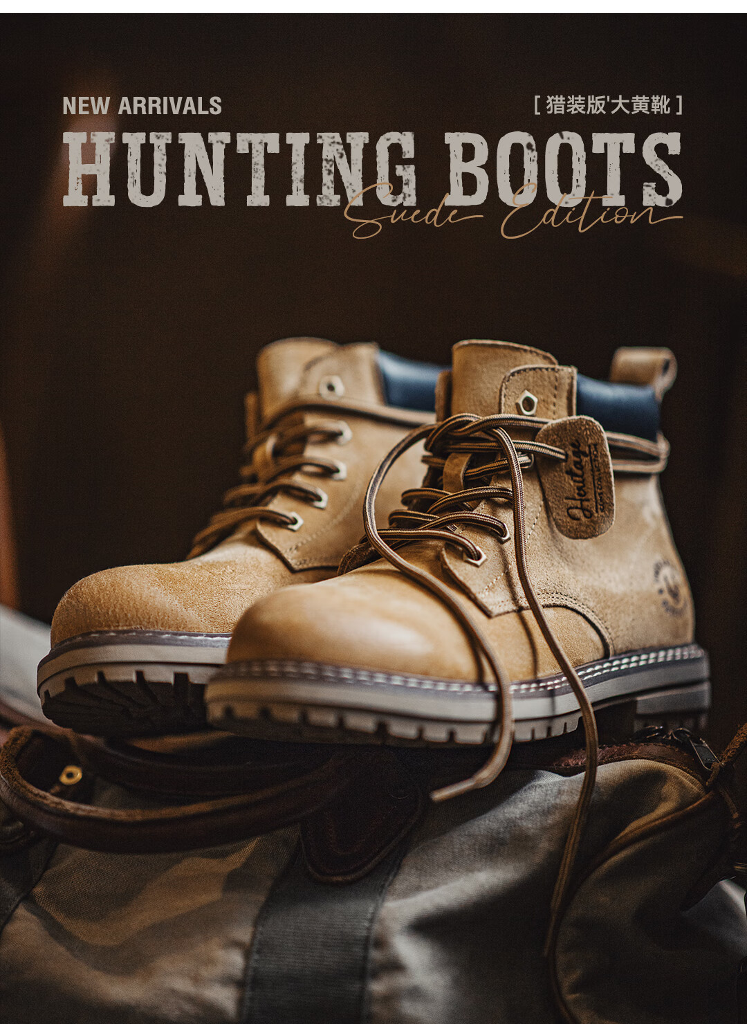 马登男鞋 马丁靴男士2025新款秋冬季狩猎版大黄靴中帮百搭舒适鞋靴子 沙漠黄 42