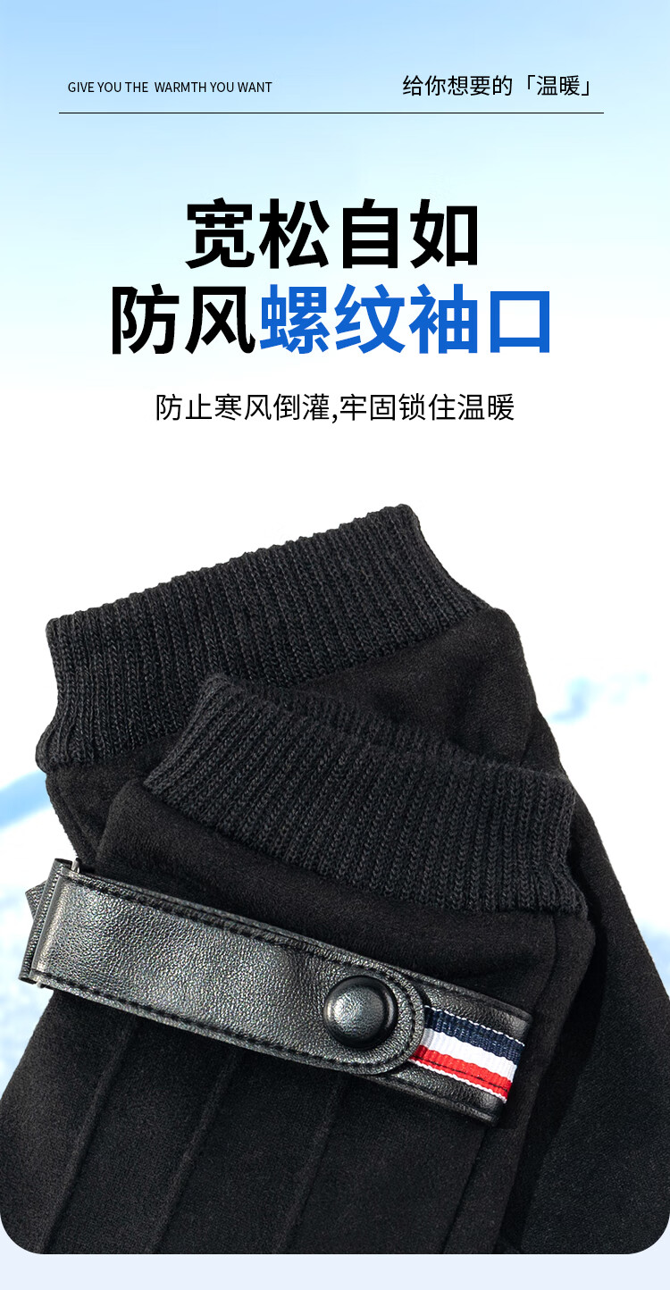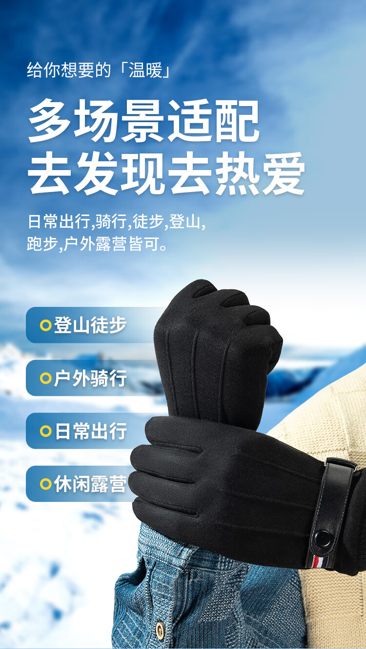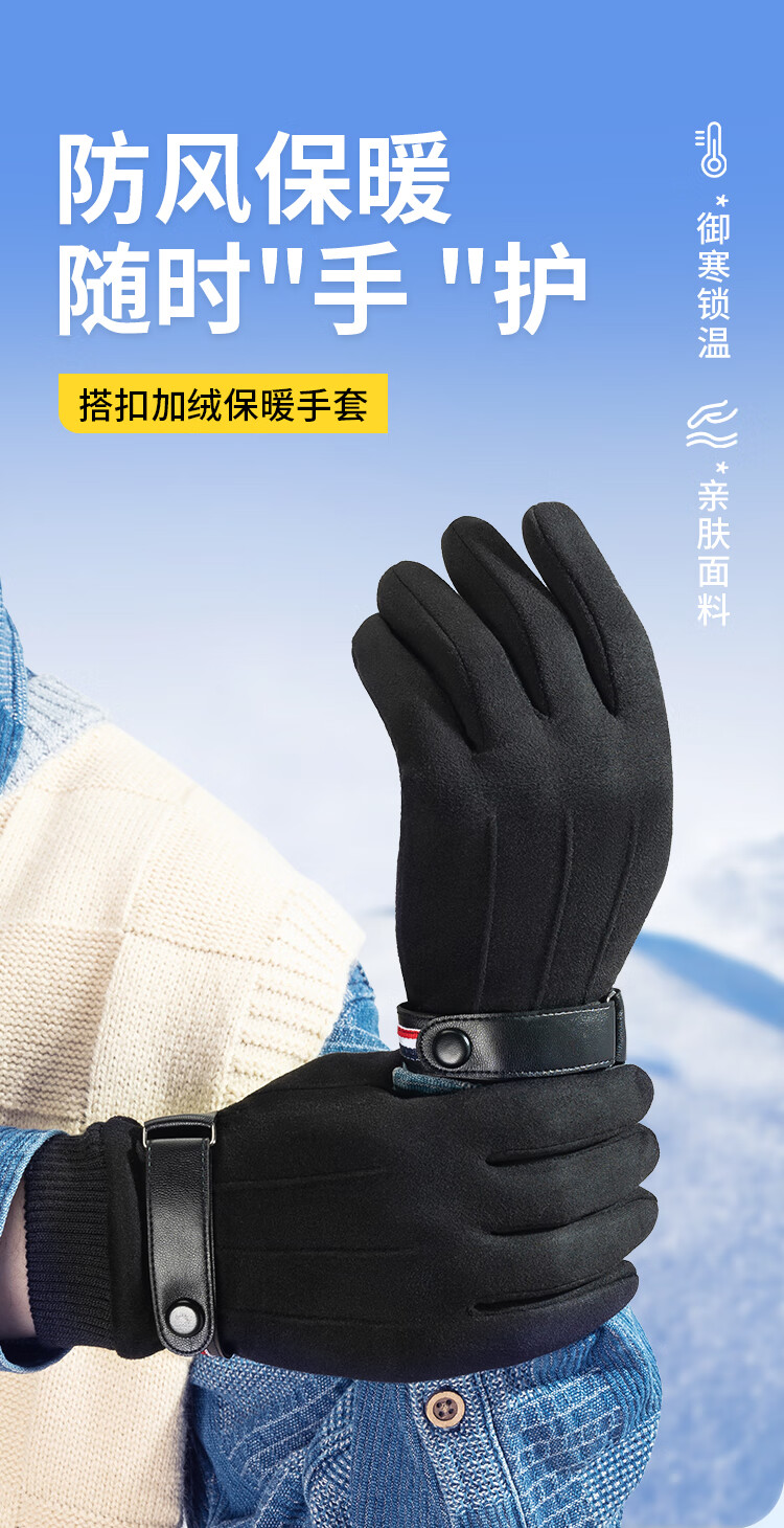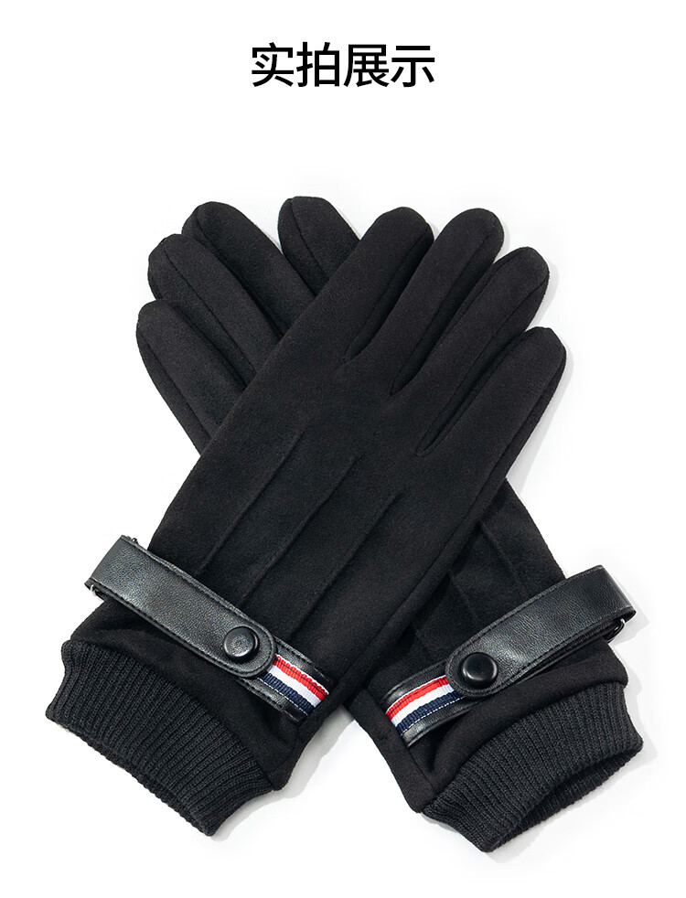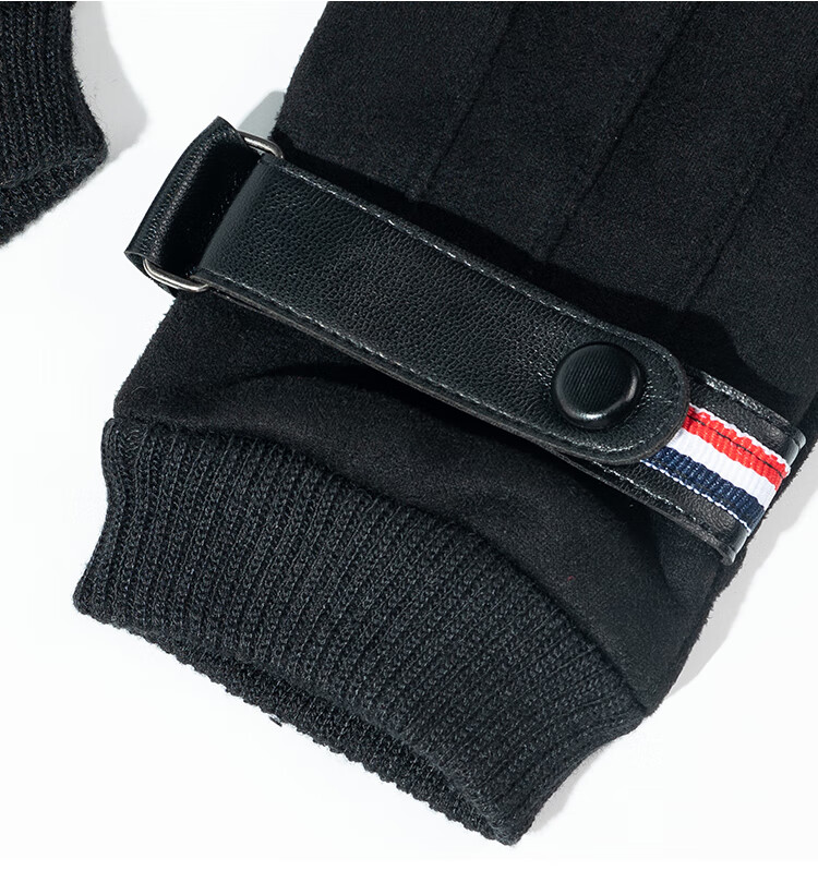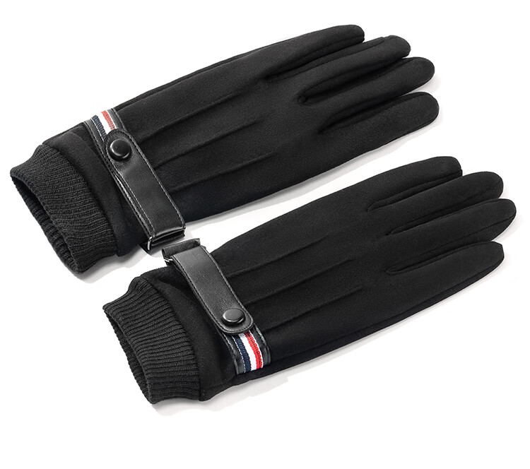 达芬奇密码 手套冬季保暖防寒秋冬加绒加厚 搭扣黑色 均码