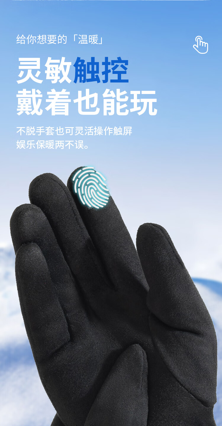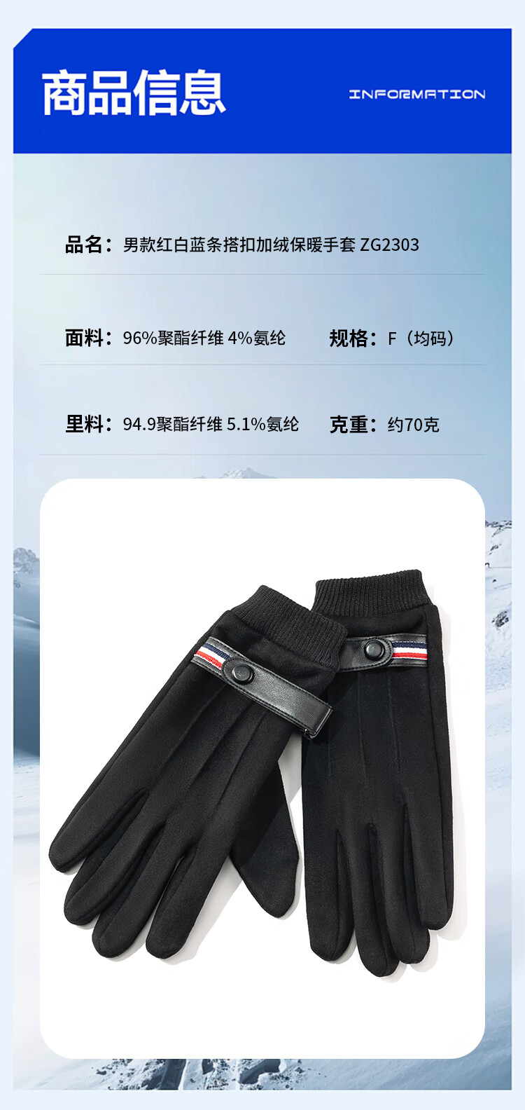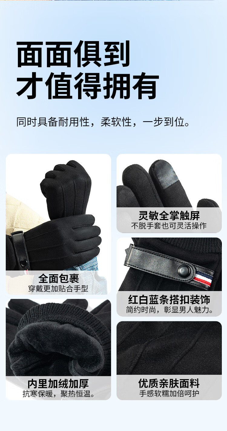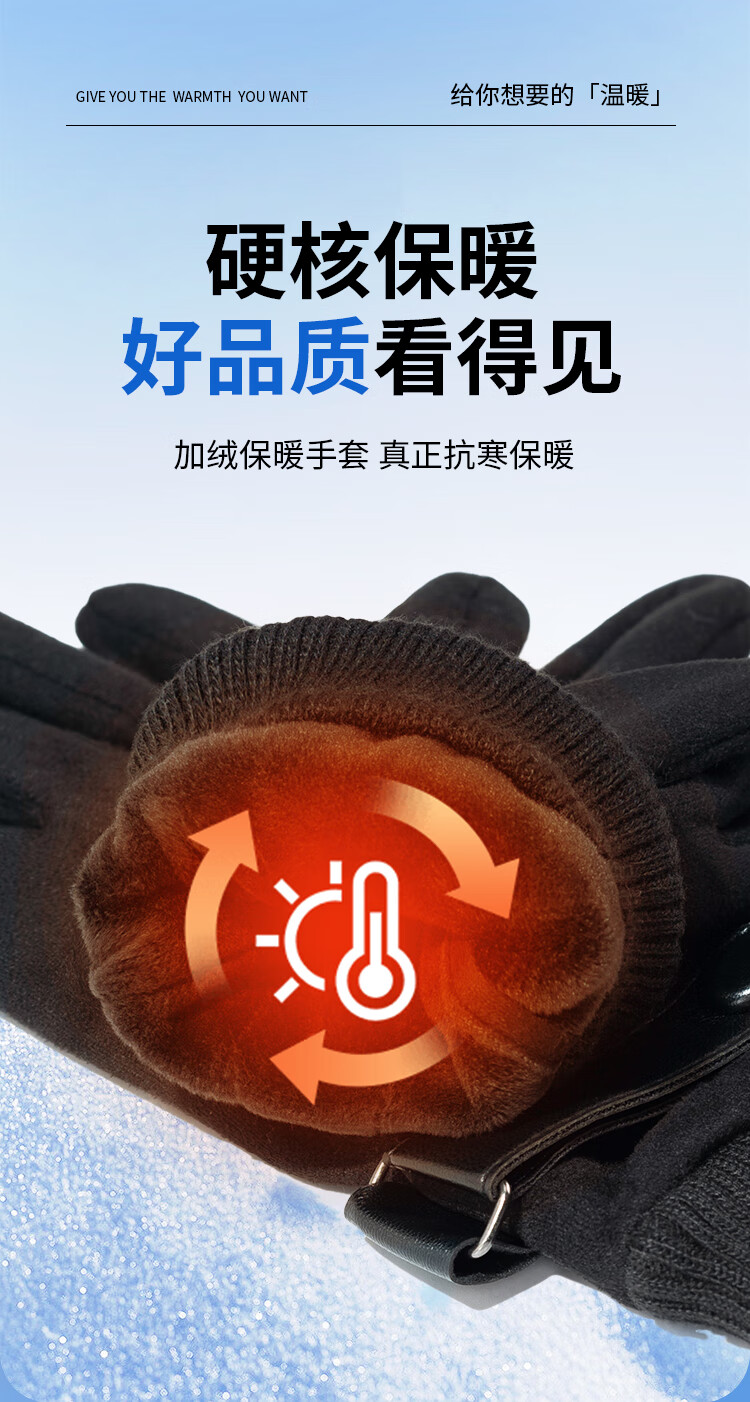 达芬奇密码 手套冬季保暖防寒秋冬加绒加厚 搭扣黑色 均码