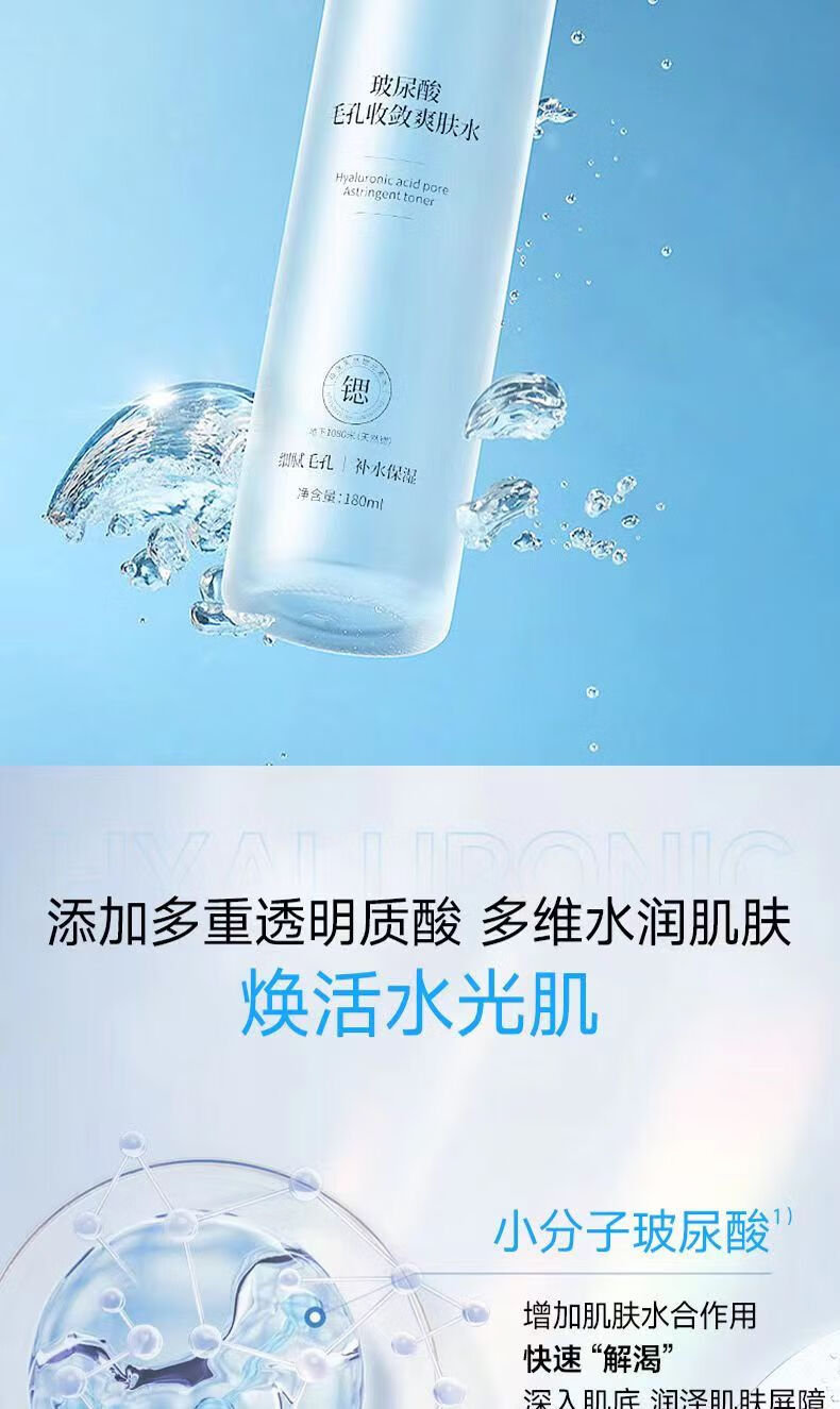 修正玻尿酸毛孔收敛爽肤水补水嫩肤毛孔粗大干燥粗糙细纹干纹180ml/瓶 1瓶【毛孔收敛爽肤水】 180ml/瓶