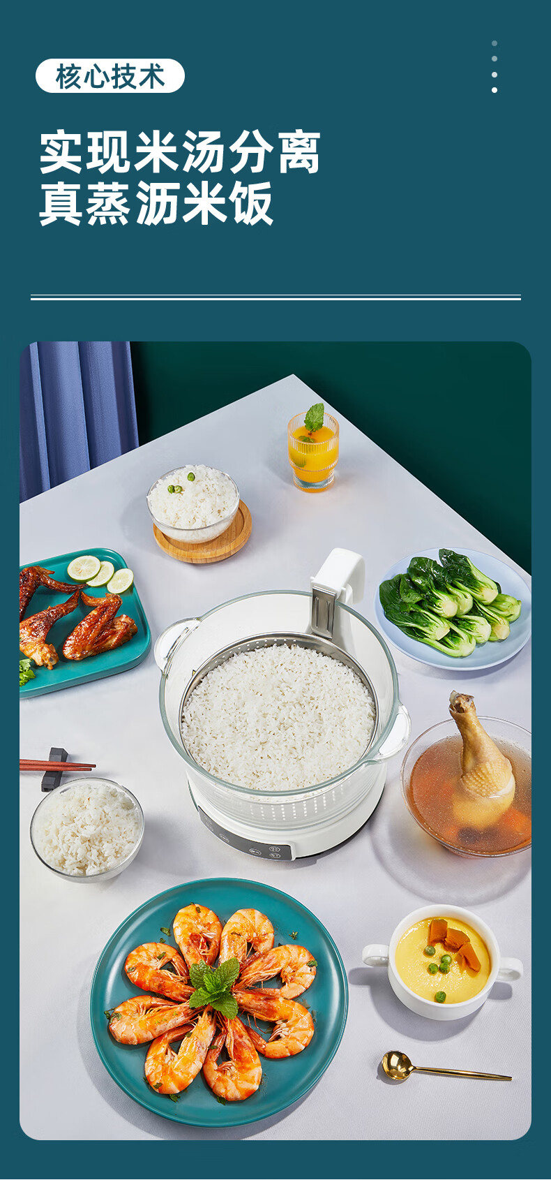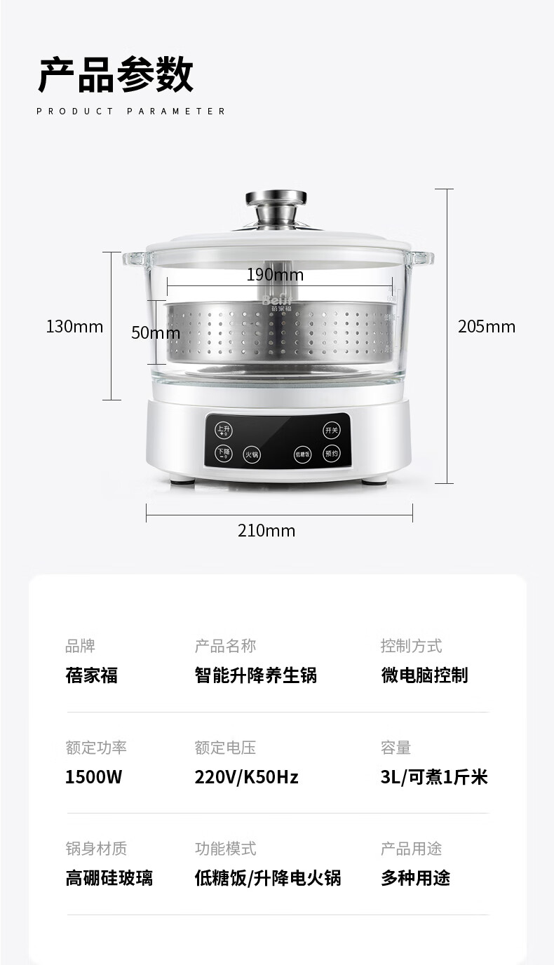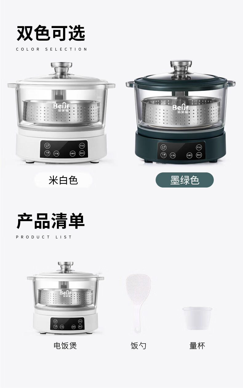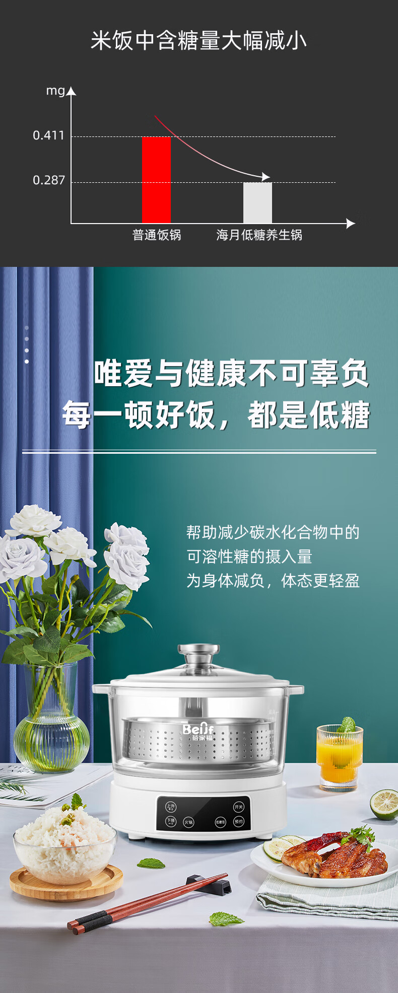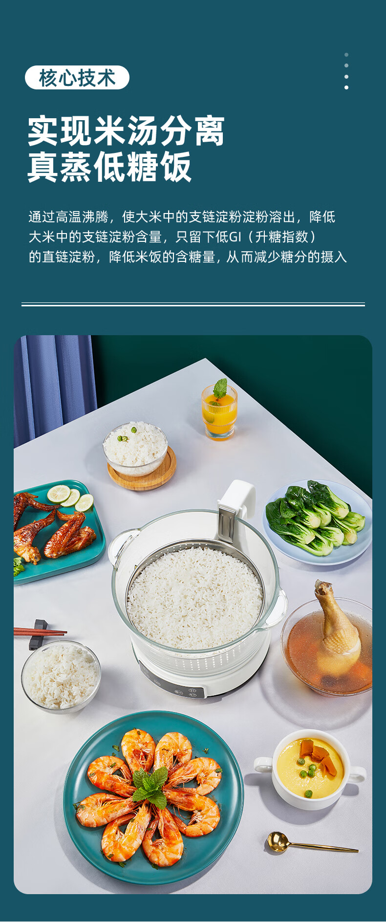 蓓家福蓓家福低糖电饭煲全自动升降式米汤分离智能预约多功能沥米饭锅过滤糖分蒸饭器 3L白色【可煮1斤低糖大米】(侧面升降) 3L