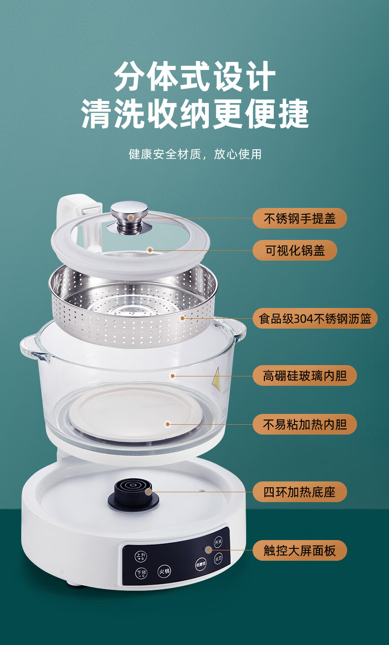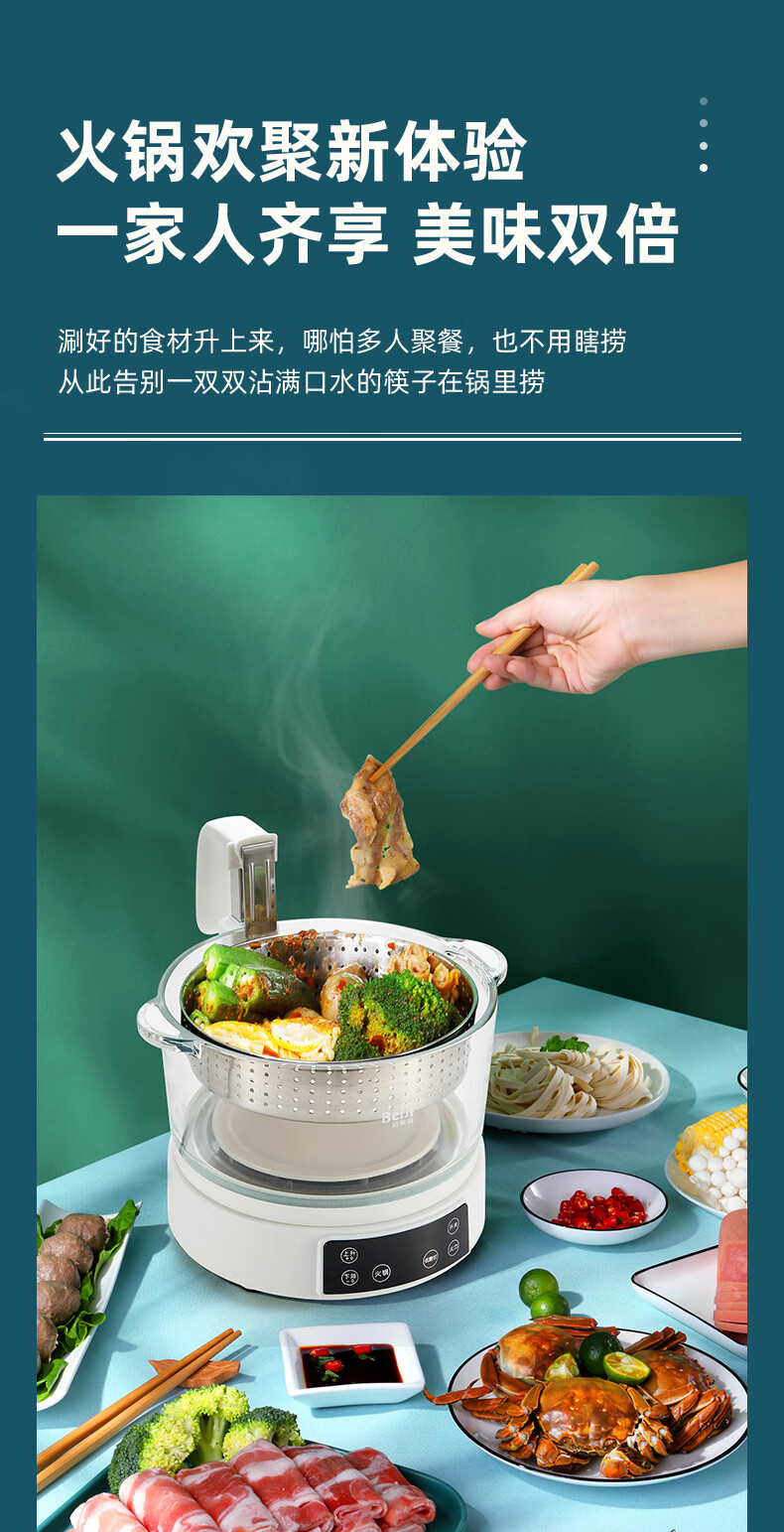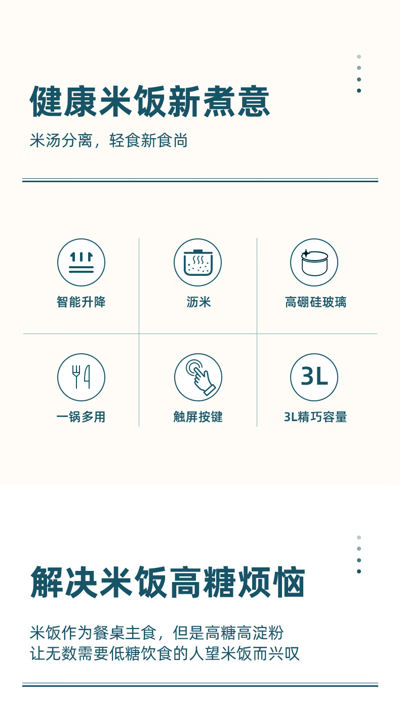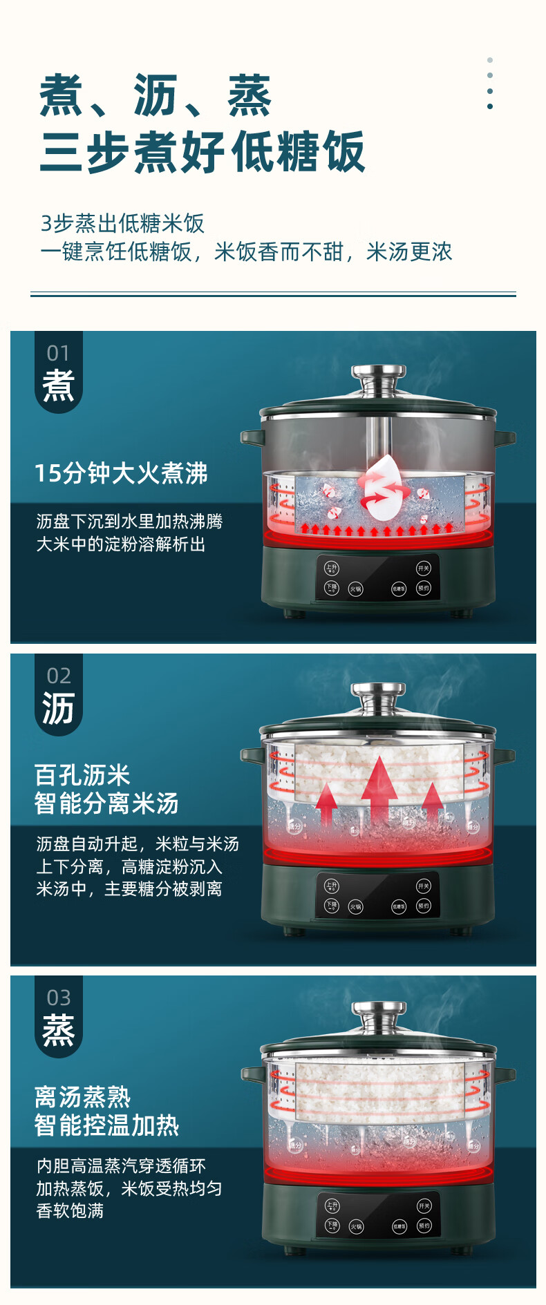 蓓家福蓓家福低糖电饭煲全自动升降式米汤分离智能预约多功能沥米饭锅过滤糖分蒸饭器 3L白色【可煮1斤低糖大米】(侧面升降) 3L