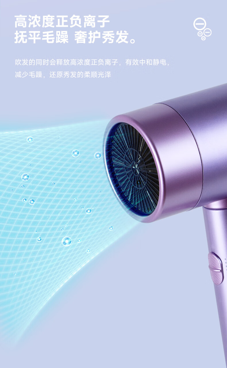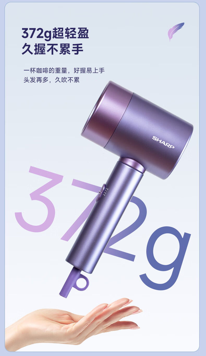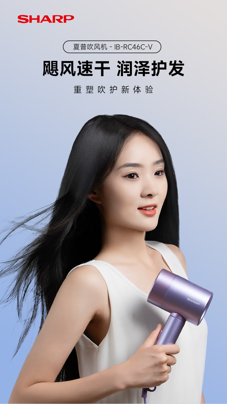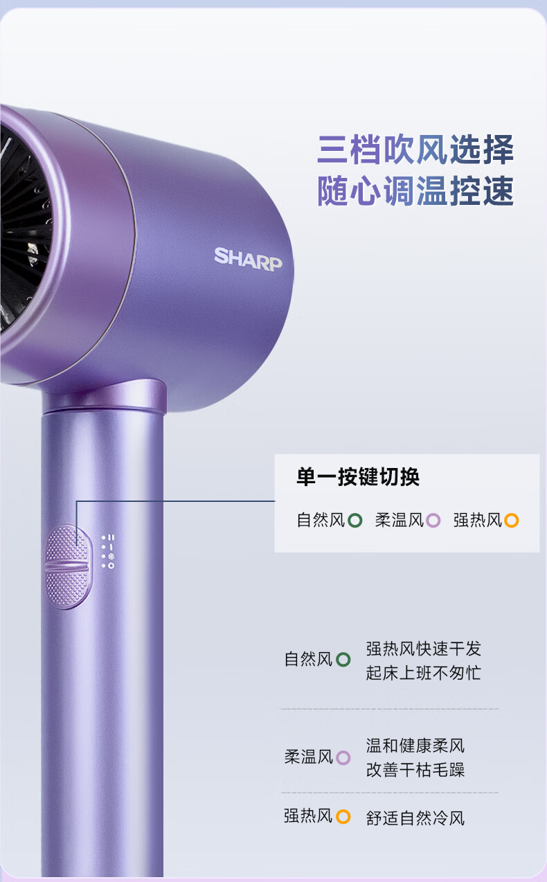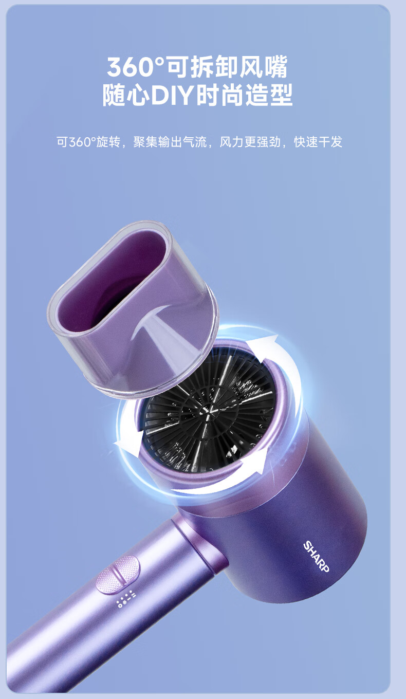 夏普(SHARP) 家用吹风机 高速电吹风低噪音负离子大风力智能温控护发低音大功率速干电吹风学生 IB-RC46C-P