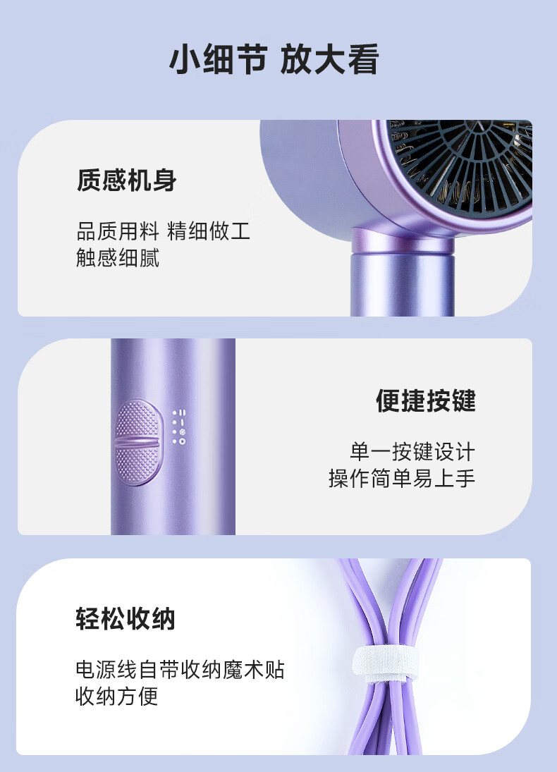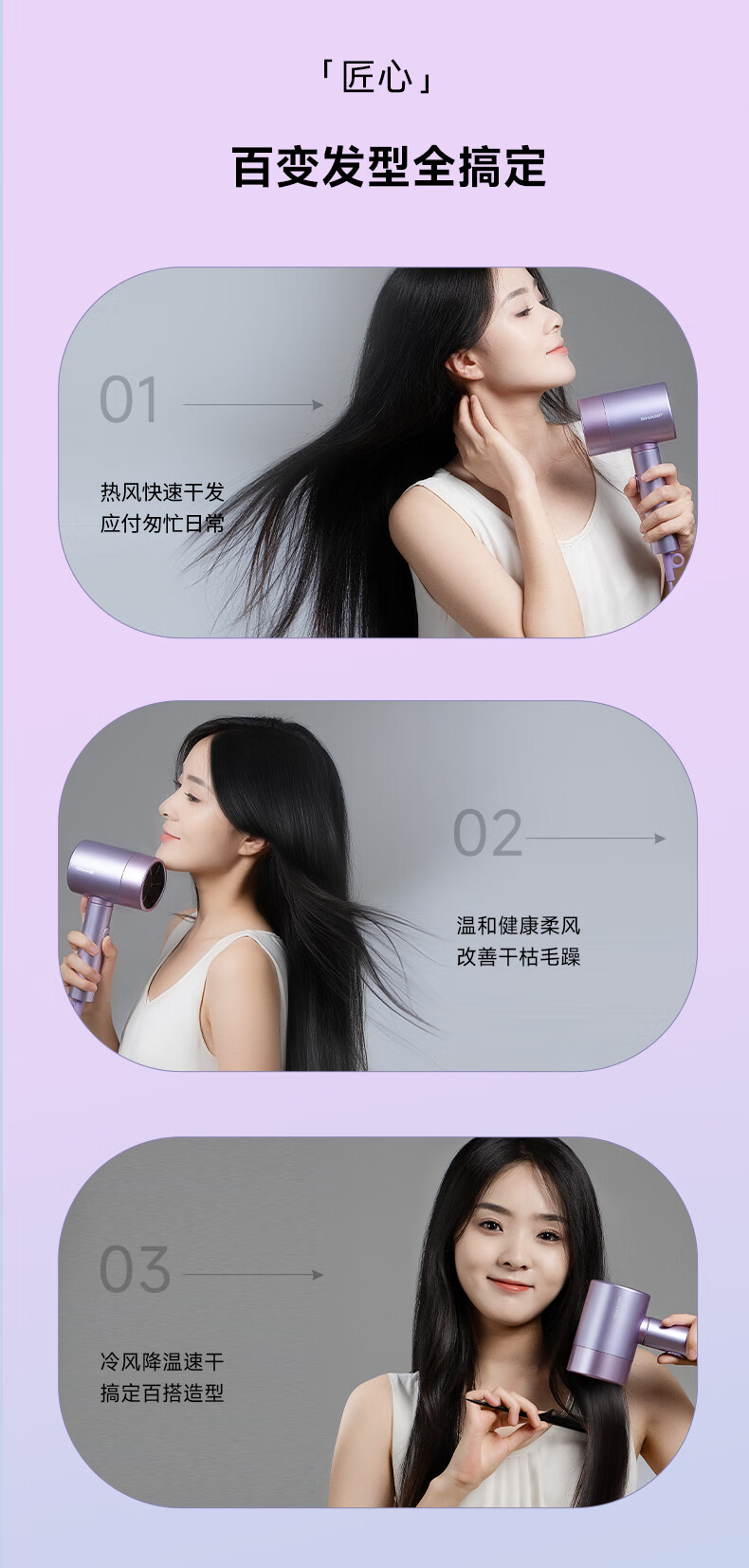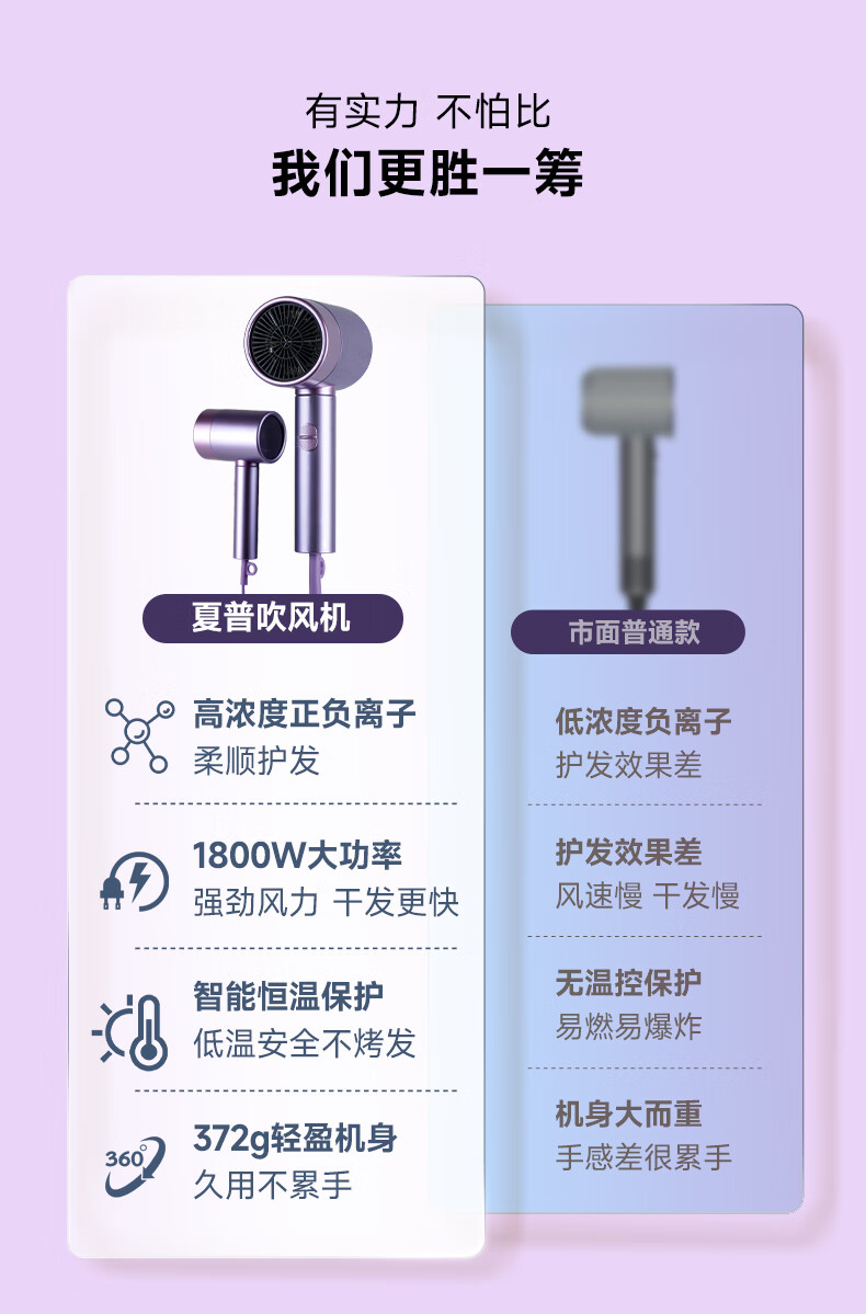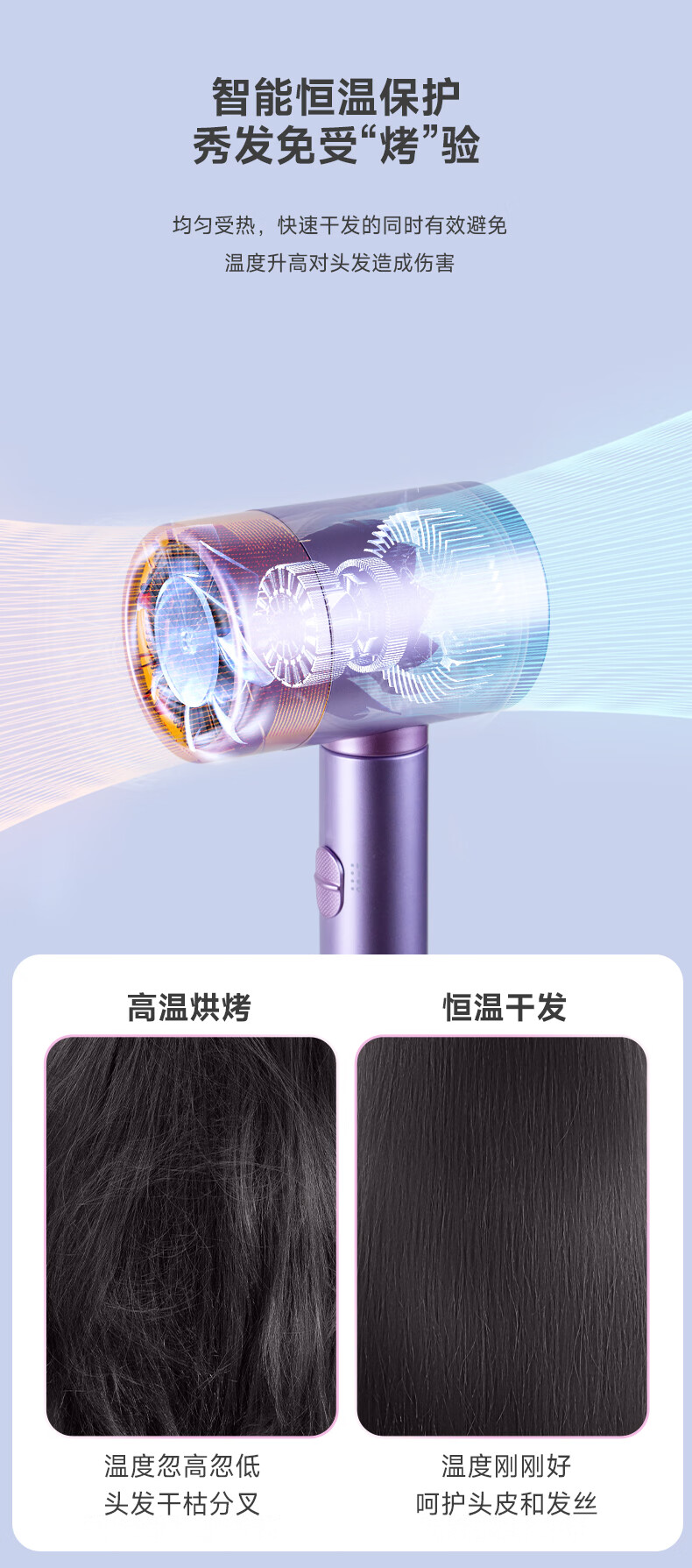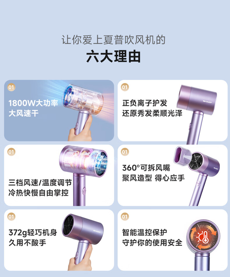 夏普(SHARP) 家用吹风机 高速电吹风低噪音负离子大风力智能温控护发低音大功率速干电吹风学生 IB-RC46C-P
