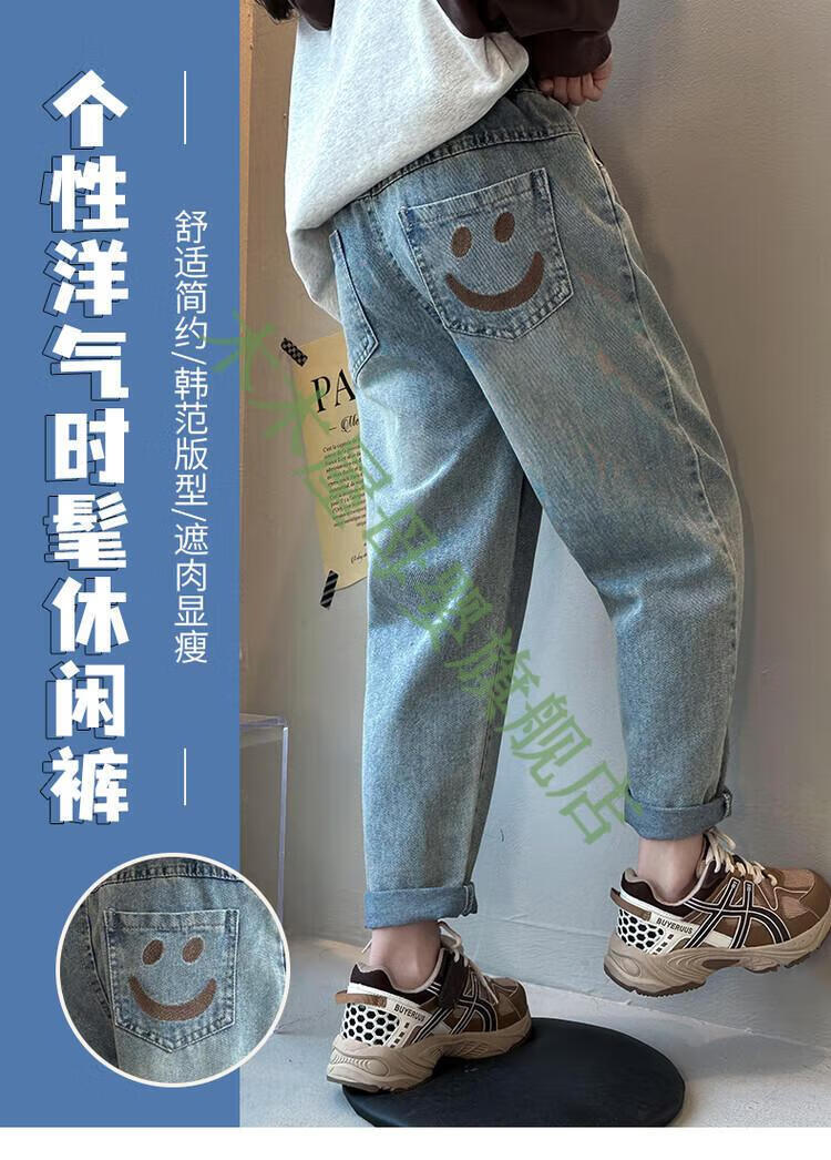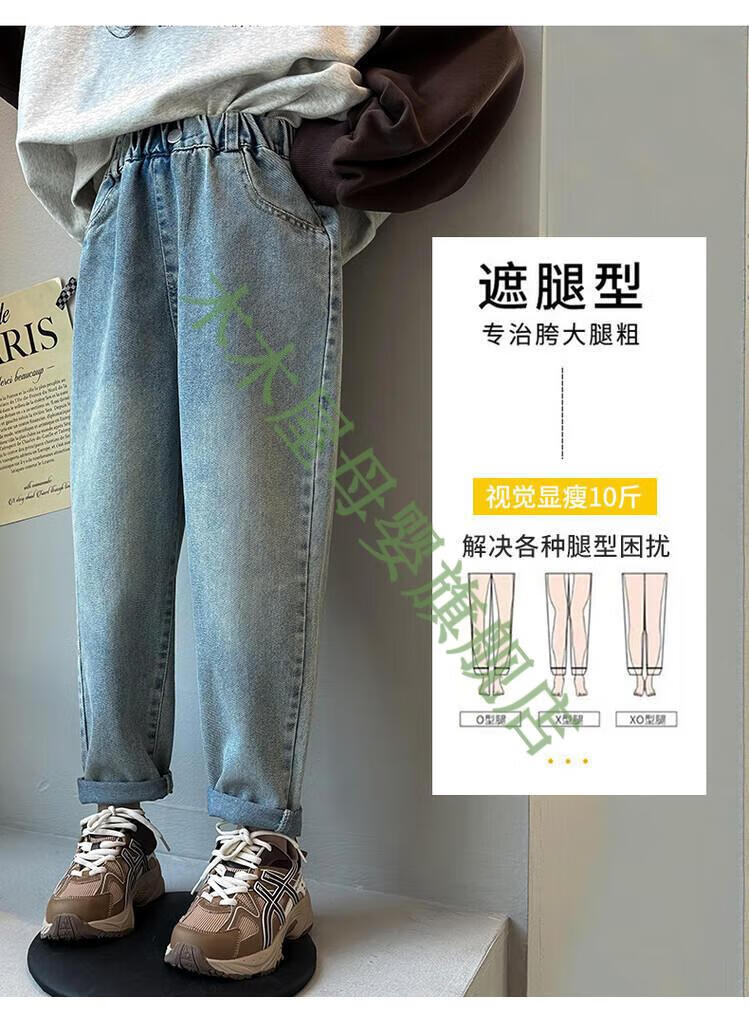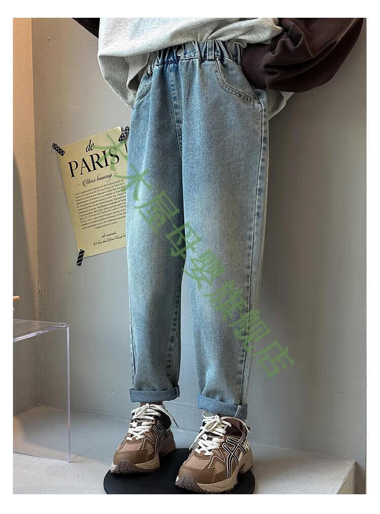 木木屋女童牛仔裤春秋炸街2025夏季儿童老爹裤宽松哈伦裤中大童洋气长裤 浅蓝色 130 建议7~8岁【120-130】cm
