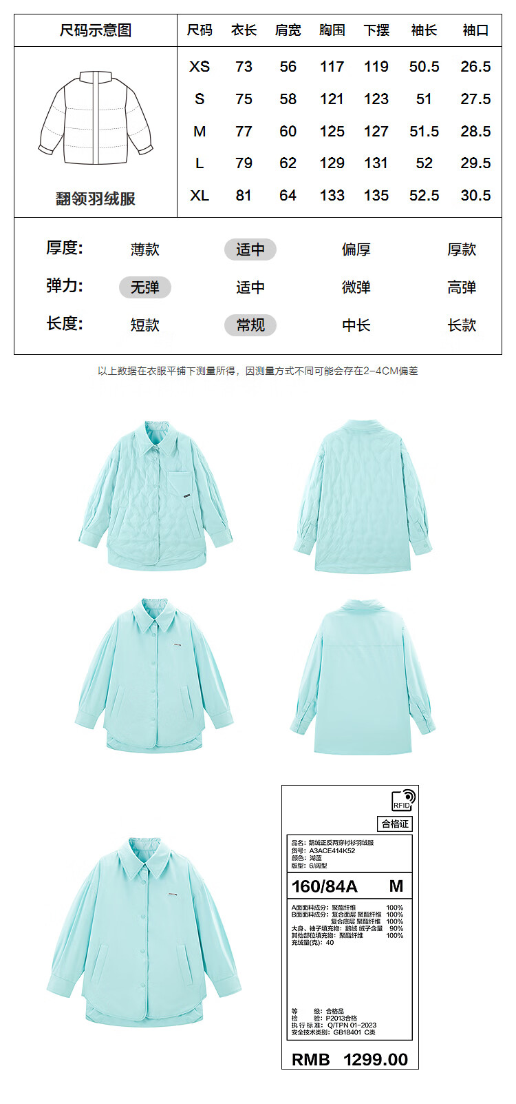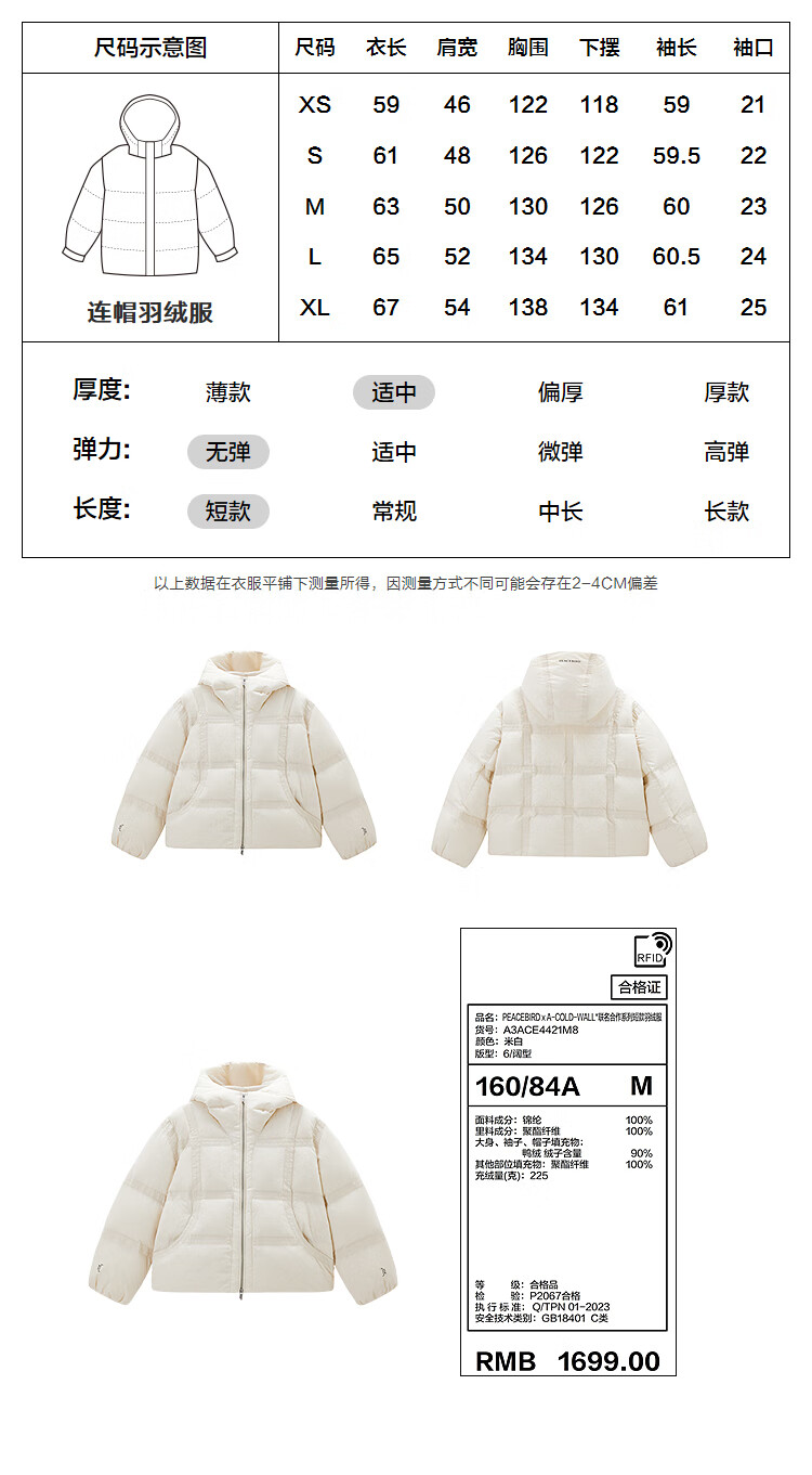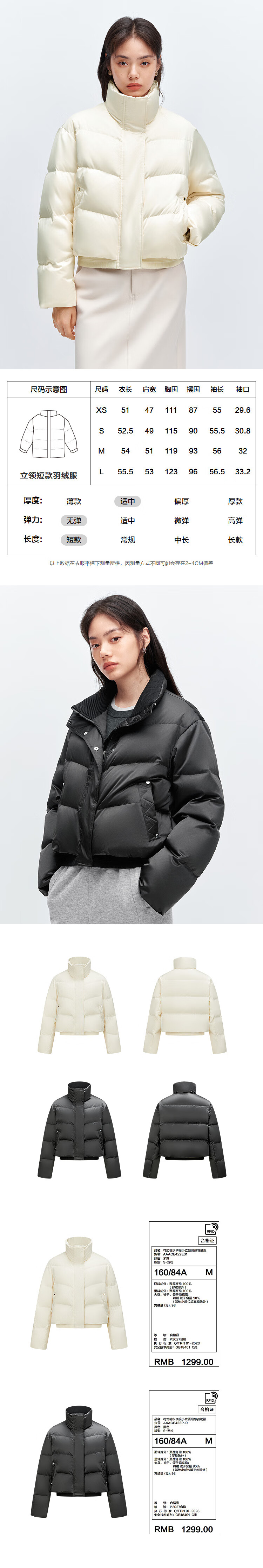 太平鸟女装轻羽绒合集反季清仓白鸭绒羽绒服简约时尚短款中长款 米黄拼接小立领缎感羽绒服 XS