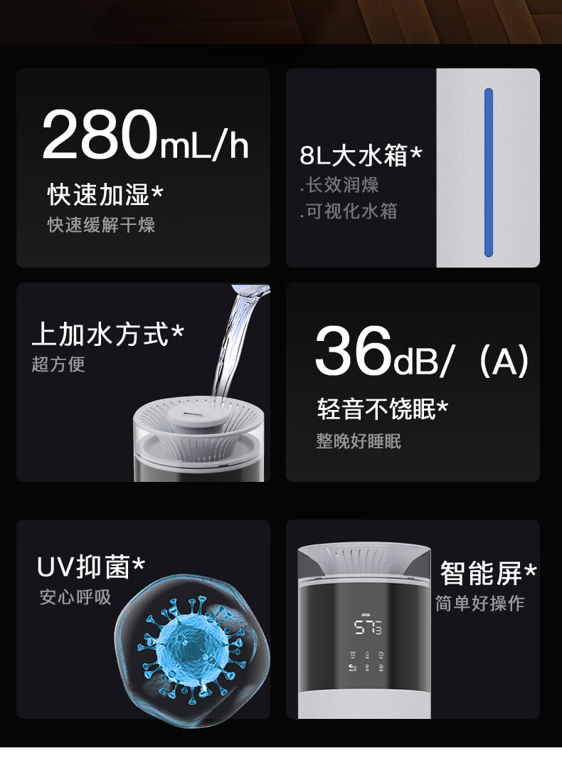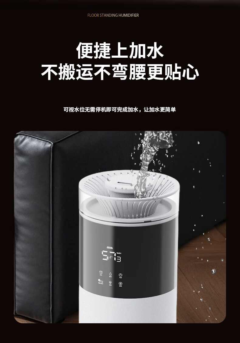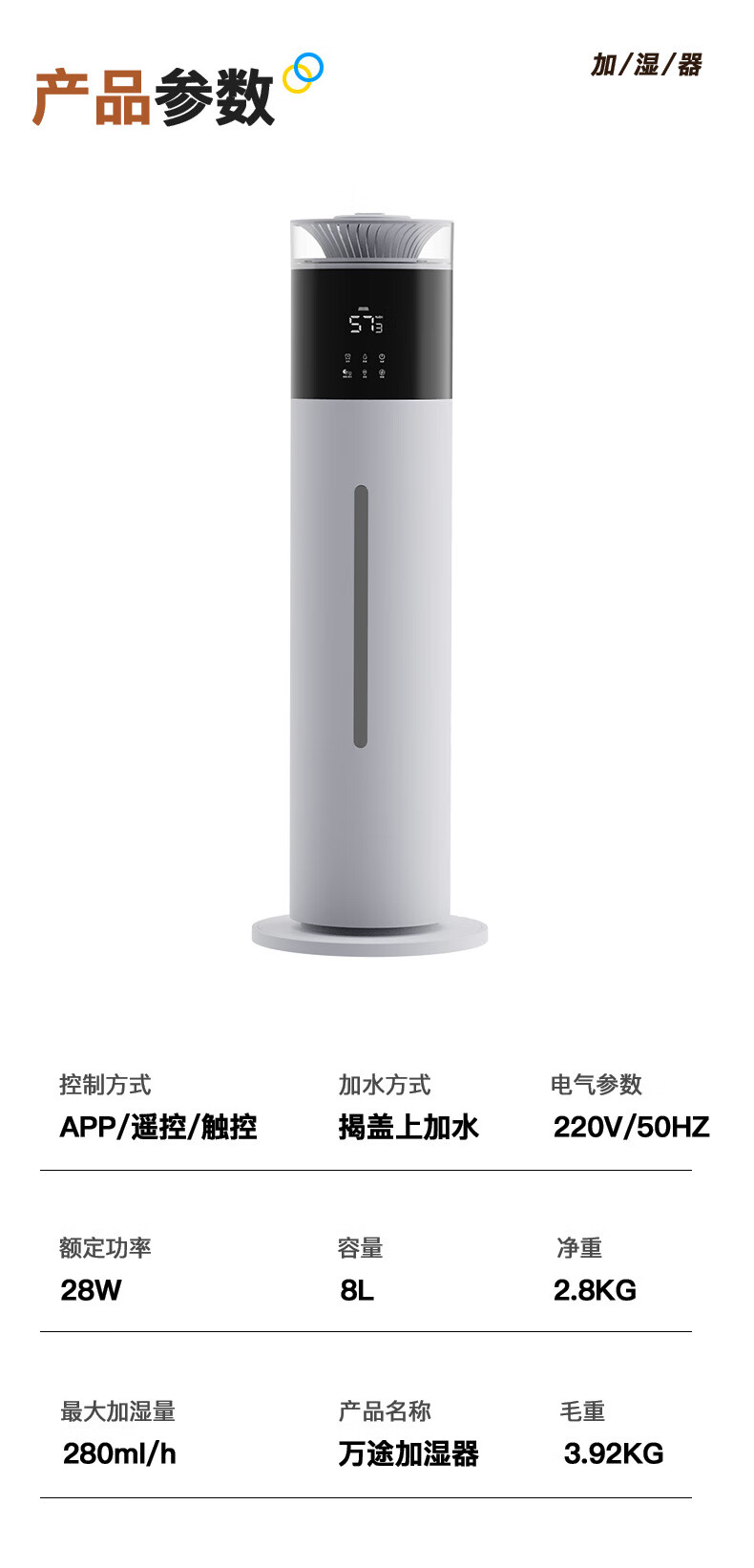 万途(WANTU)空气加湿器大容量家用客厅卧室办公室落地式上加水大雾量uv除菌智能恒湿婴儿孕妇可用空调房增湿 2502智能WIFI款8L【智能恒湿+缺水保护】