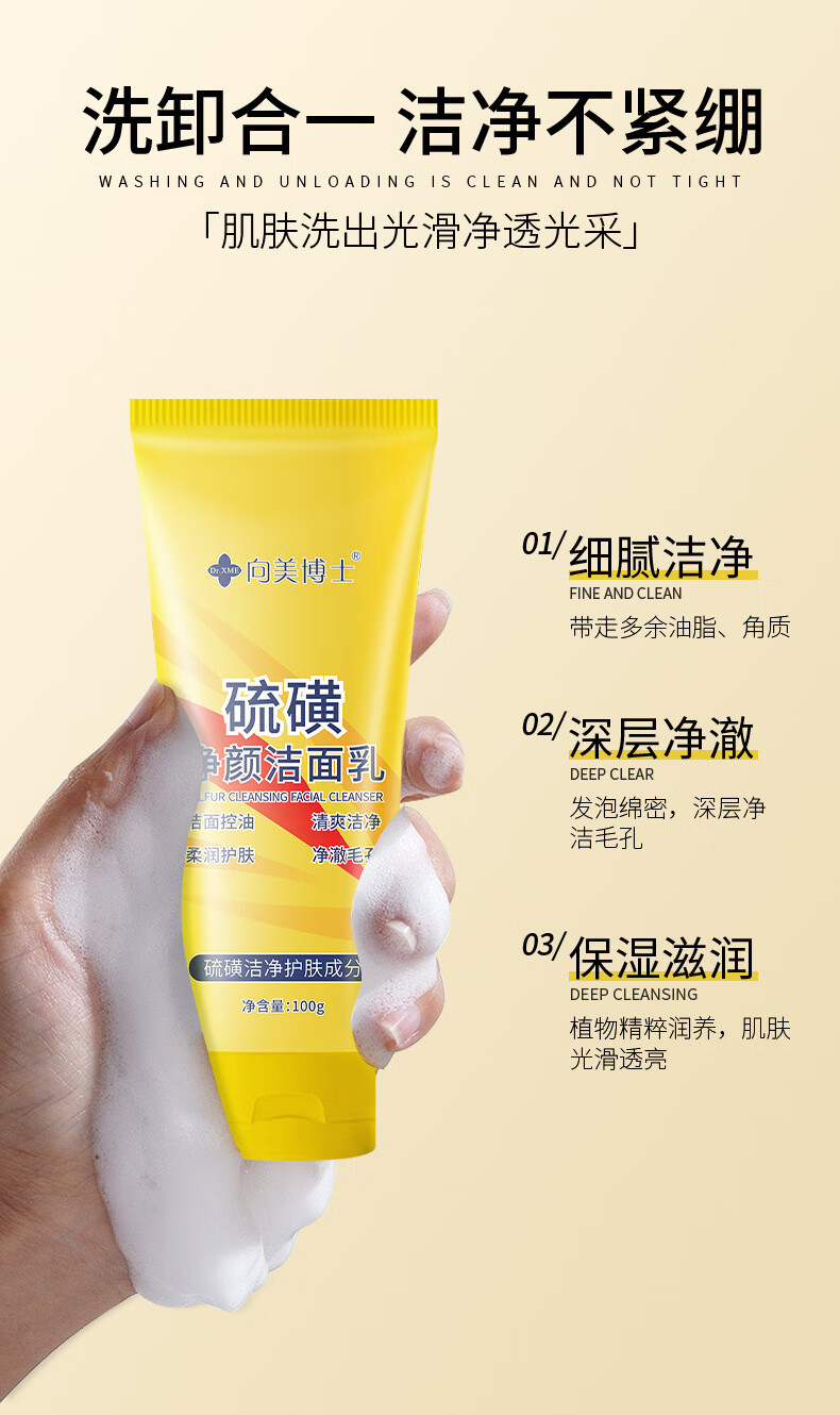 硫磺洗面奶保湿洁面乳男女士专用补水清洁毛孔 硫磺洗面奶 100ml