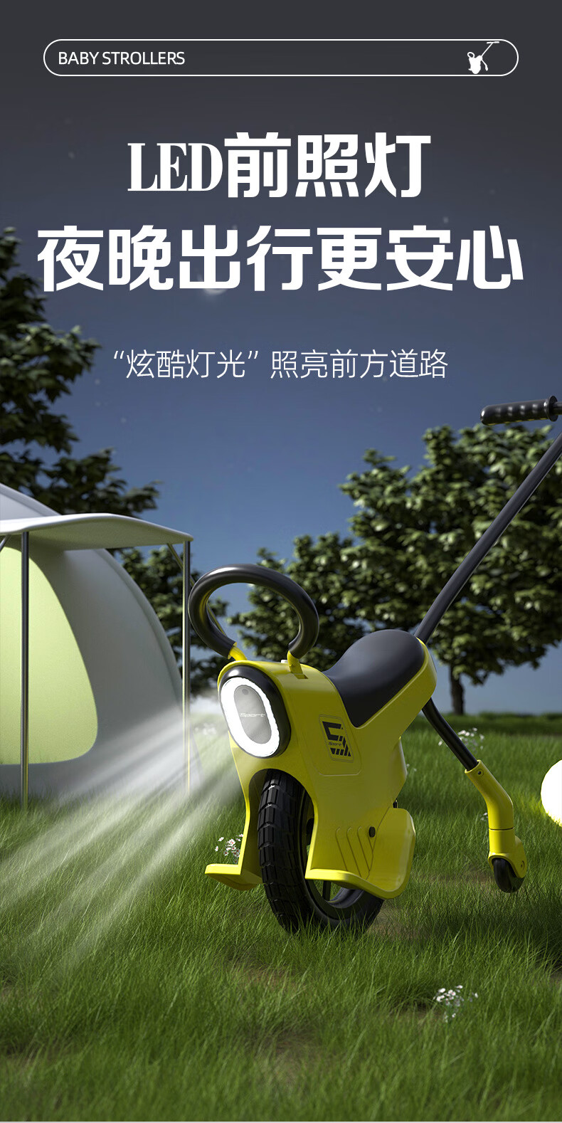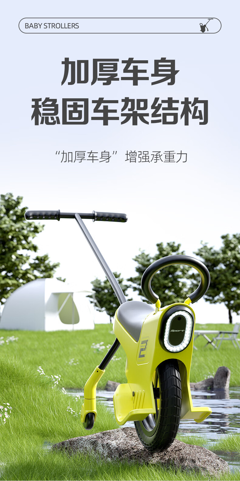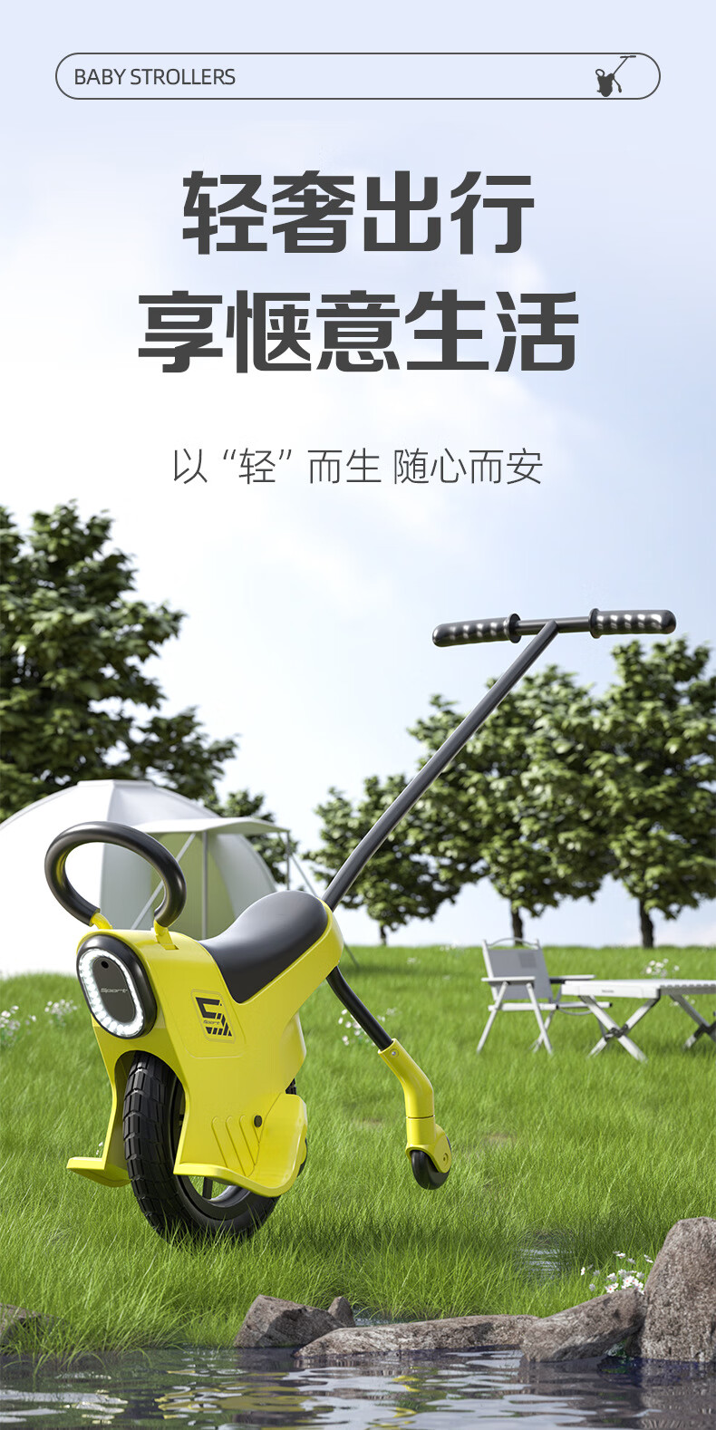 松鼠宝贝亲子独轮车遛娃神器轻便手推车玩具车儿童独轮车便携手推车 黄色 12寸+打气筒