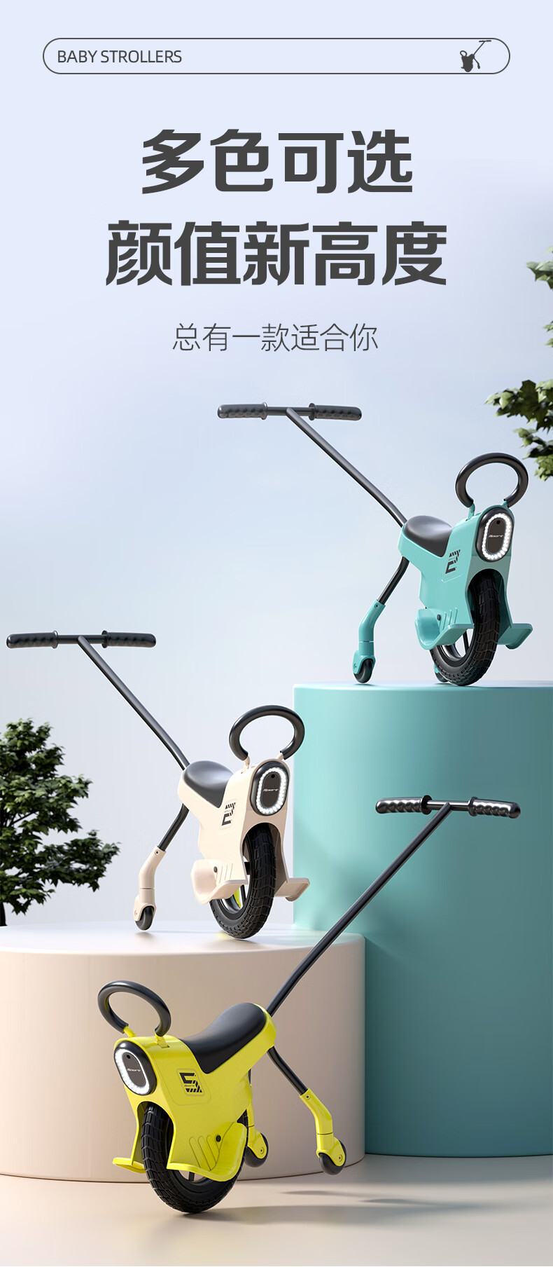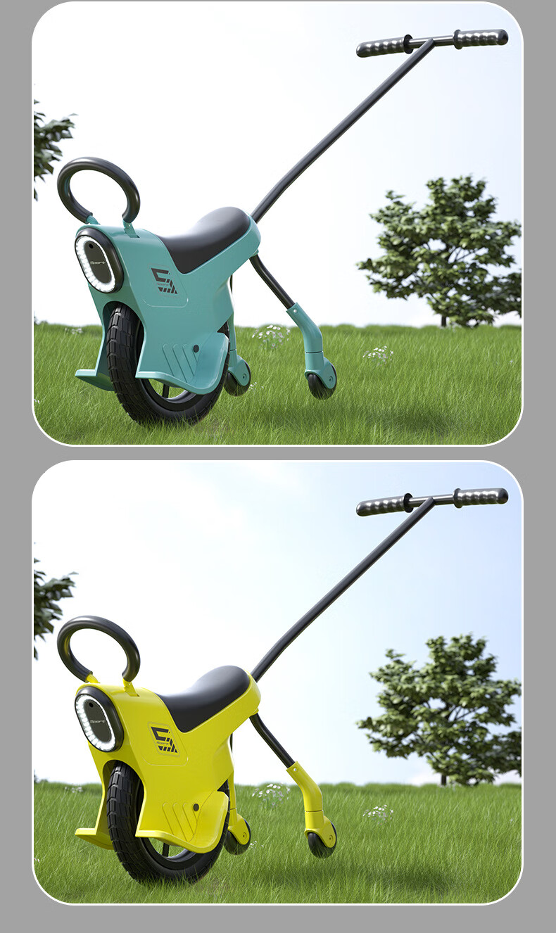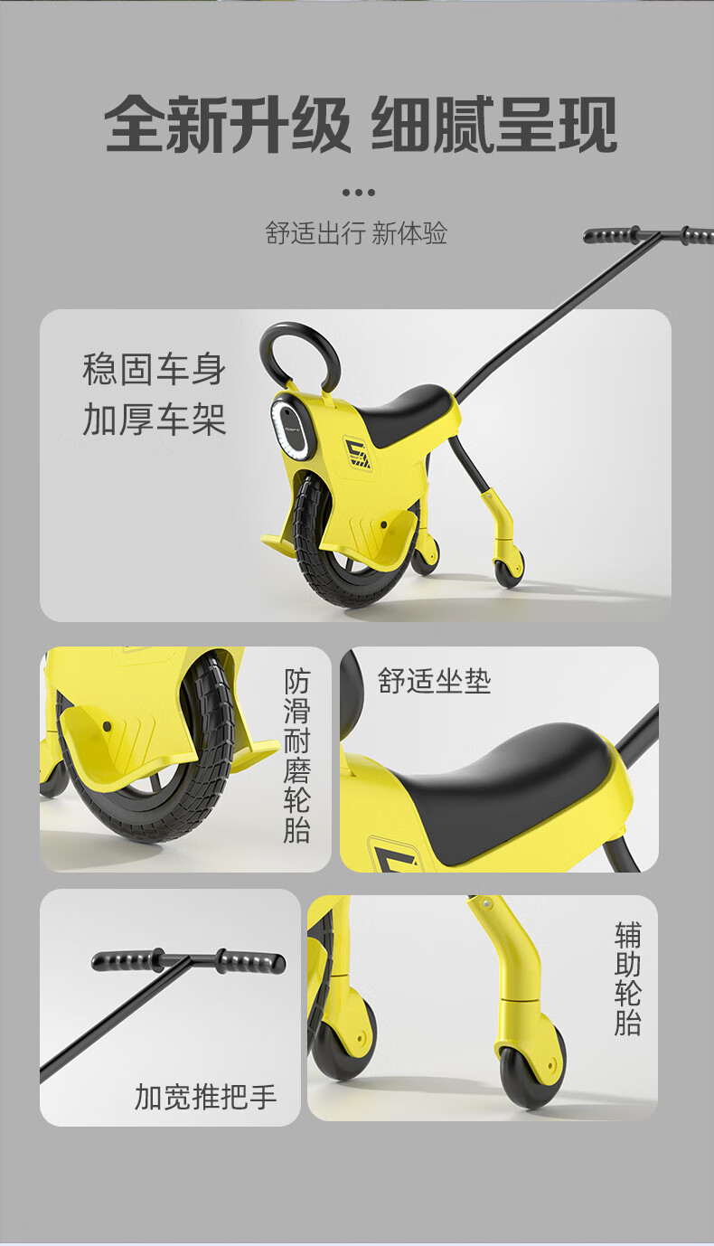 松鼠宝贝亲子独轮车遛娃神器轻便手推车玩具车儿童独轮车便携手推车 黄色 12寸+打气筒
