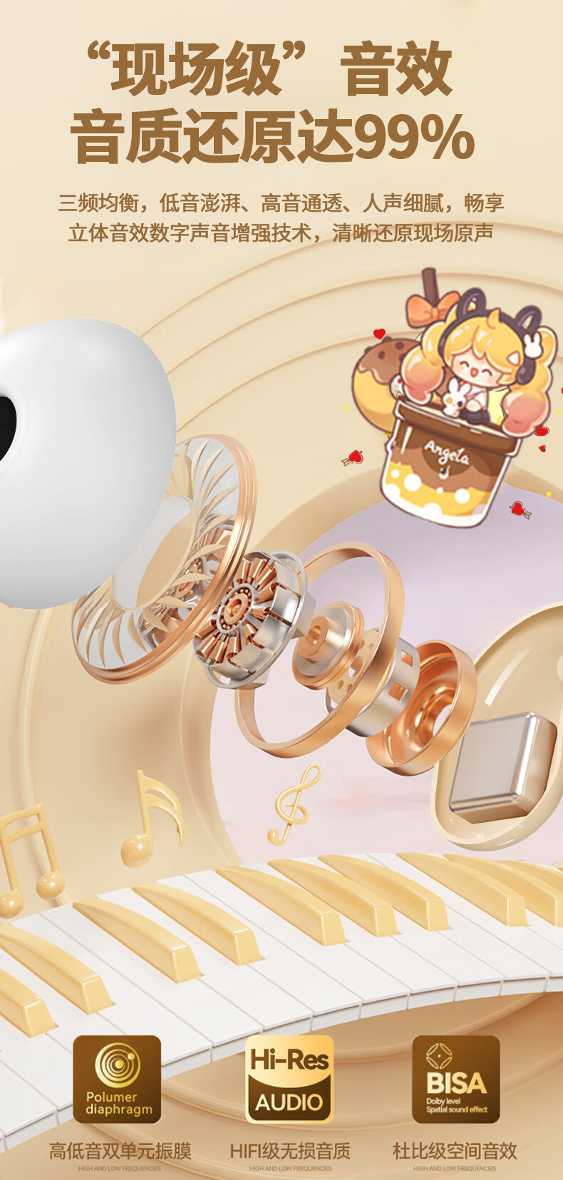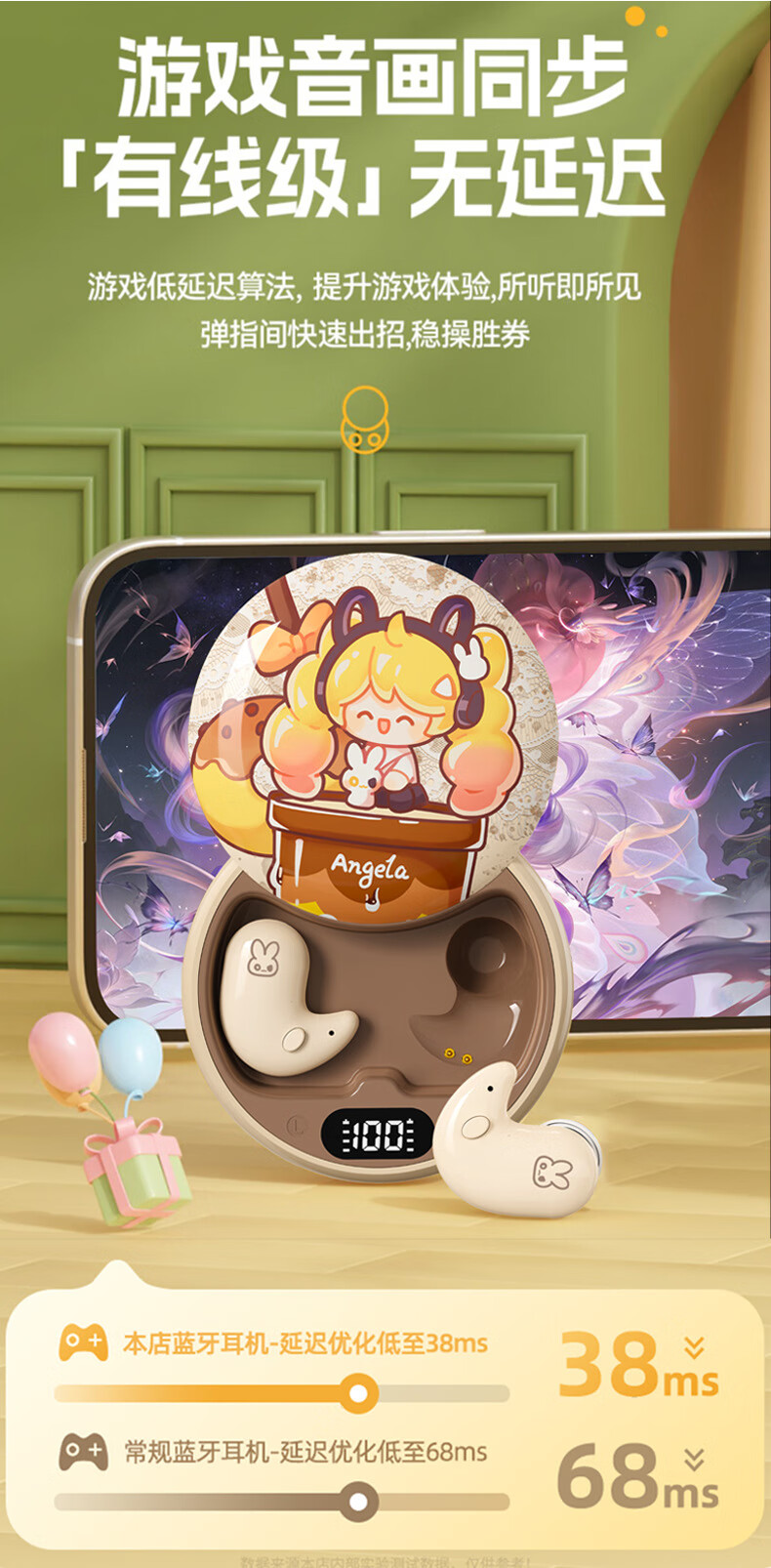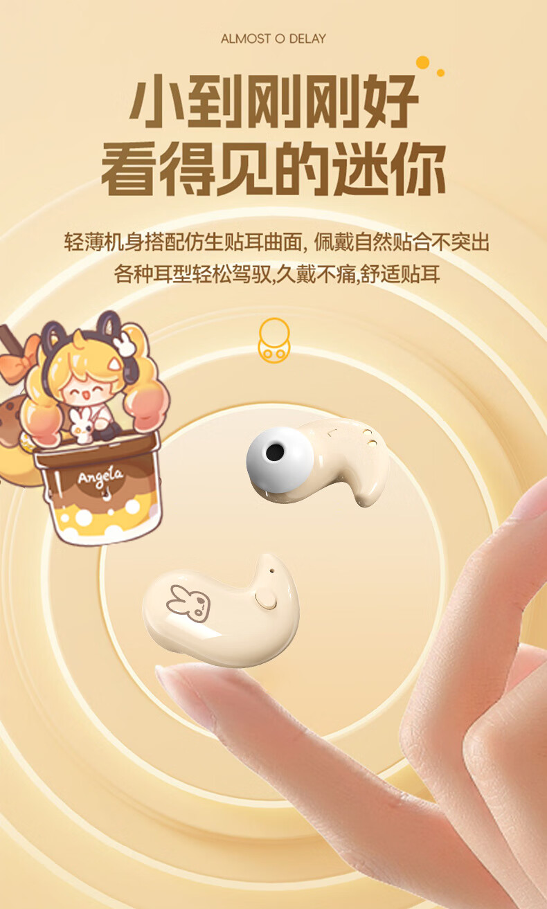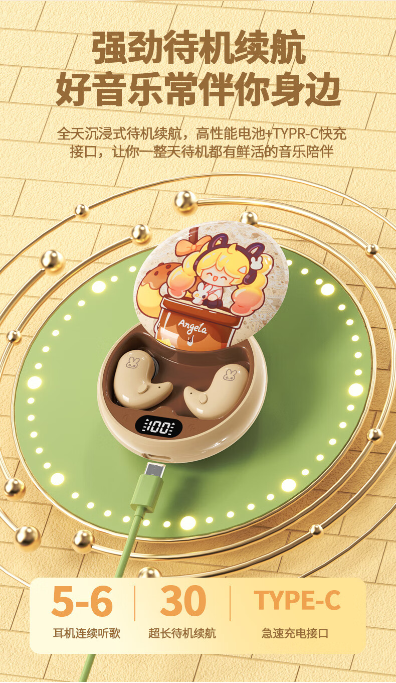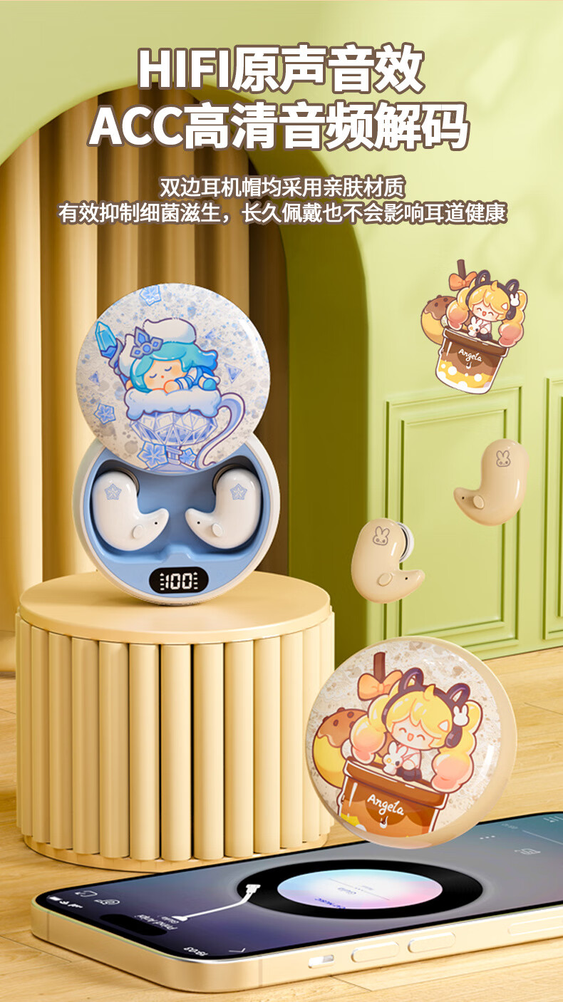 王者荣耀无线专业睡眠耳机入耳式蓝牙5.4HIFI音质降噪侧睡不压耳超长续航 黄色安琪拉【AI降噪+语音助手+低延迟】