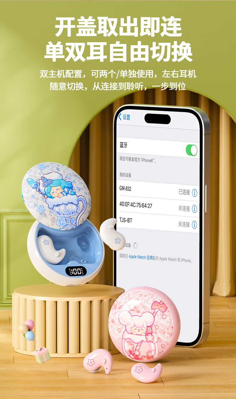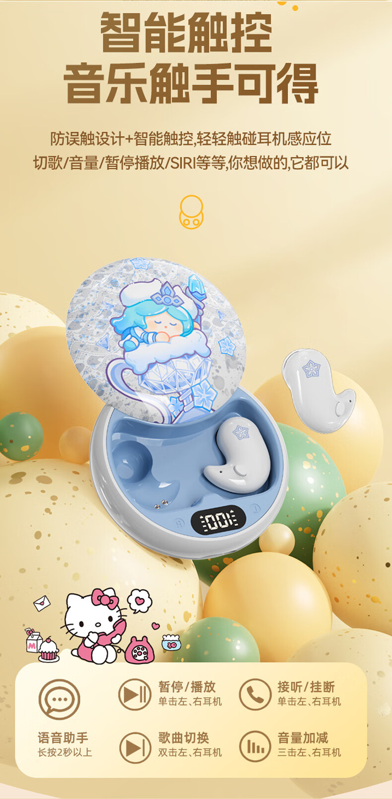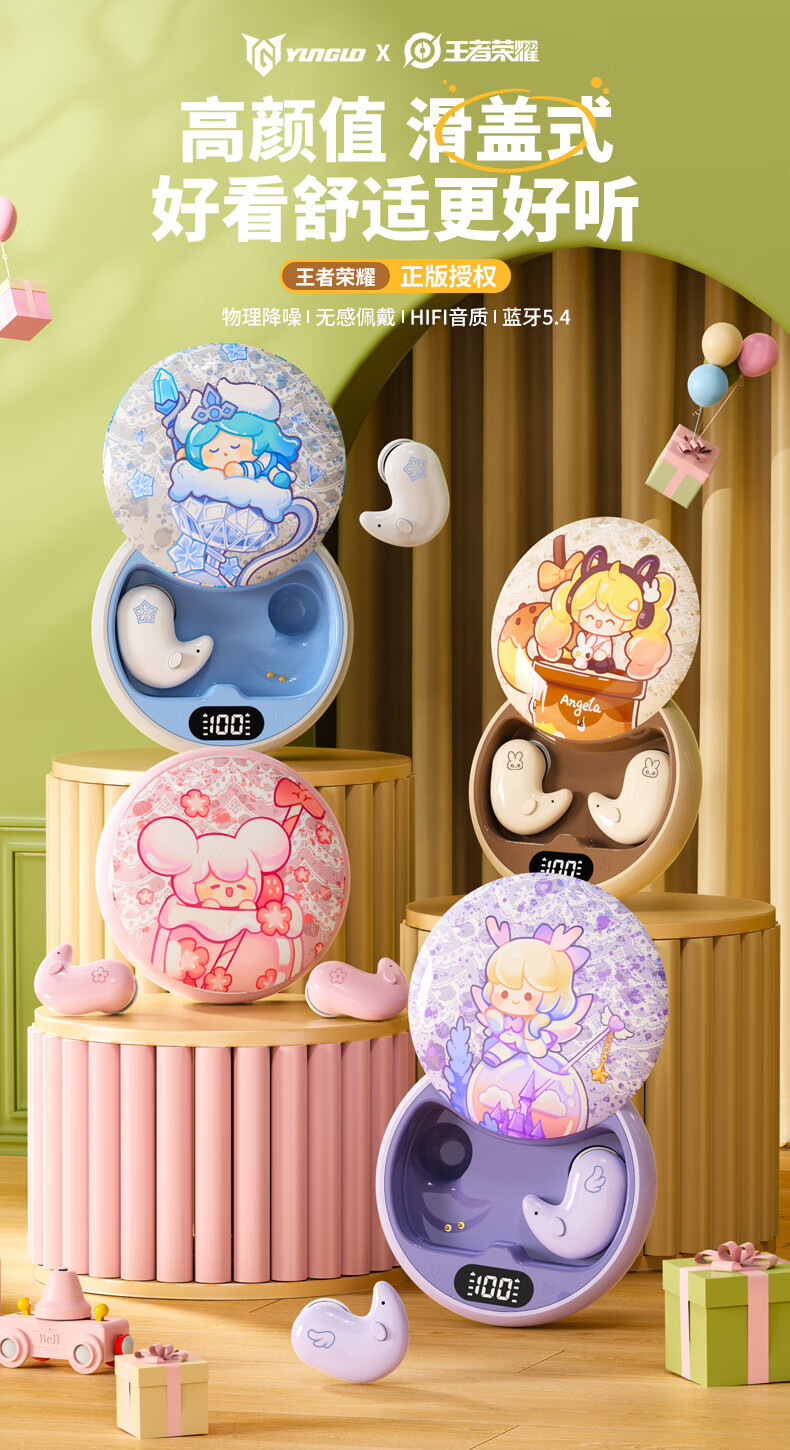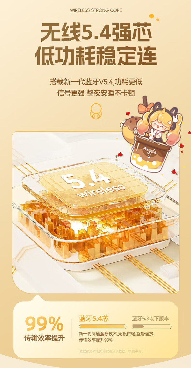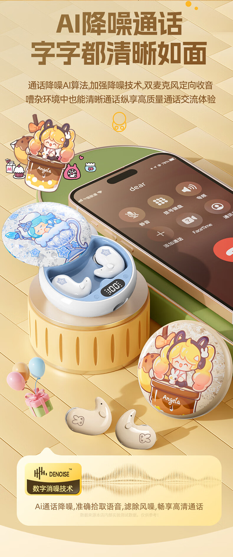 王者荣耀无线专业睡眠耳机入耳式蓝牙5.4HIFI音质降噪侧睡不压耳超长续航 黄色安琪拉【AI降噪+语音助手+低延迟】