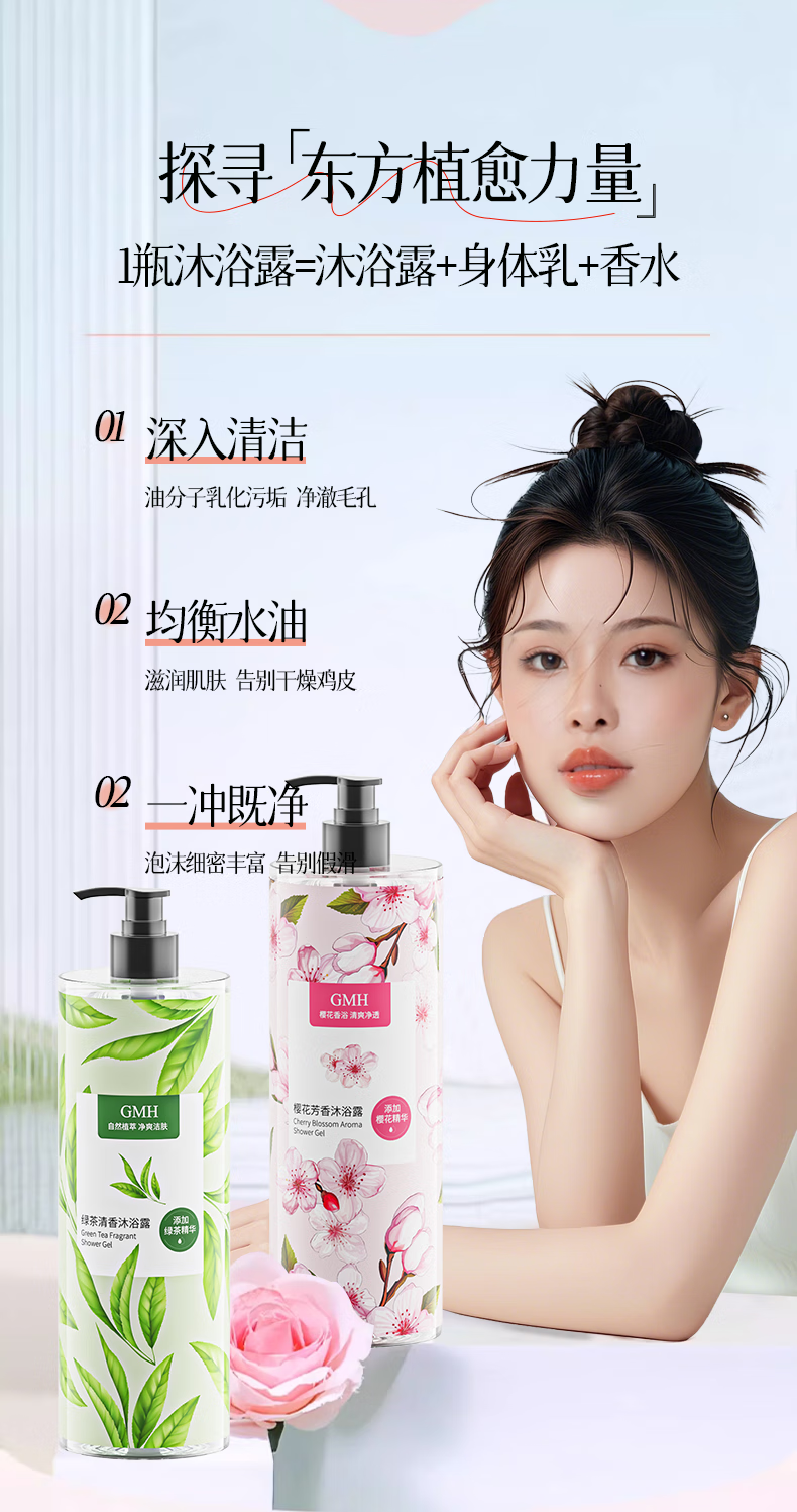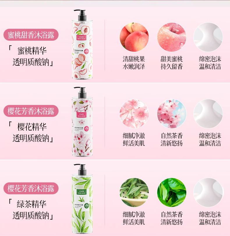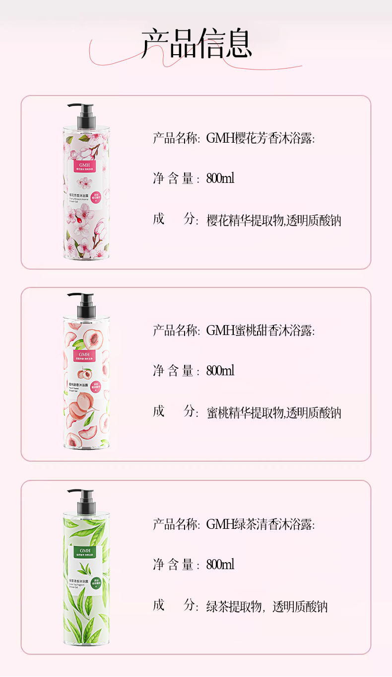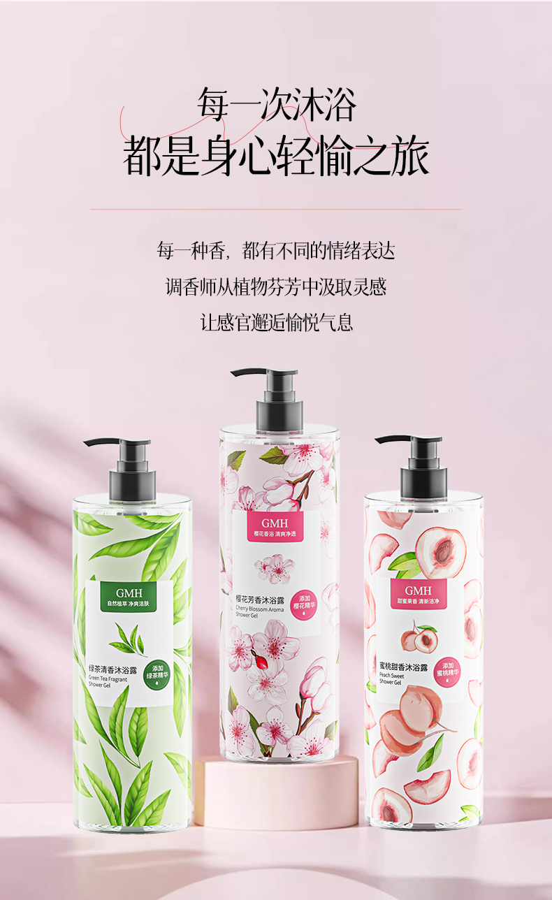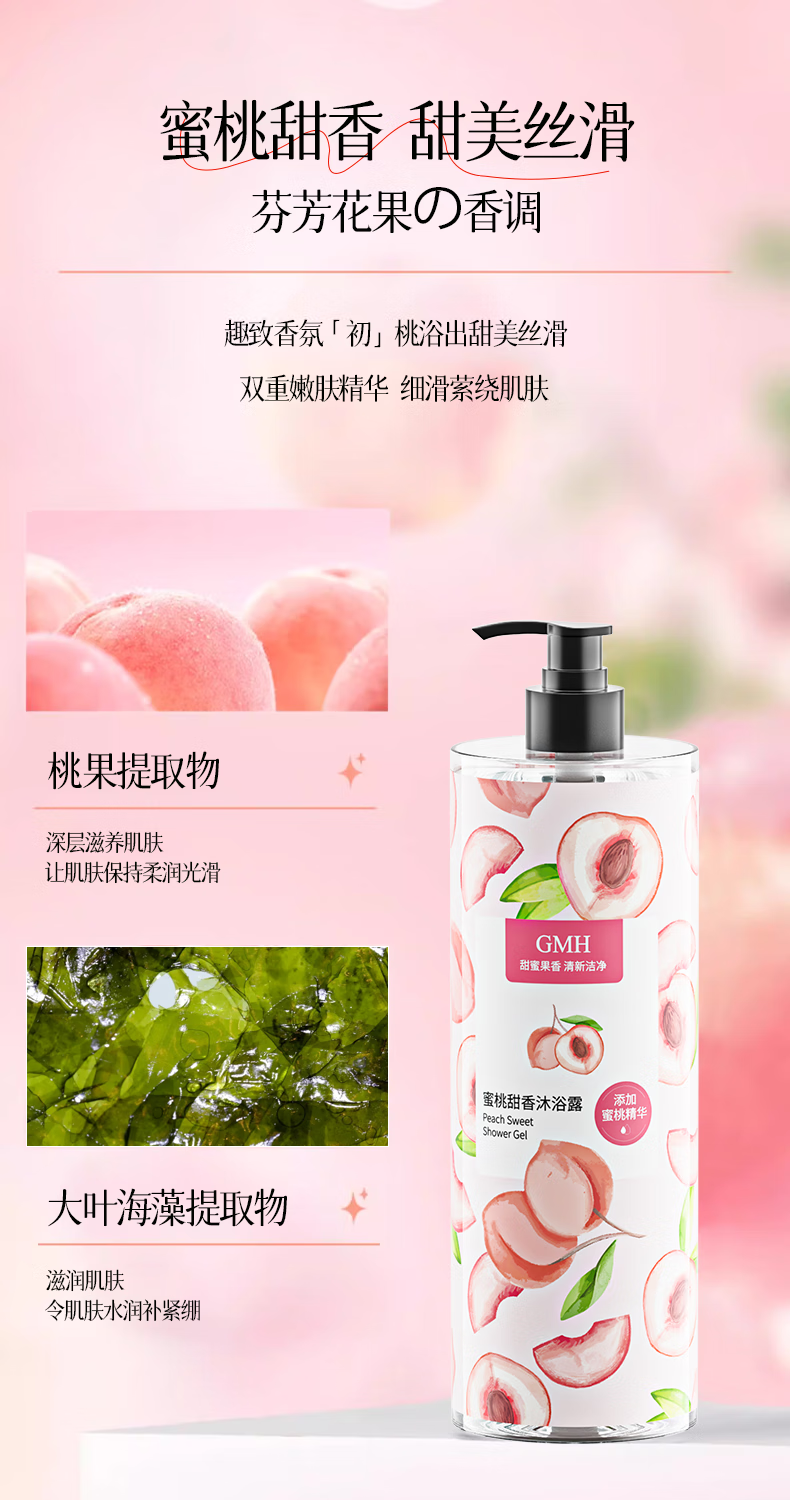 GMH芳香沐浴露细嫩滑肤补水保湿清洁肌肤留香沐浴乳液滋润家庭装 蜜桃香氛沐浴露520ml